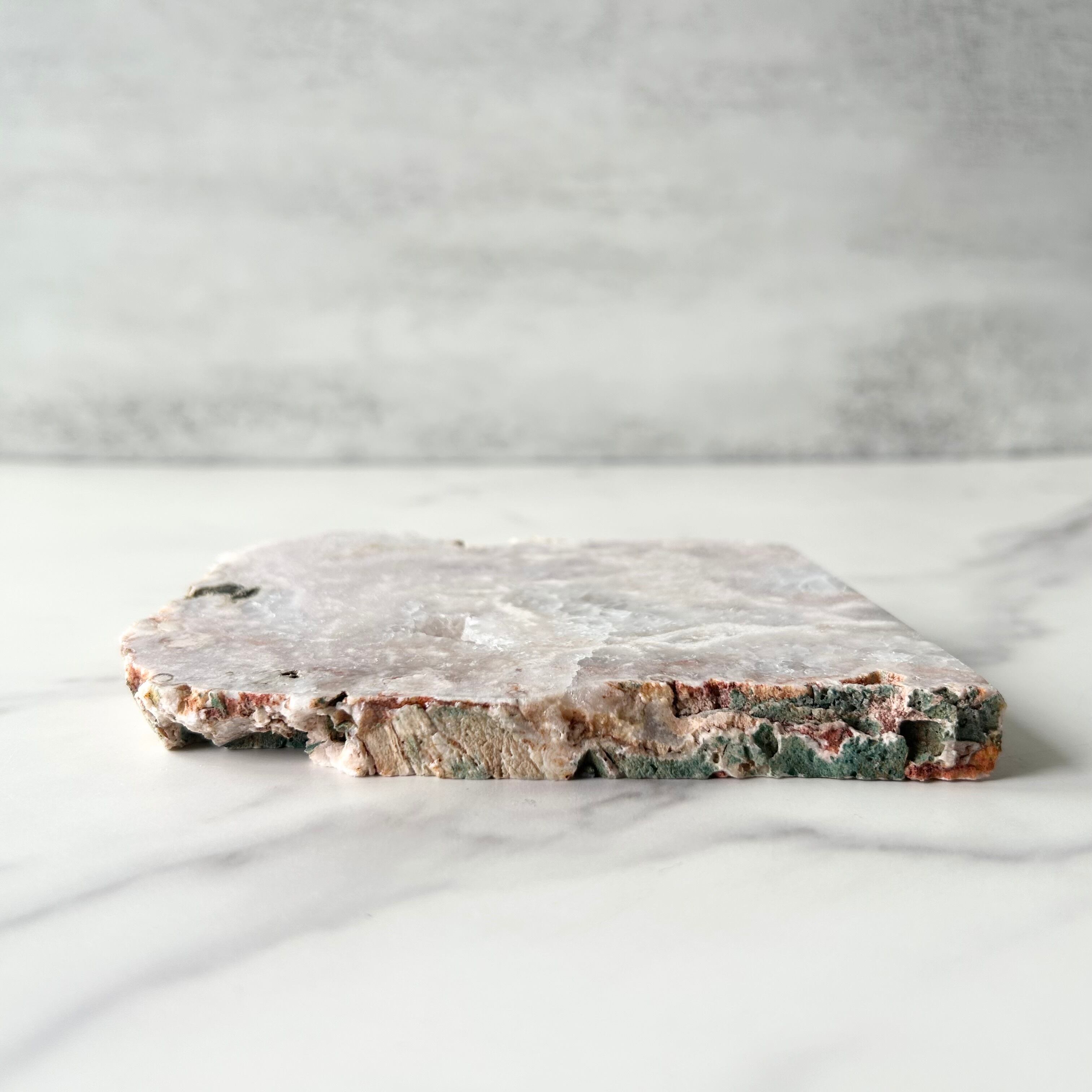 スモーキーなピンクとグレーが混ざり合ったようなカラーのプレートです。天然石やアクセサリーのディスプレイなどにもお使いいただけます。
