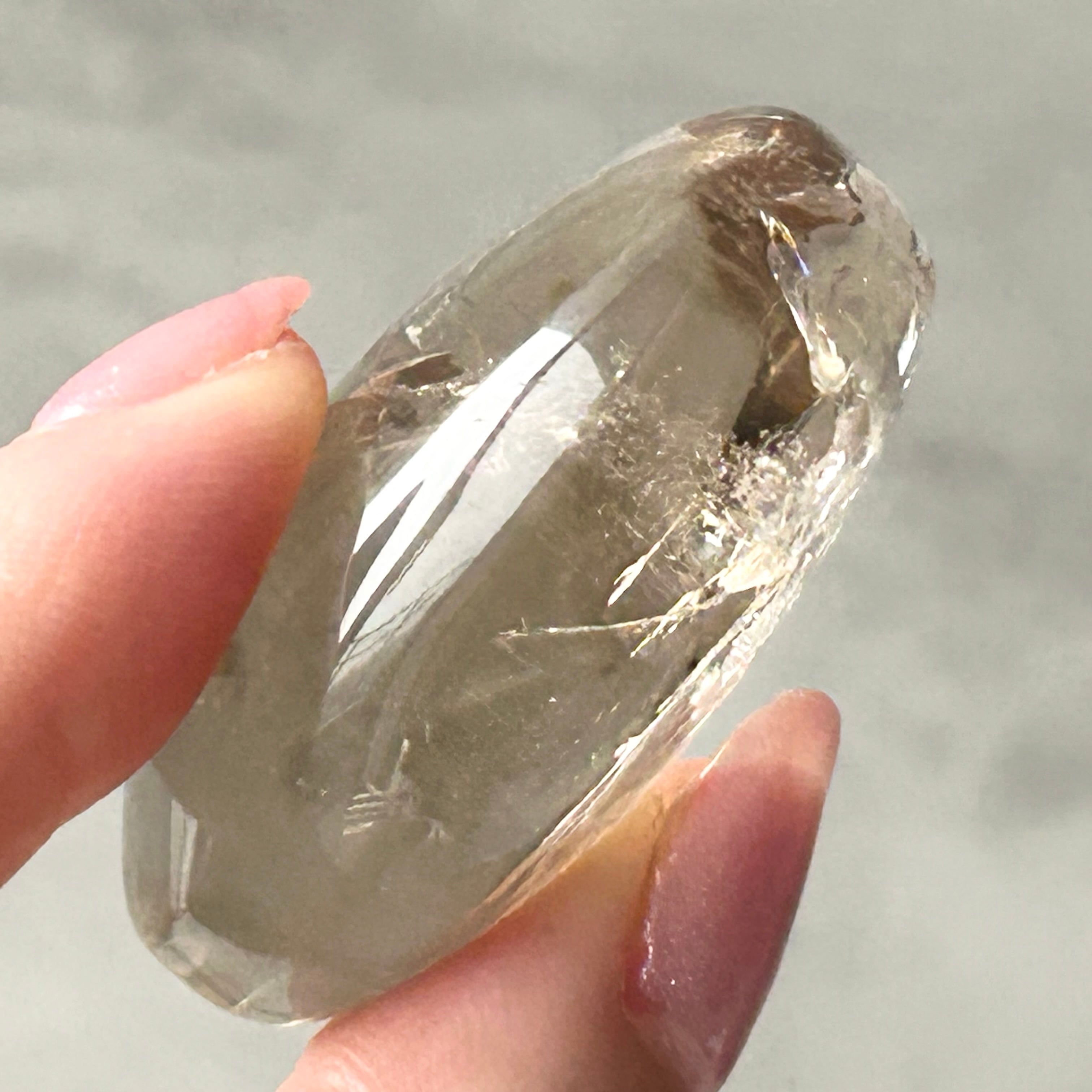 レインボーが美しいスモーキーアイリスクォーツのパームストーンです。