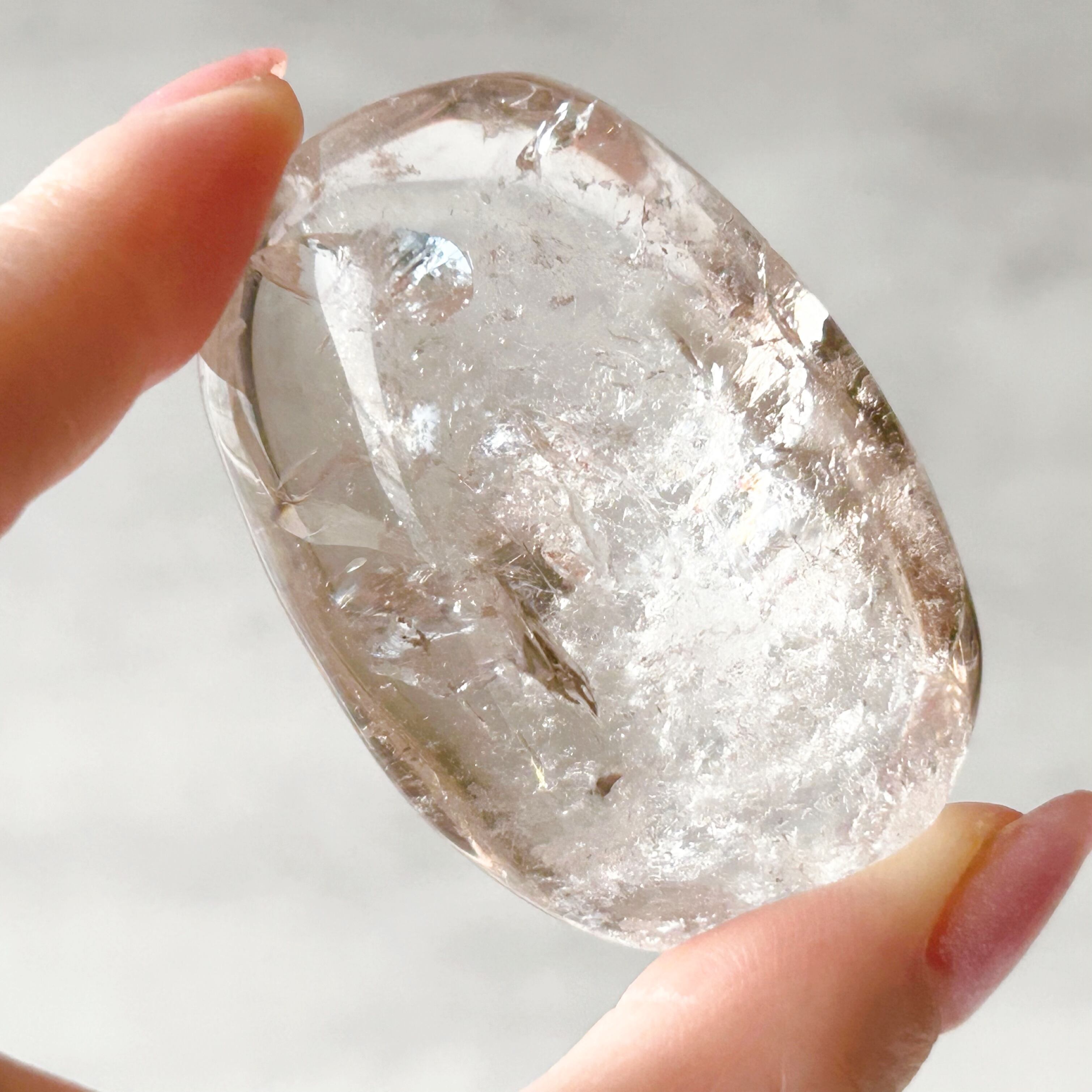 虹がキレイな、アイリスクォーツのパームストーンです。