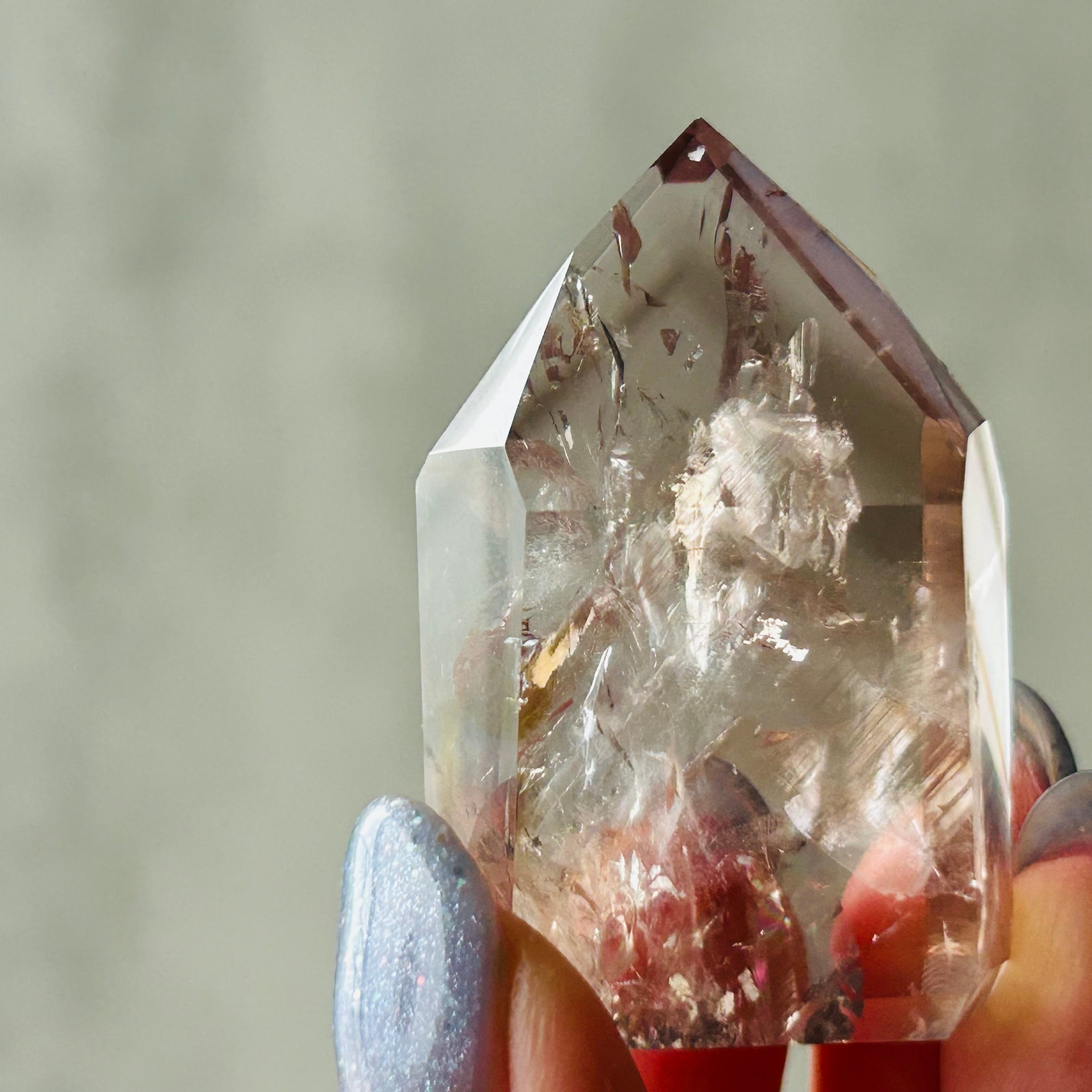 ファントム(和名:幻影水晶・山入水晶)は、透明な水晶の中に、幾重にも重なった幻影のような模様がみられる石です。「幽霊水晶(ゴーストクリスタル)」ともよばれます。