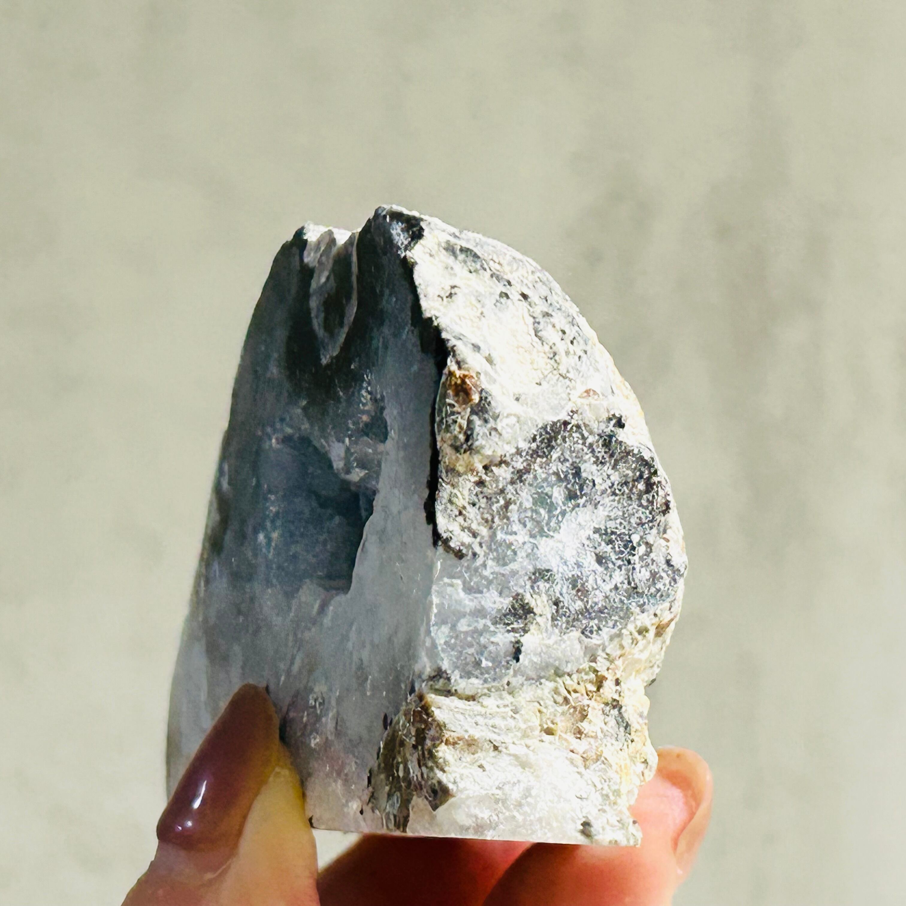 トランカスジオードのハーフポリッシュです。カットしてある断面のみ磨いてあります。