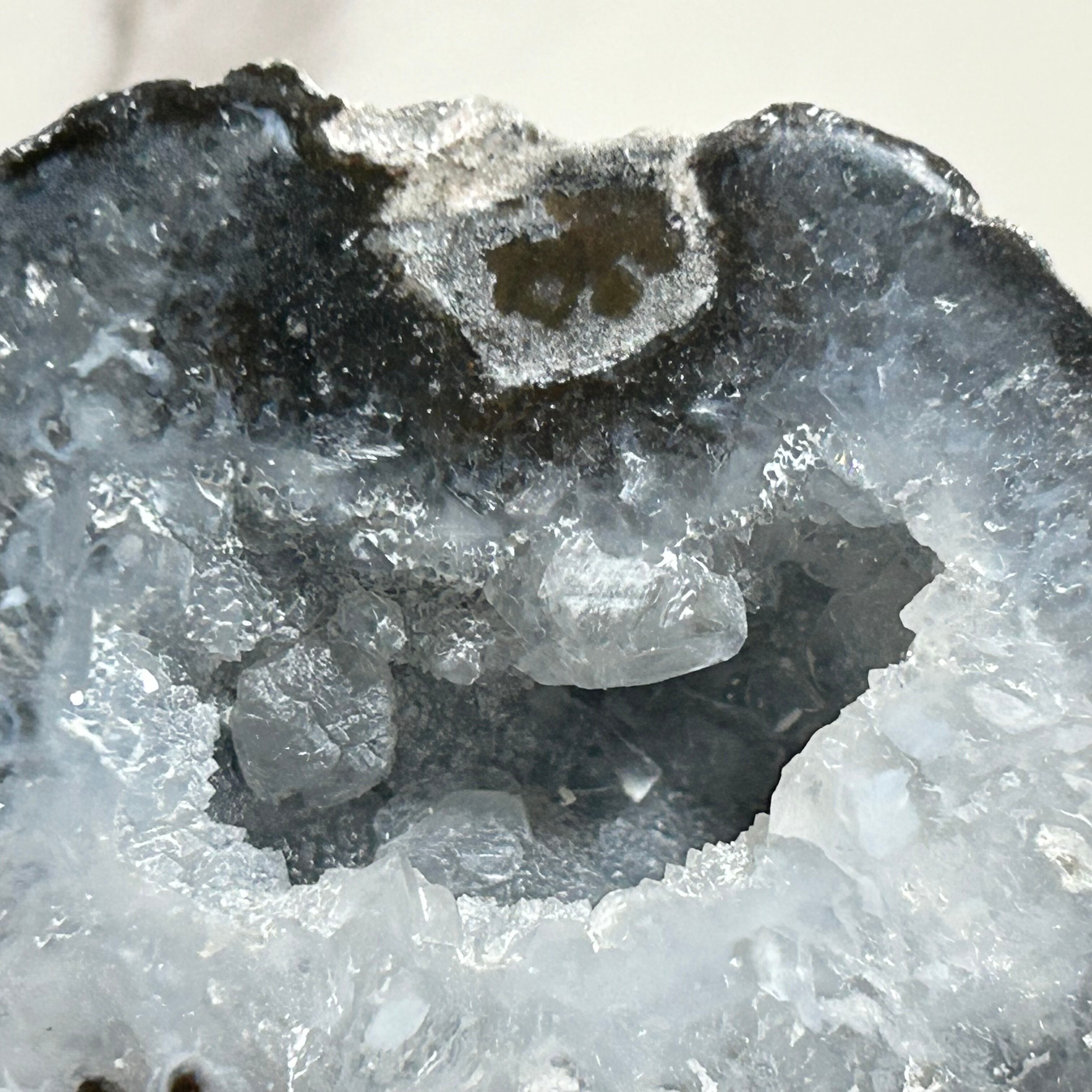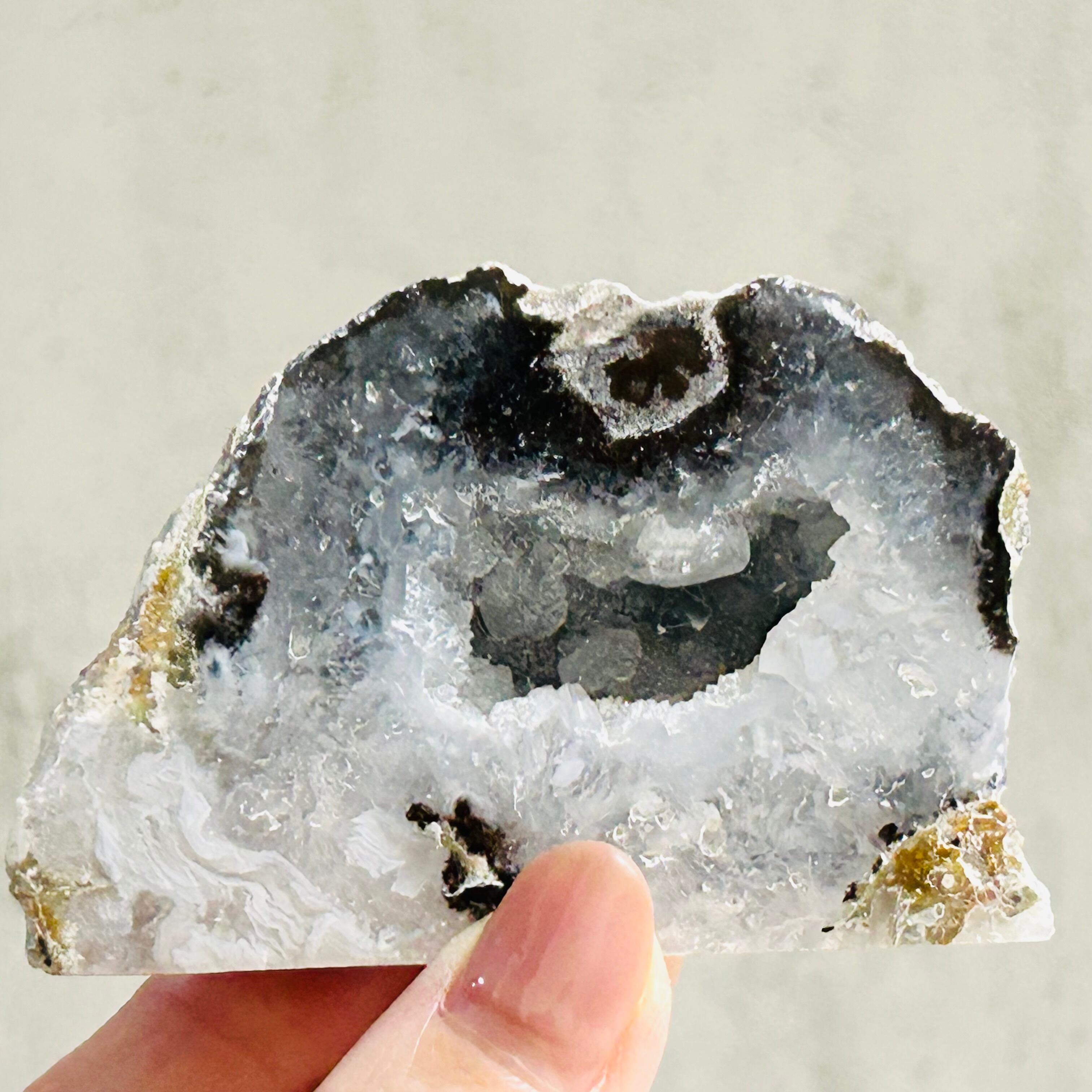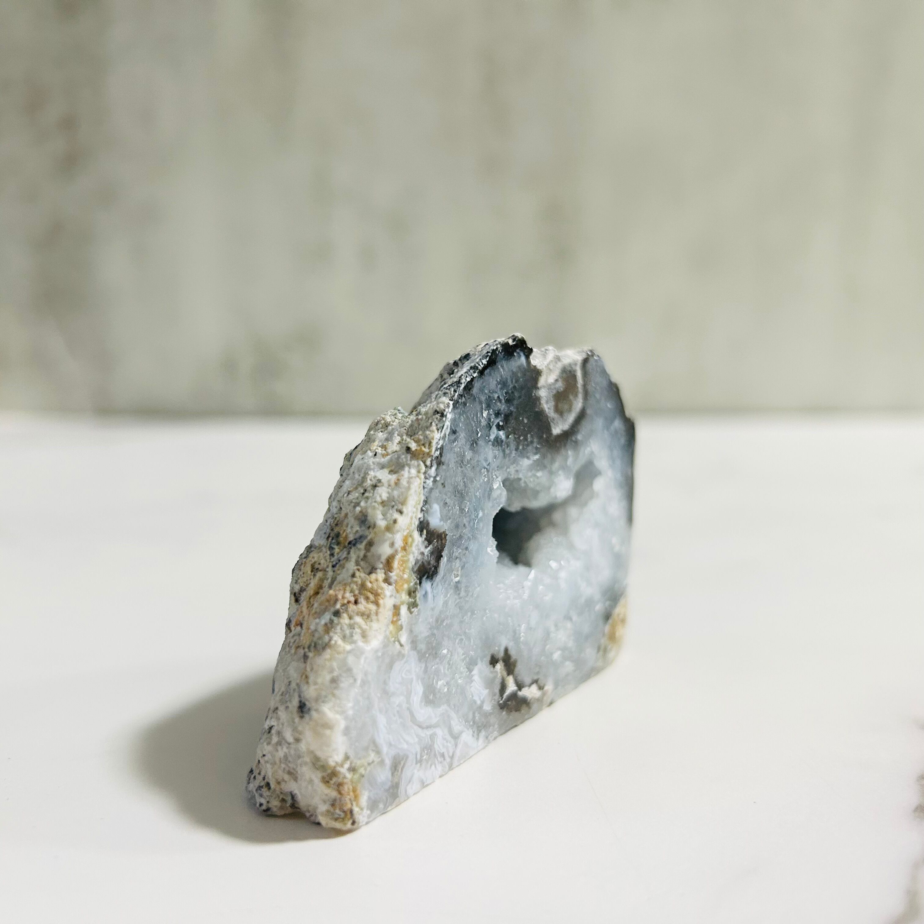トランカスジオードとは、メキシコ・チワワ州のトランカス鉱山で採掘される、内部に水晶やカルサイトなどの結晶が詰まったジオードのこと。