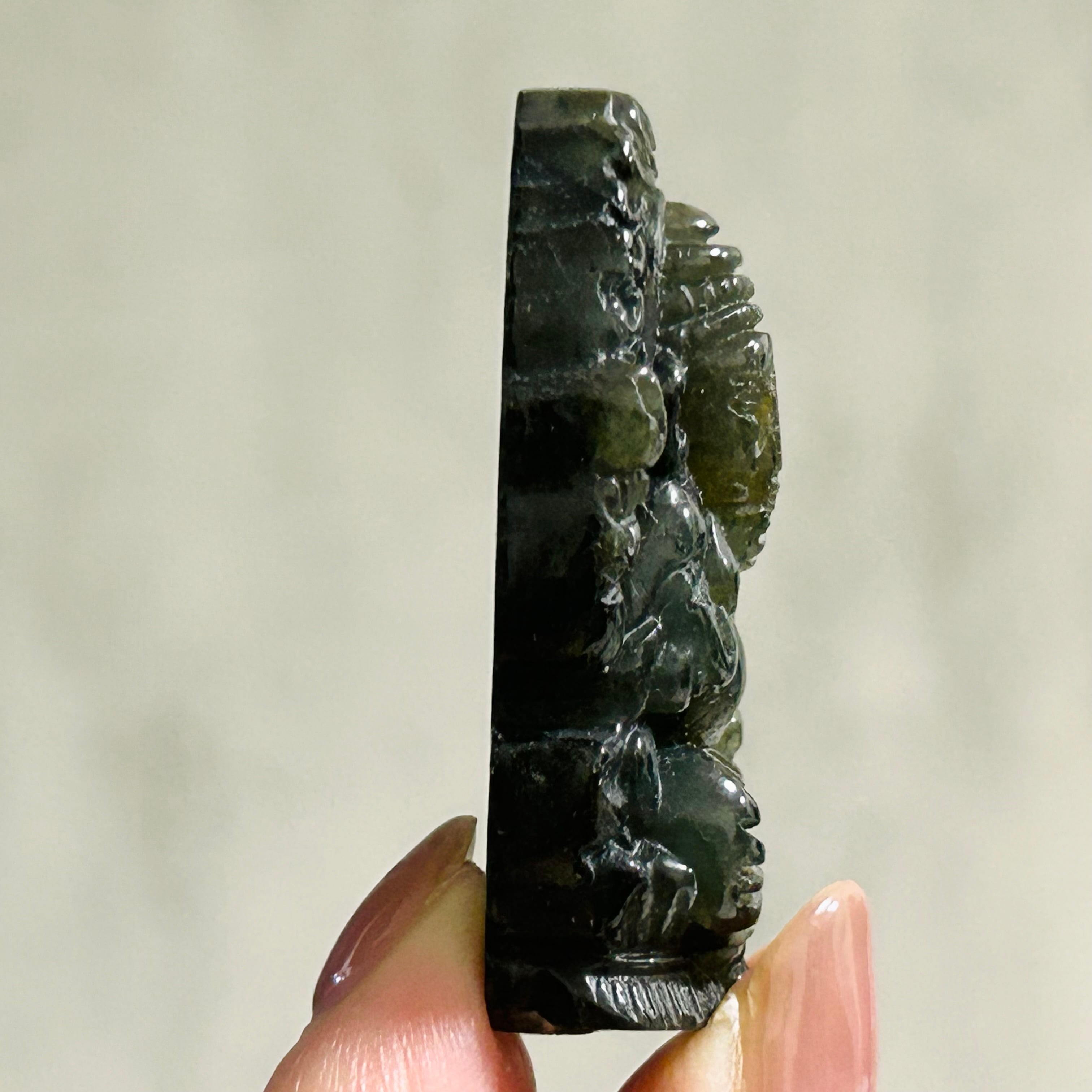 ラブラドライトのガネーシャです。濃いめのブルーのシラーが見られます。
