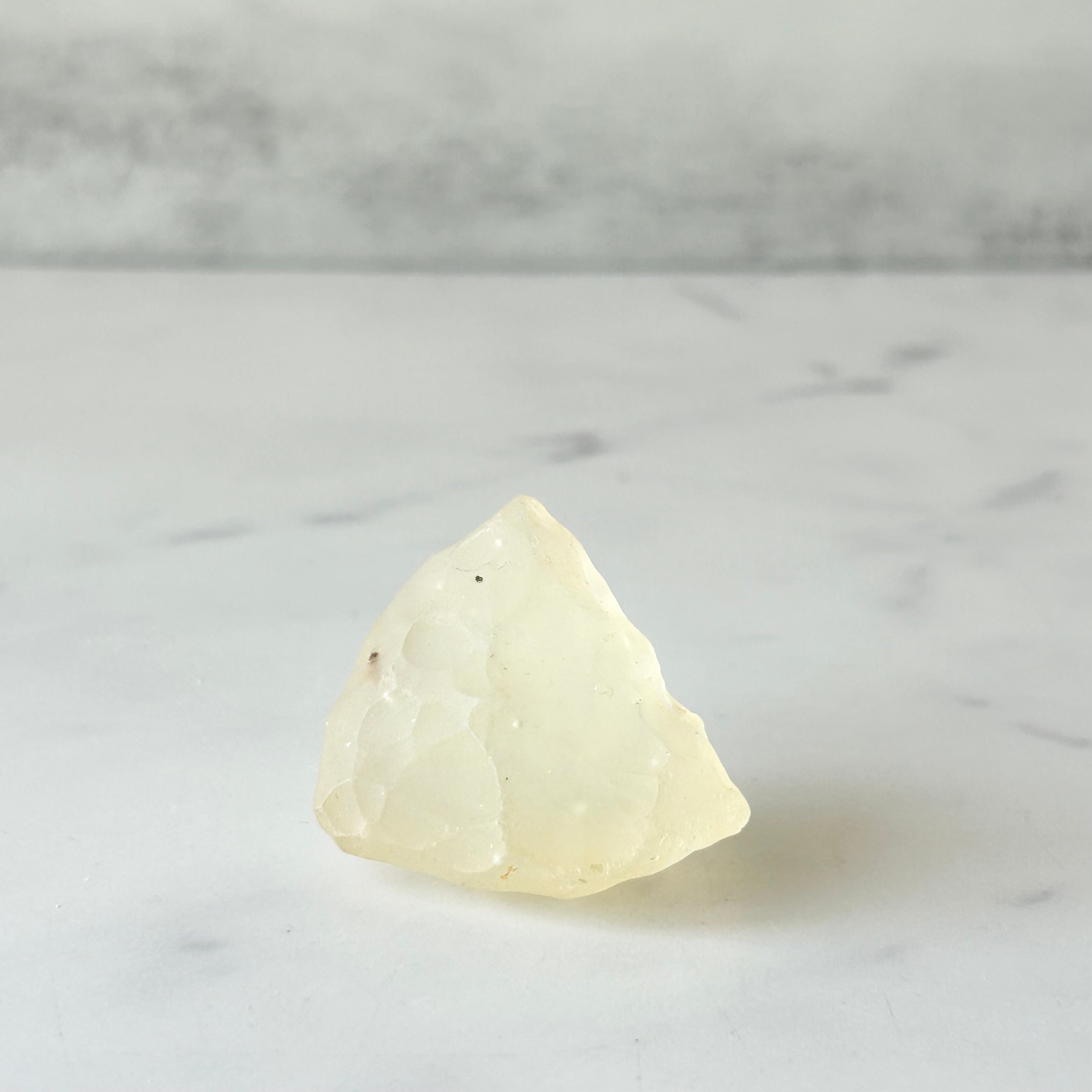 レモンイエローの爽やかな色味と、スノーフレークと呼ばれる内包物がとても可愛いです。