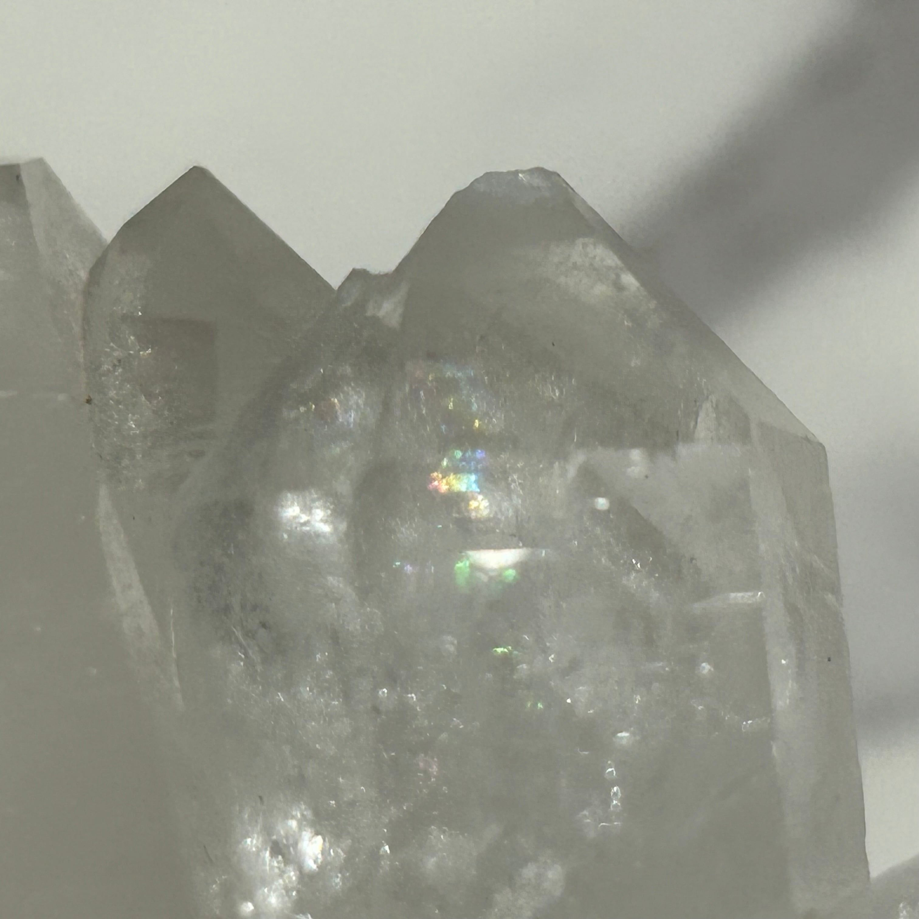 透明感とテリ艶が抜群の大変美しいゼッカデソウザ産の水晶クラスターです。大きなレインボーも見られます。