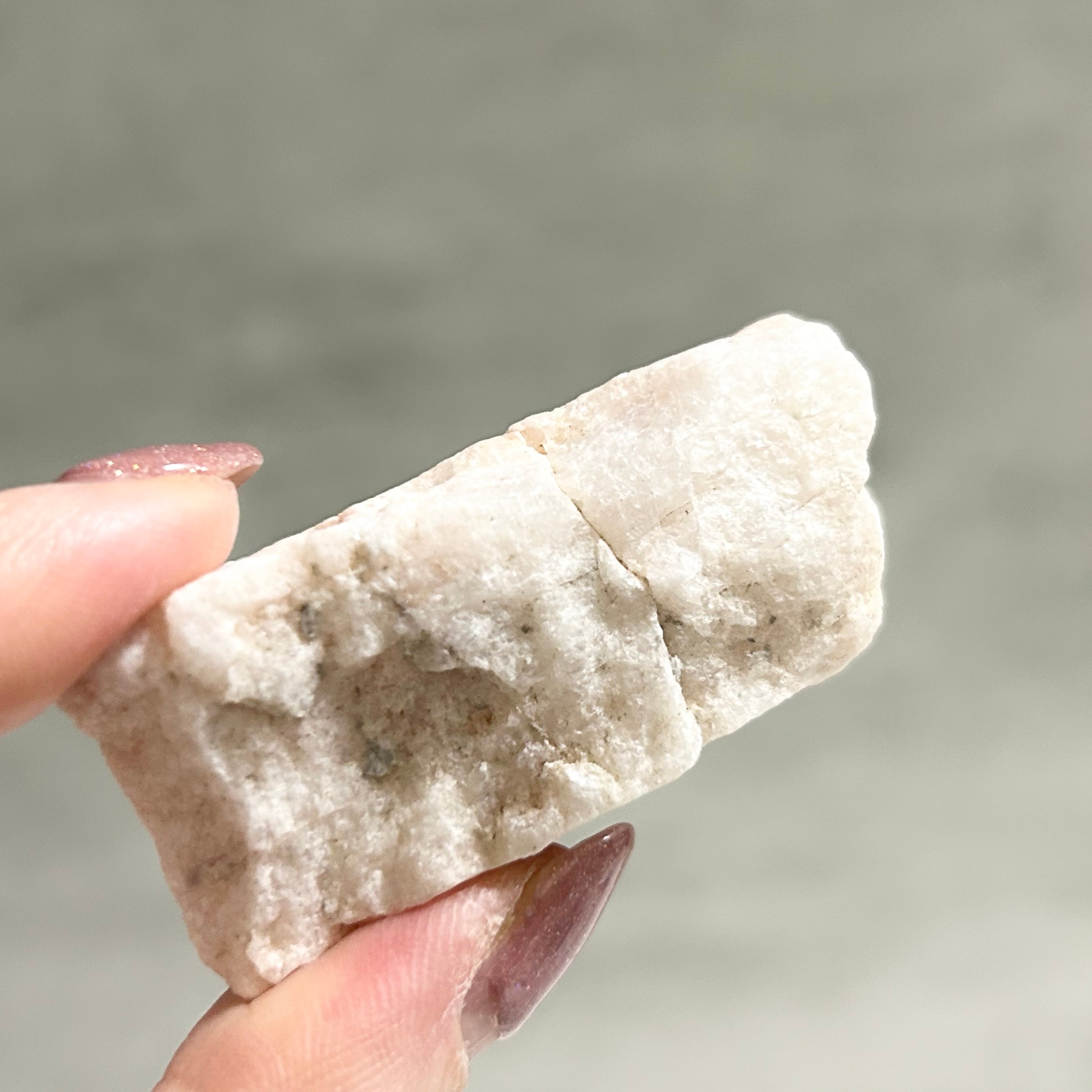 ほんのり淡いピーチカラーを纏った、レアなピンクアンブリゴナイトの原石です。