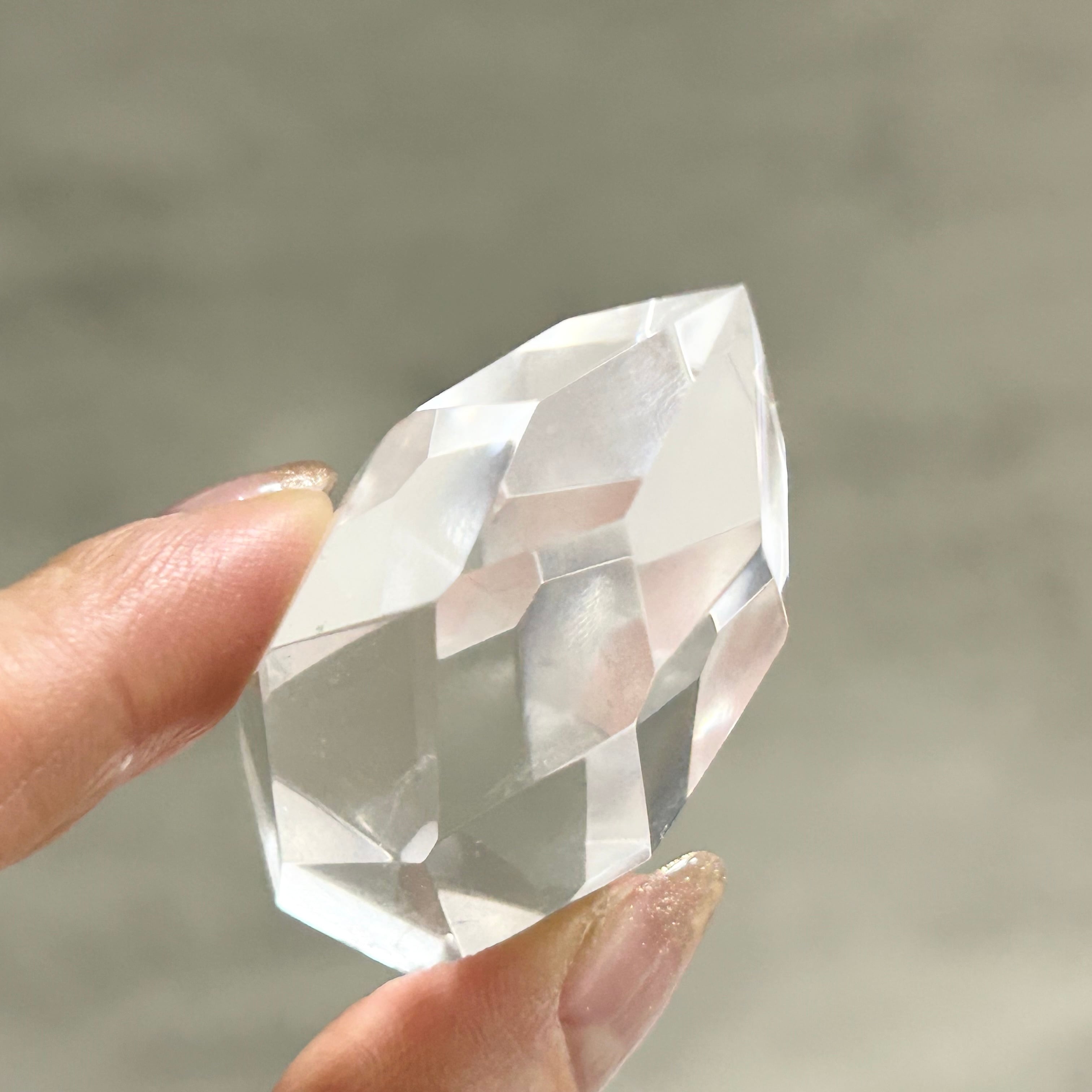 ブラジルのバイーア州セントセ産のレムリアンシードをドロップ型にカットし、ファセットカットを施しました。