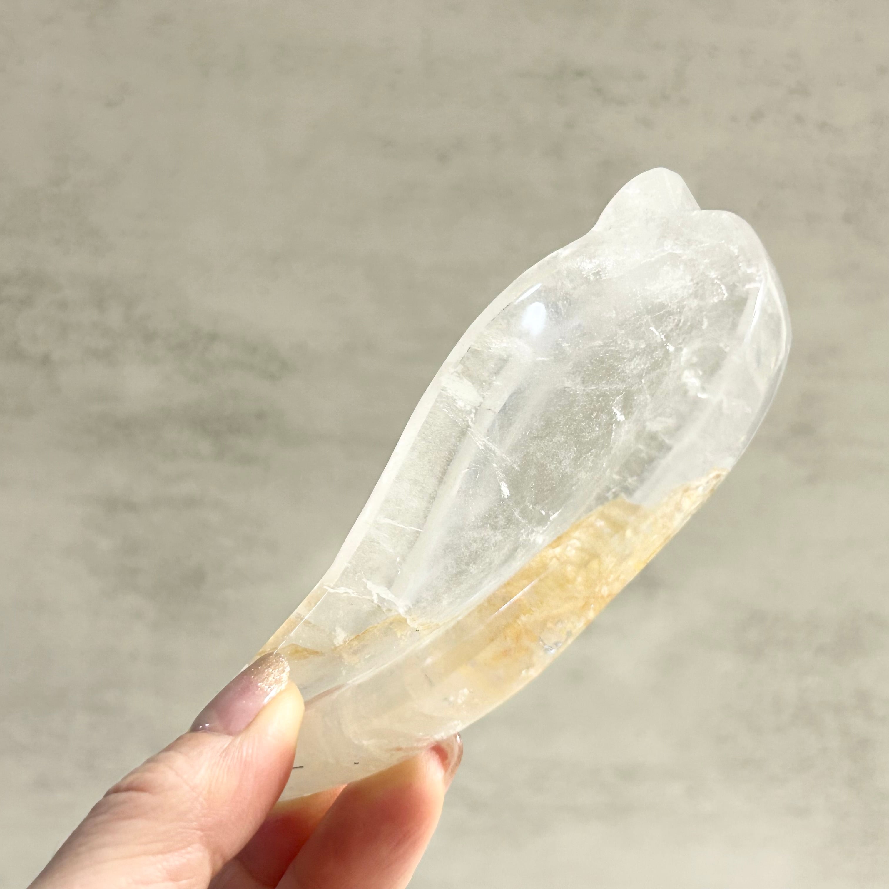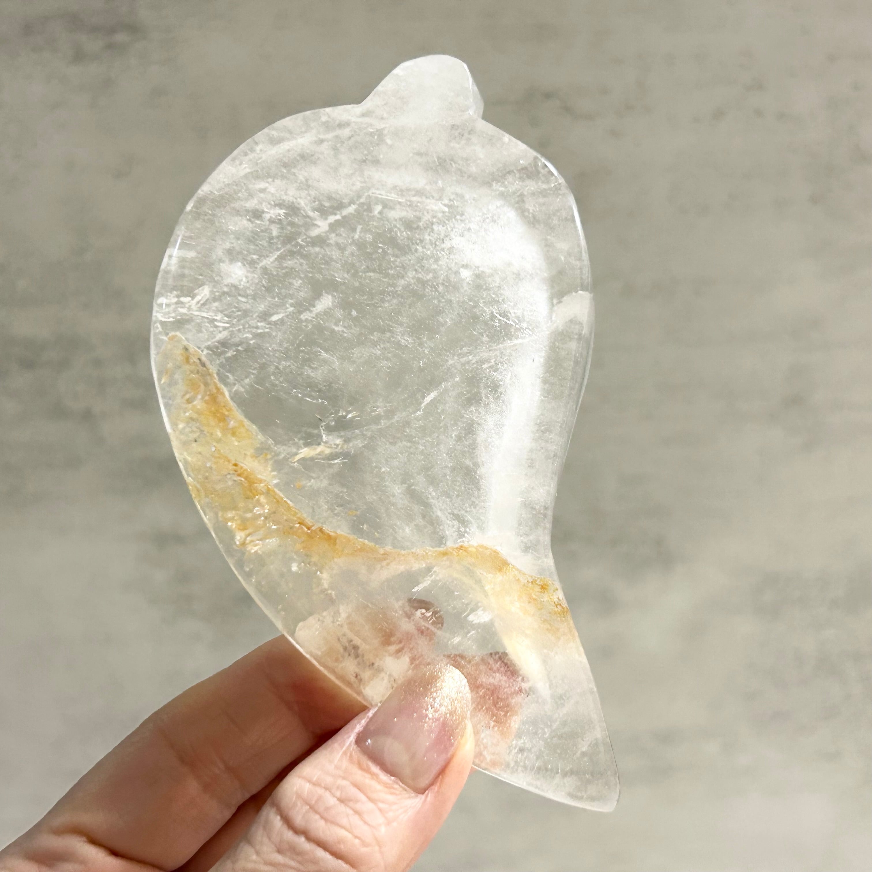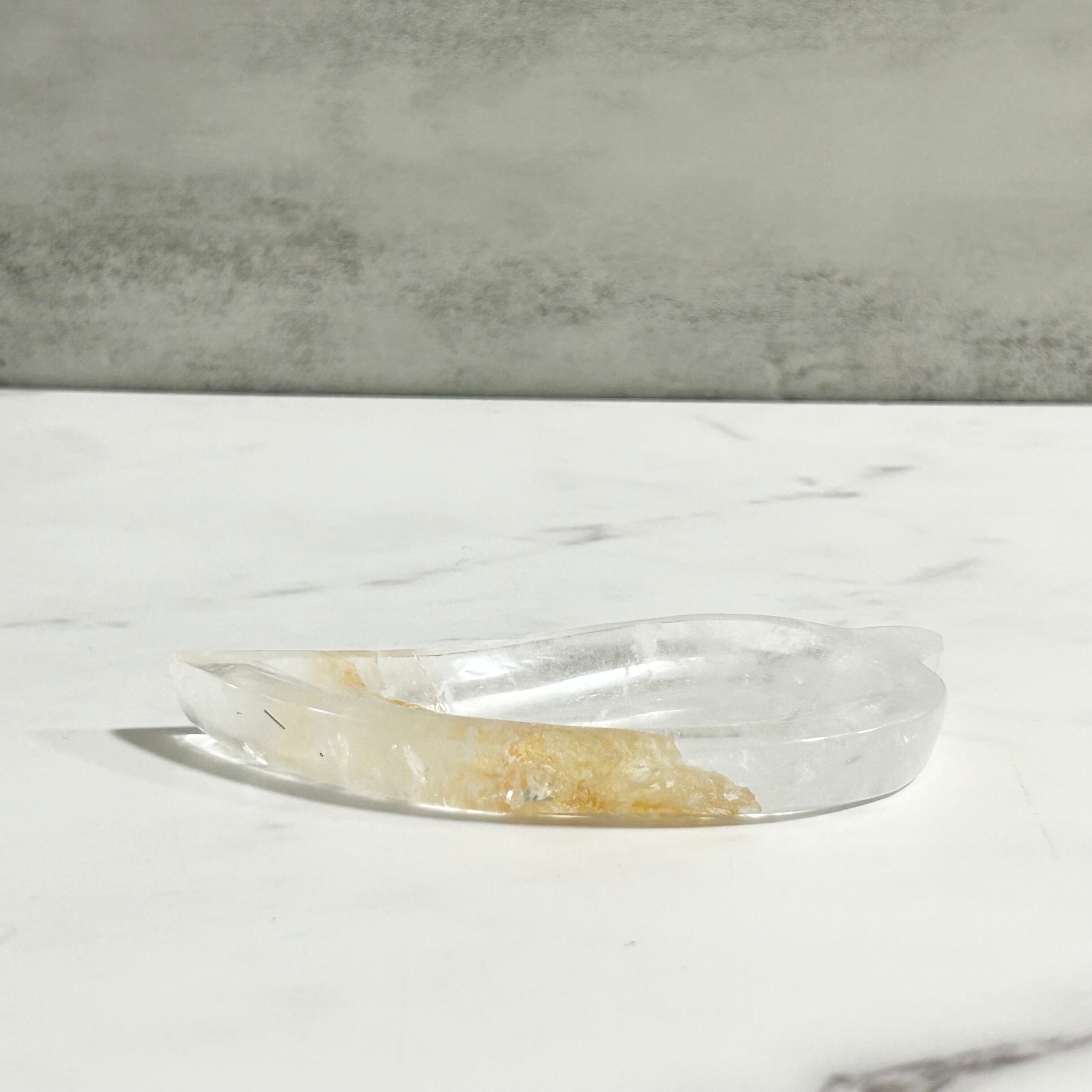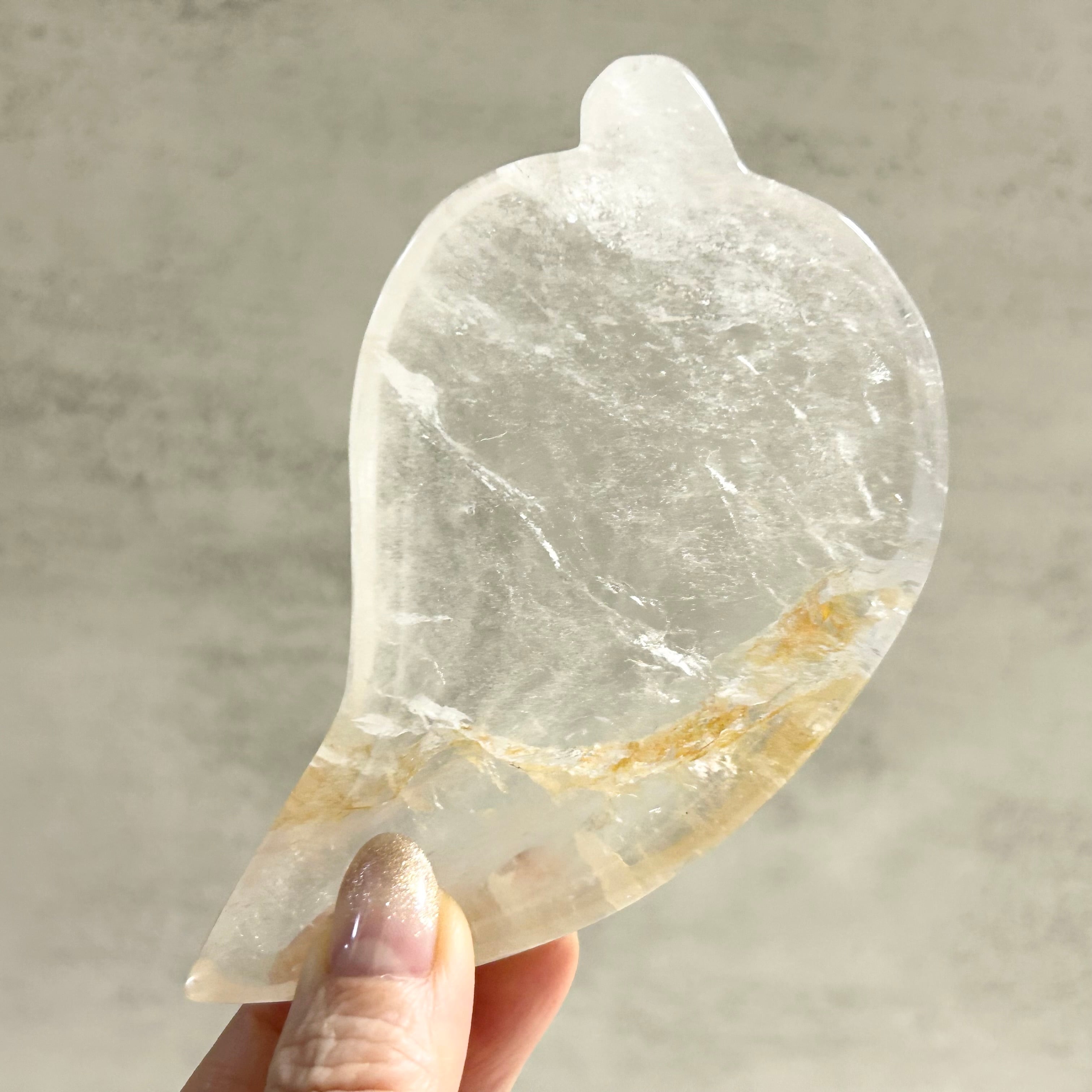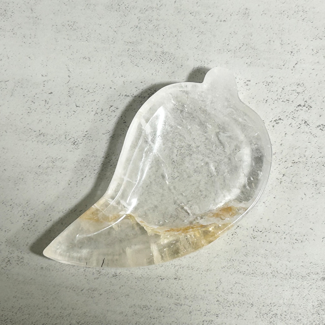 リーフ型のトレイ。ゴールデンヒーラー、レインボーも見られます。アクセサリーや天然石の浄化など、使い方は自由自在です。