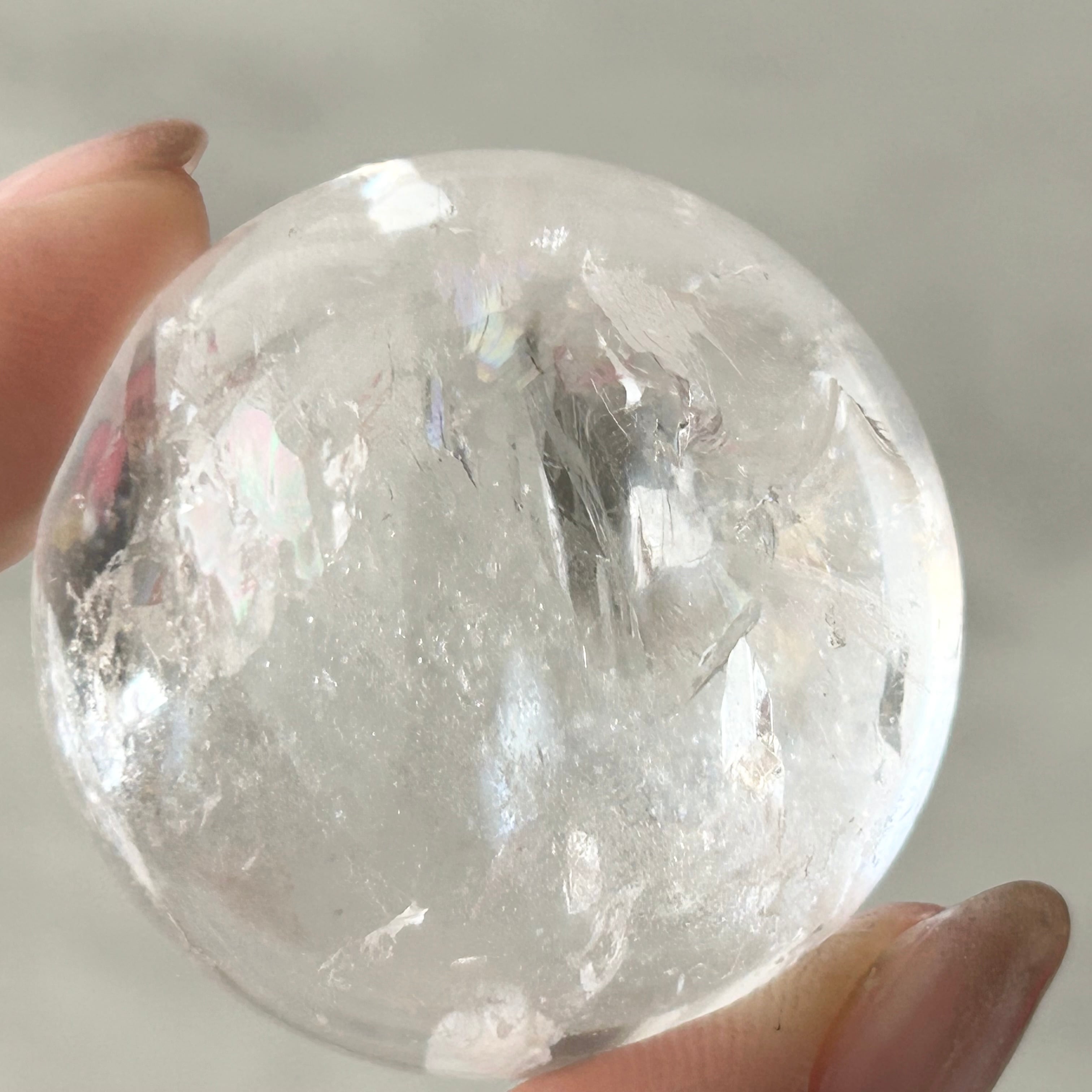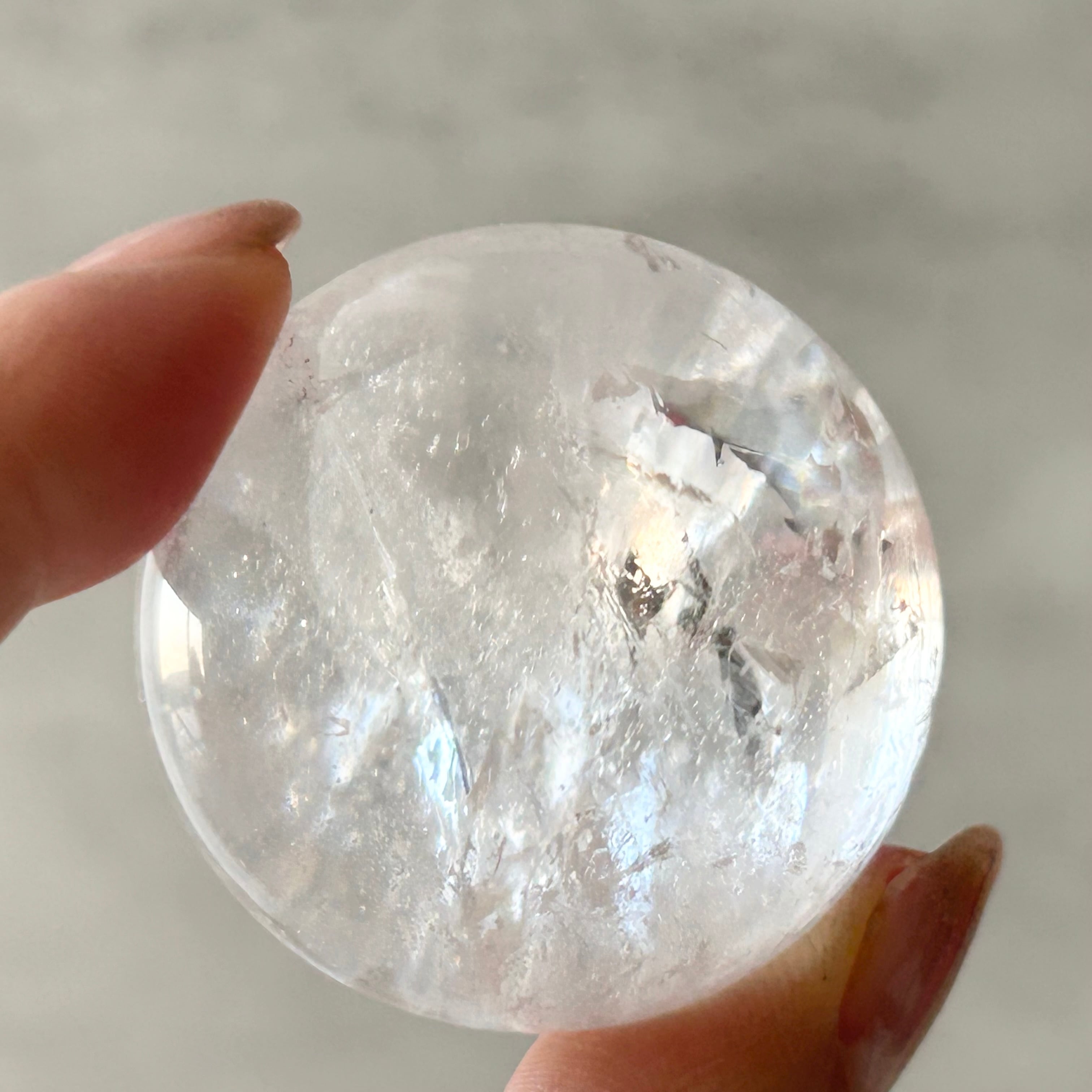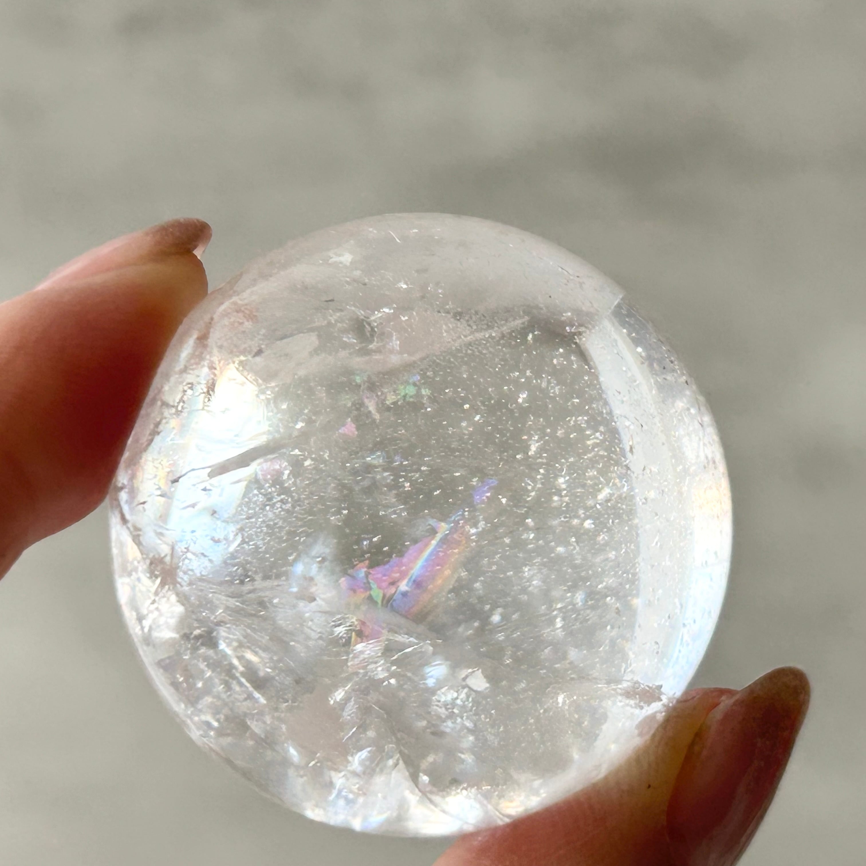 天然のクラックが入ったアイリスクォーツです。キレイな虹が見られます。