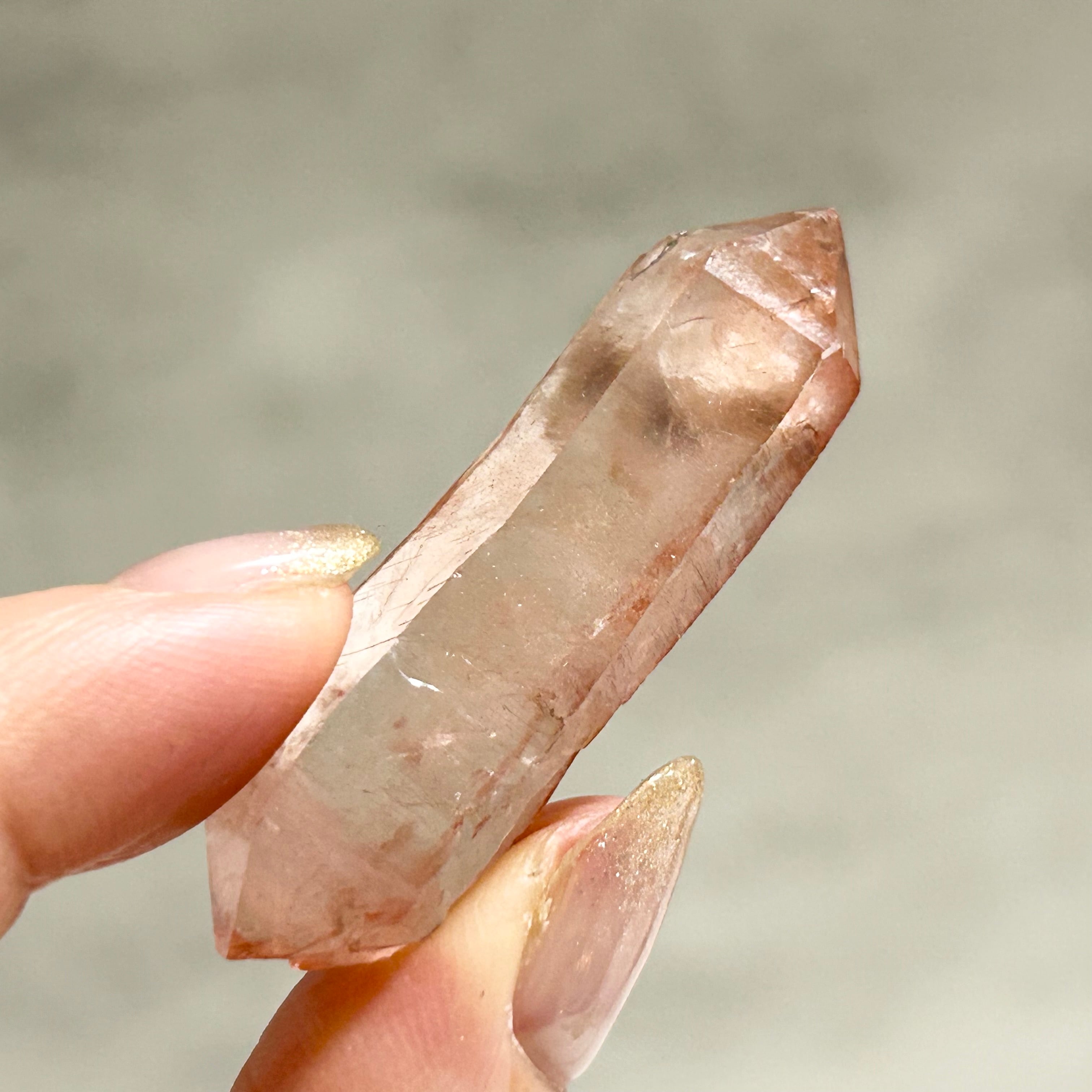 ブラジル・ディアマンティーナ産ピンクレムリアンシード・貫入・両剣・セルフヒールド