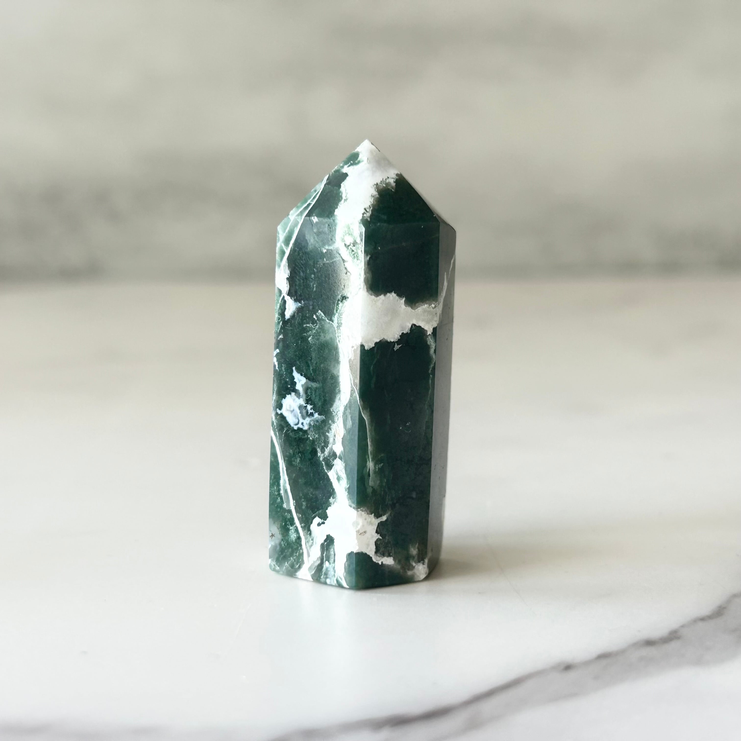 モスアゲートは、癒しの石として知られています。感情の乱れを整え、エゴや執着を解き放ち、心身を安定した状態に保ち、生活に疲れた人に平和で穏やかなパワーをもたらしてくれるでしょう。