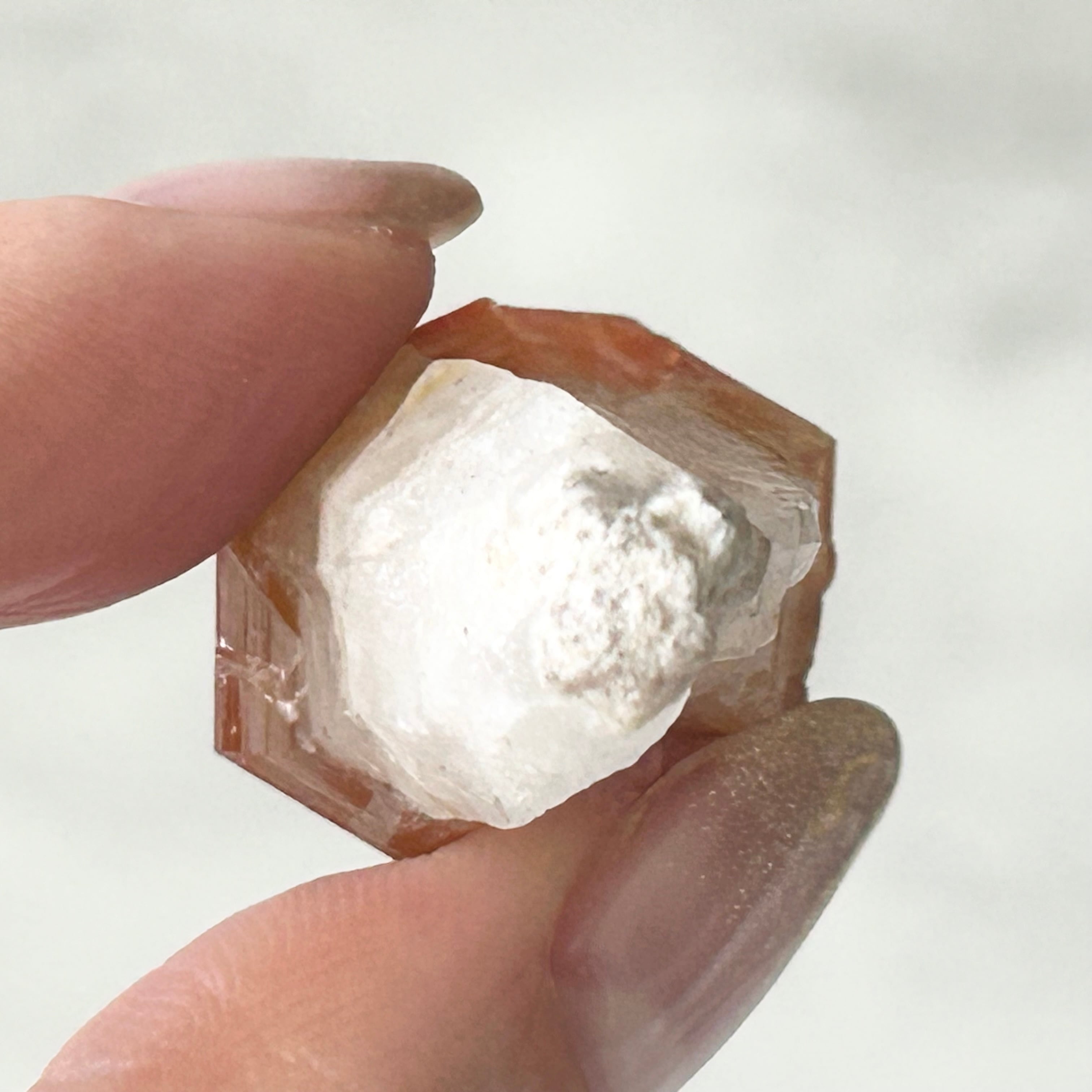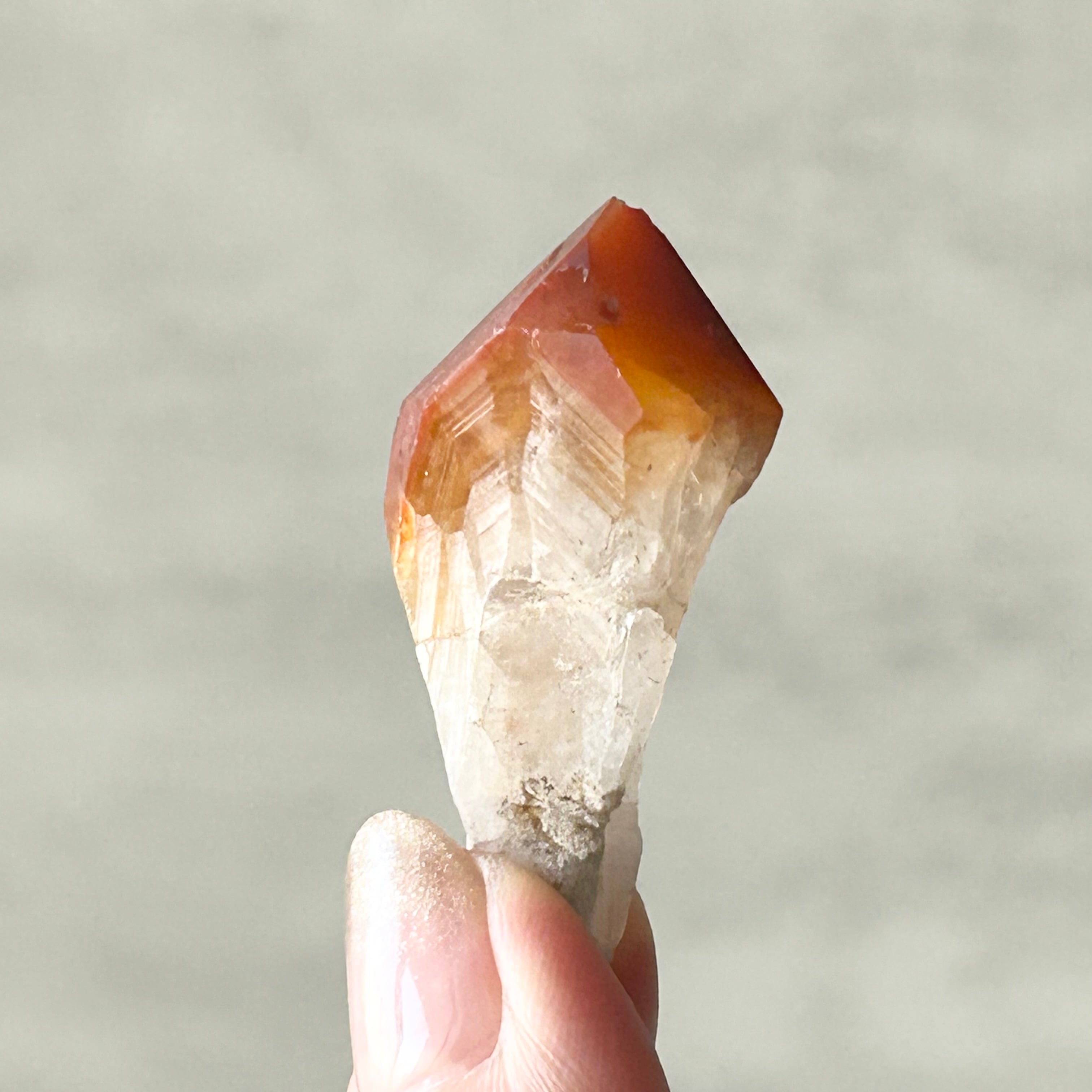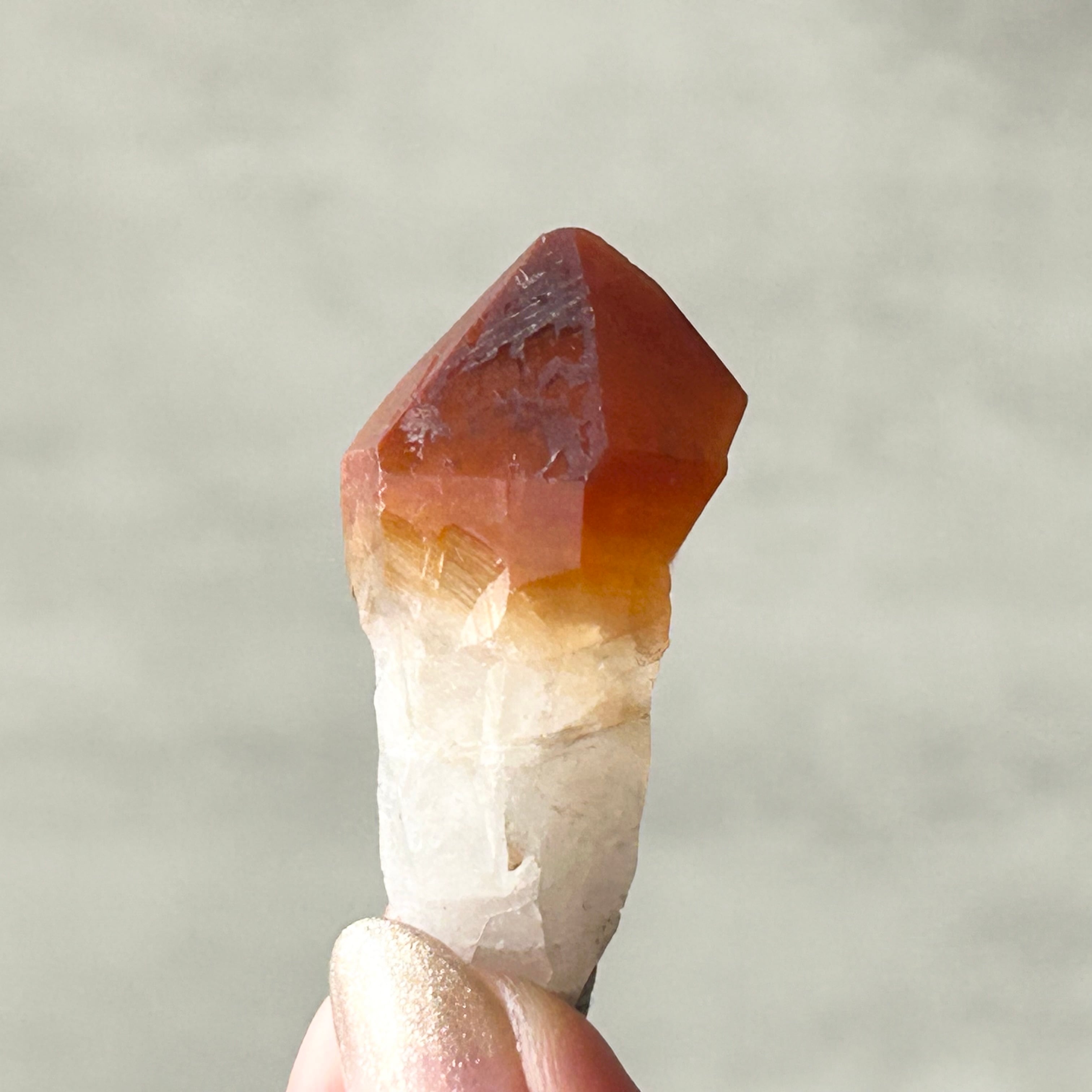 これは、カコクセナイト、ゲーサイト、アメジスト、タンジェリン、クォーツ、スモーキークォーツが入った混合結晶だと言われており、ブラジルでは、スーパーセブンやオーラライト23などの家族だと言われています。