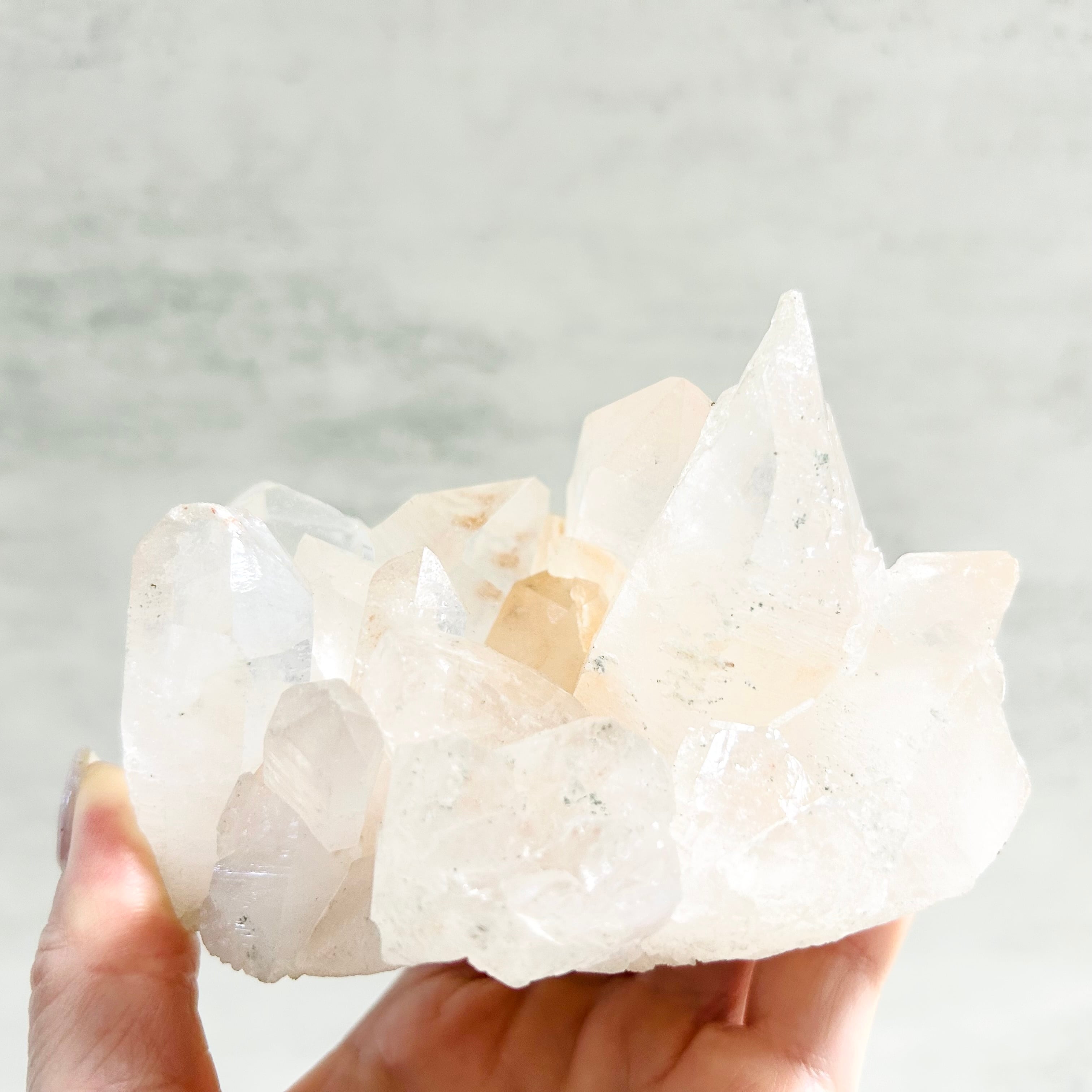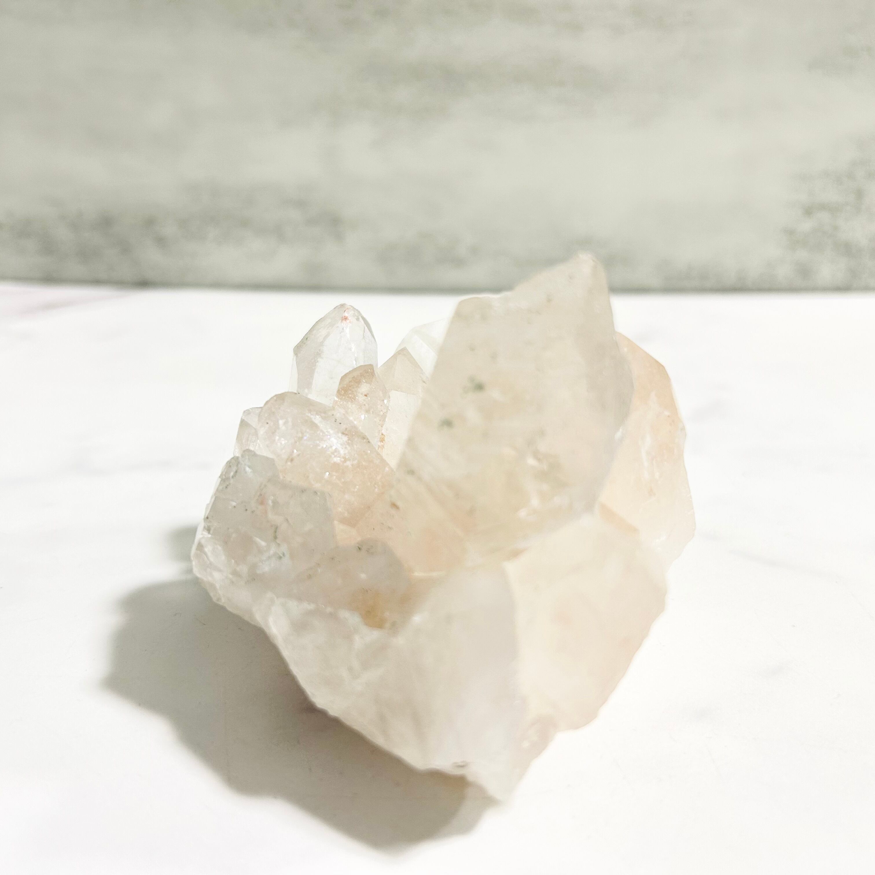 マニカラン水晶は土壌に含まれる鉄分の影響により、優しく淡いピンクがかった色味が特徴です。