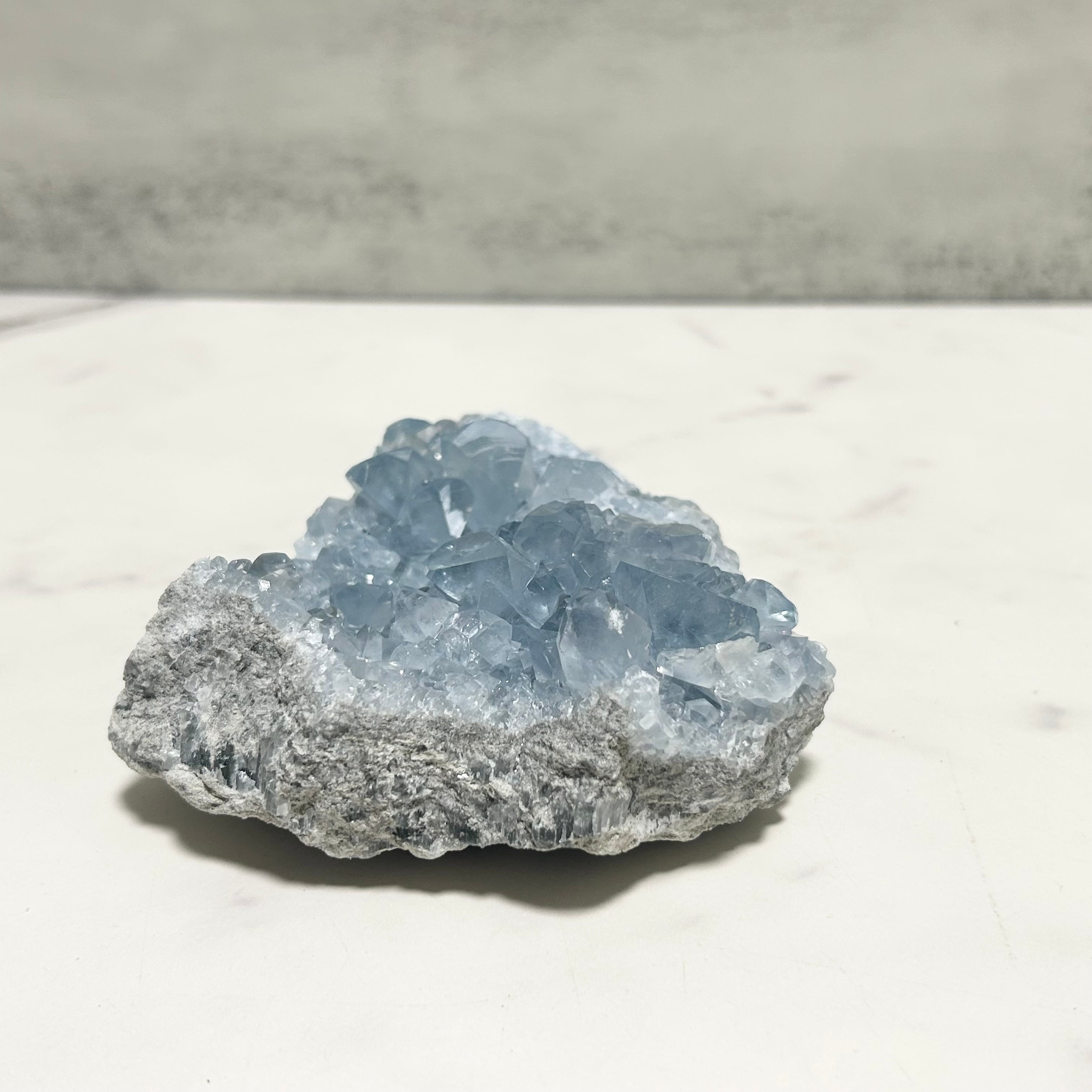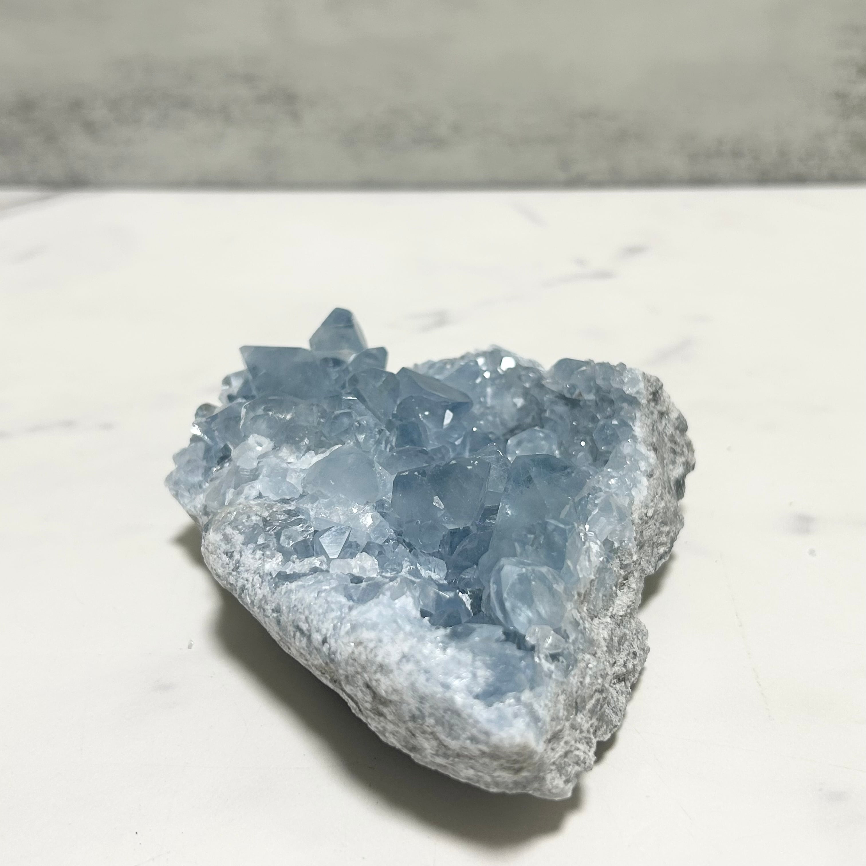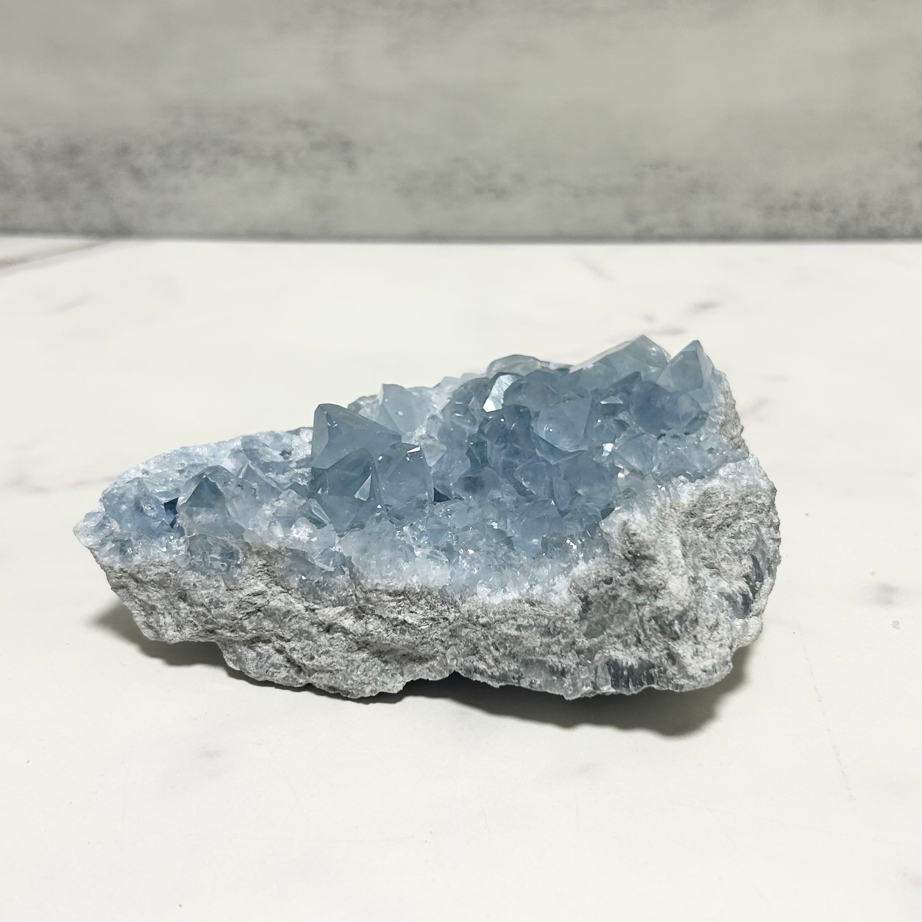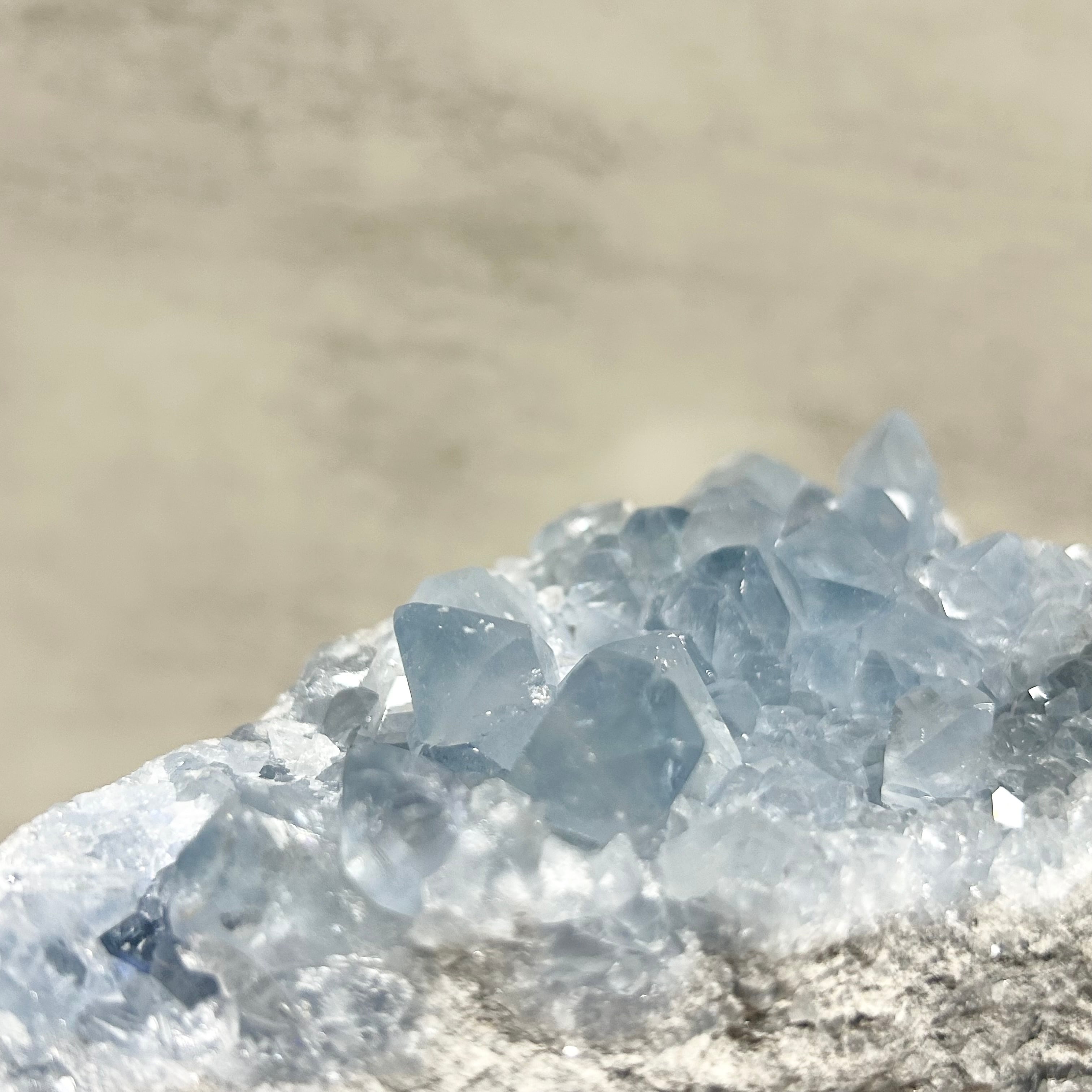 天青石という、青く晴れた空を連想させる和名を持つ、美しいスカイブルーのセレスタイト。ラテン語で「天国のような」という意味も持っています。