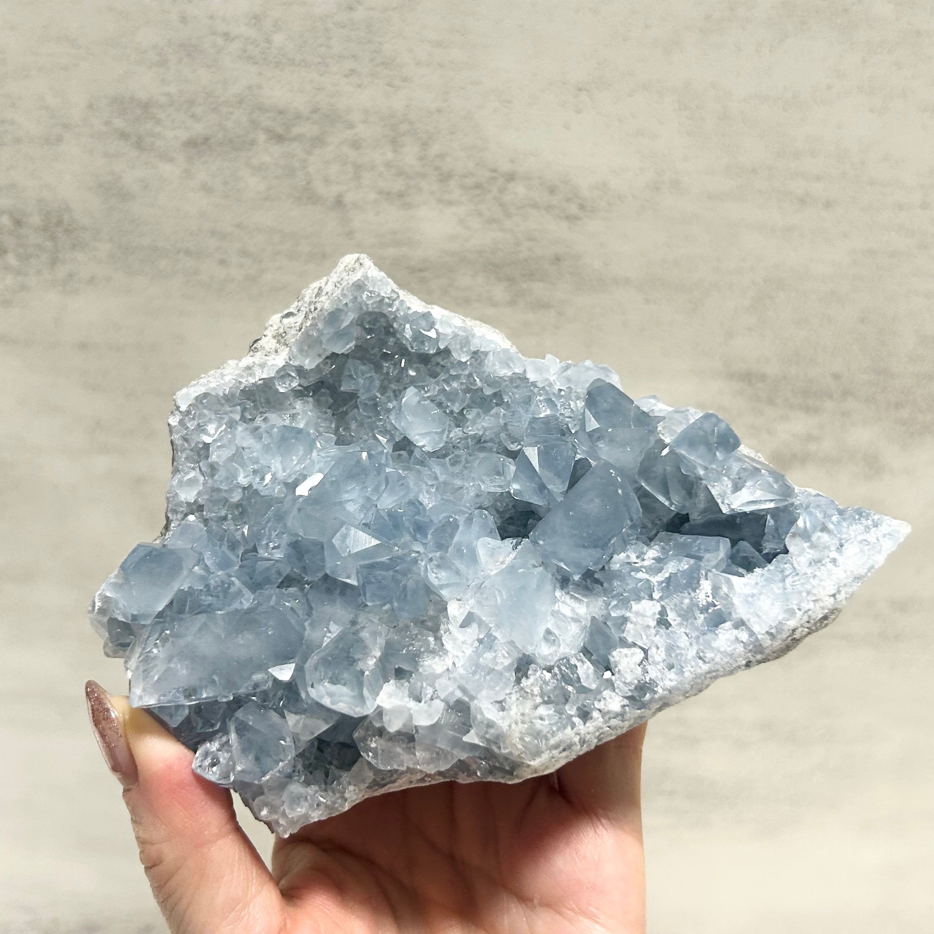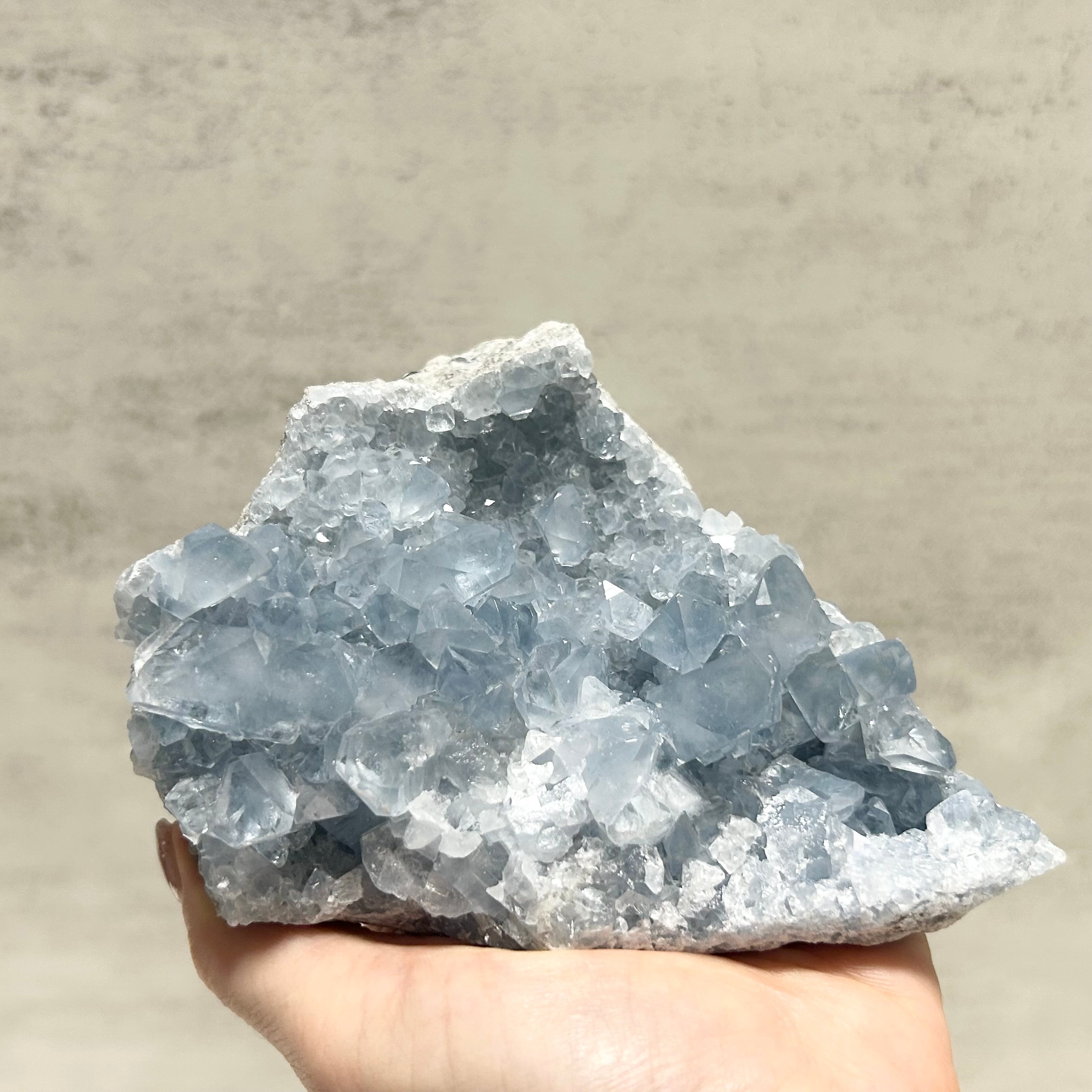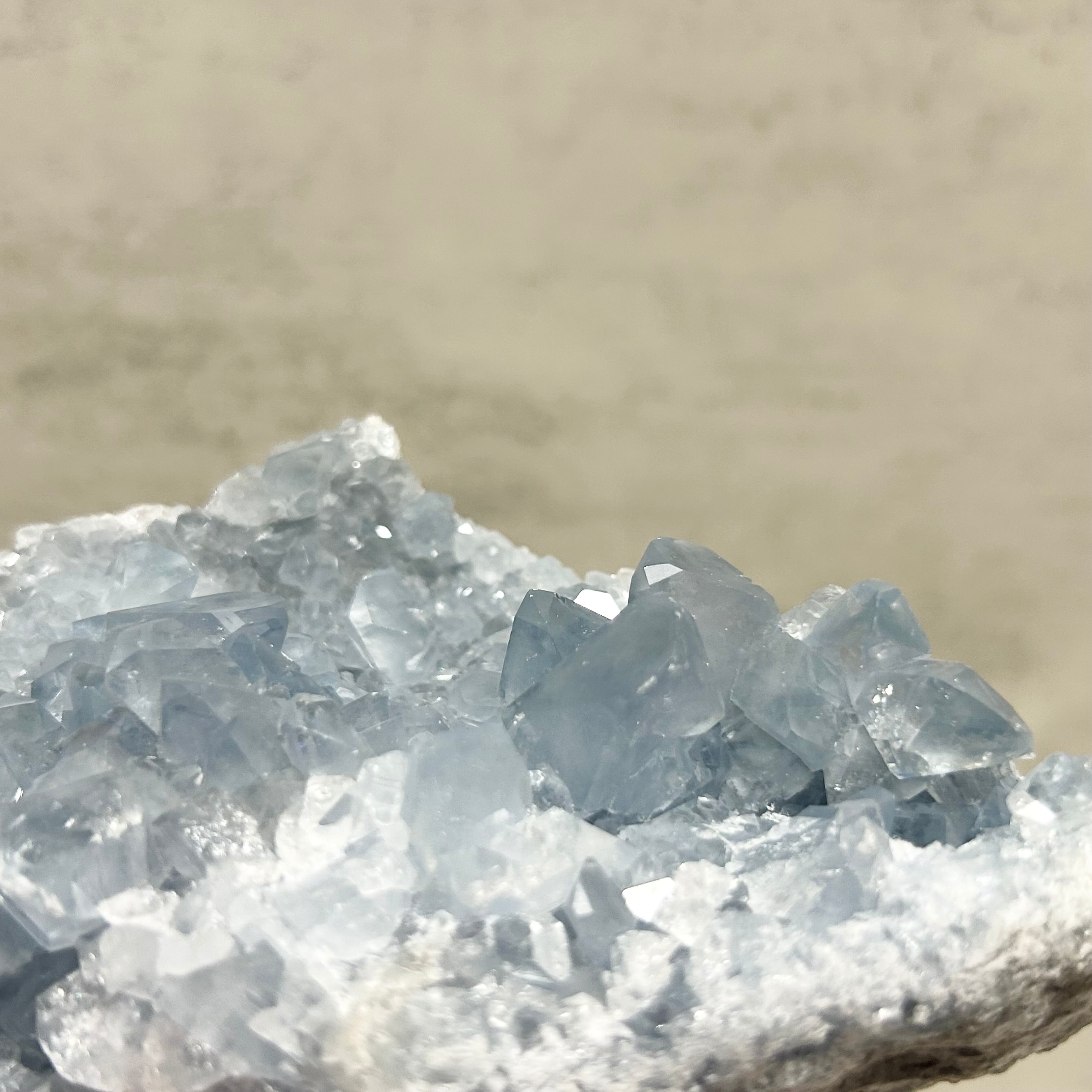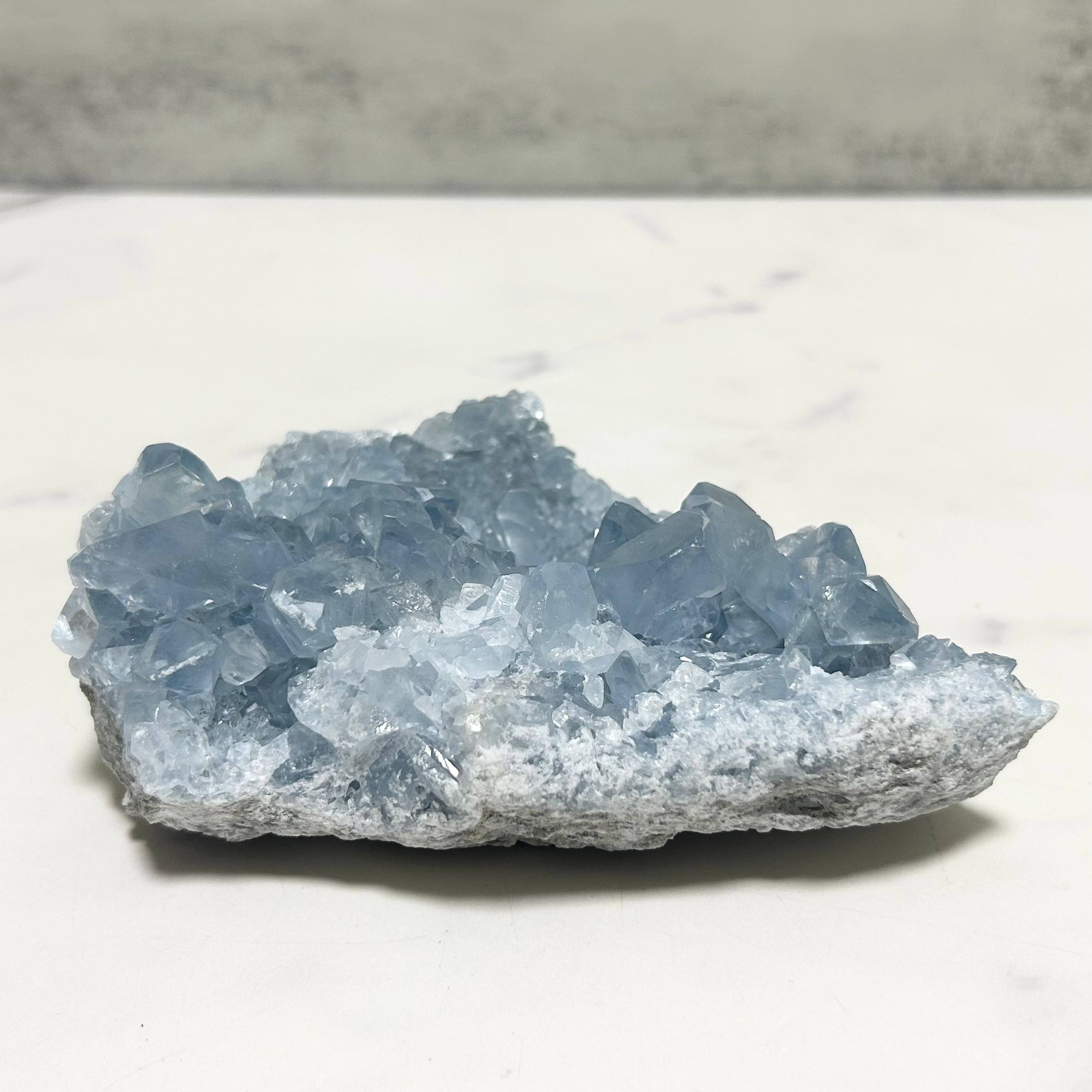 天青石という、青く晴れた空を連想させる和名を持つ、美しいスカイブルーのセレスタイト。ラテン語で「天国のような」という意味も持っています。