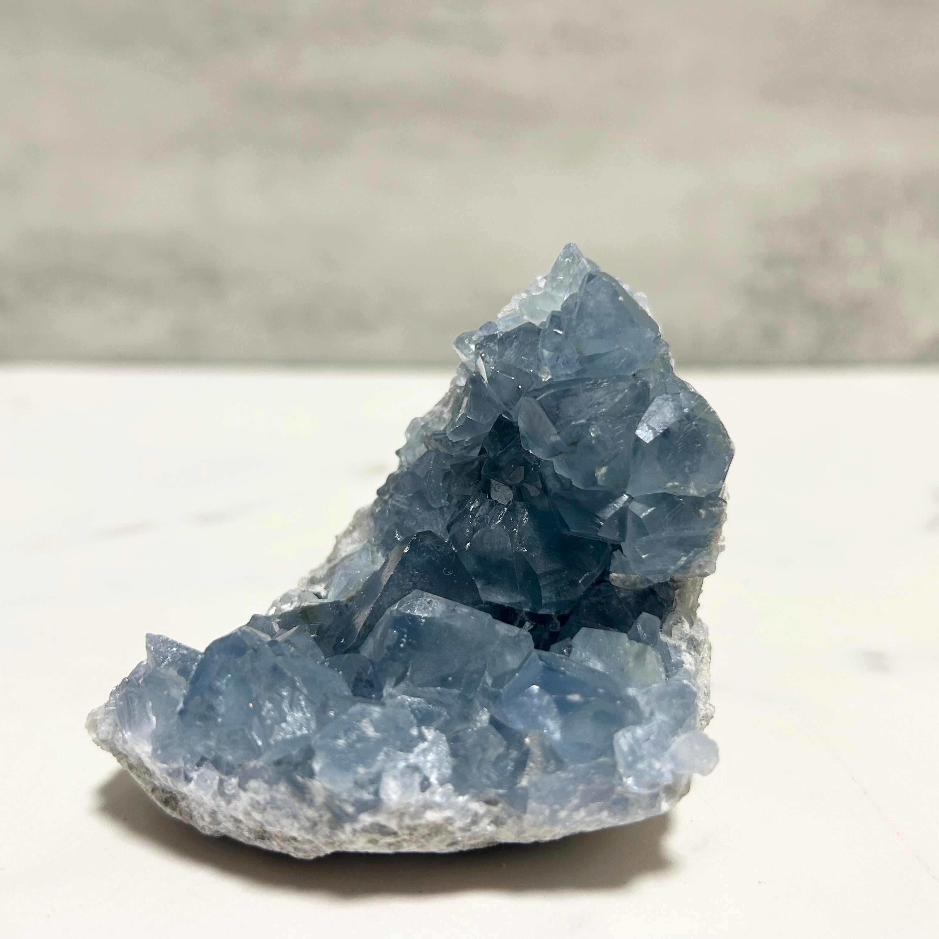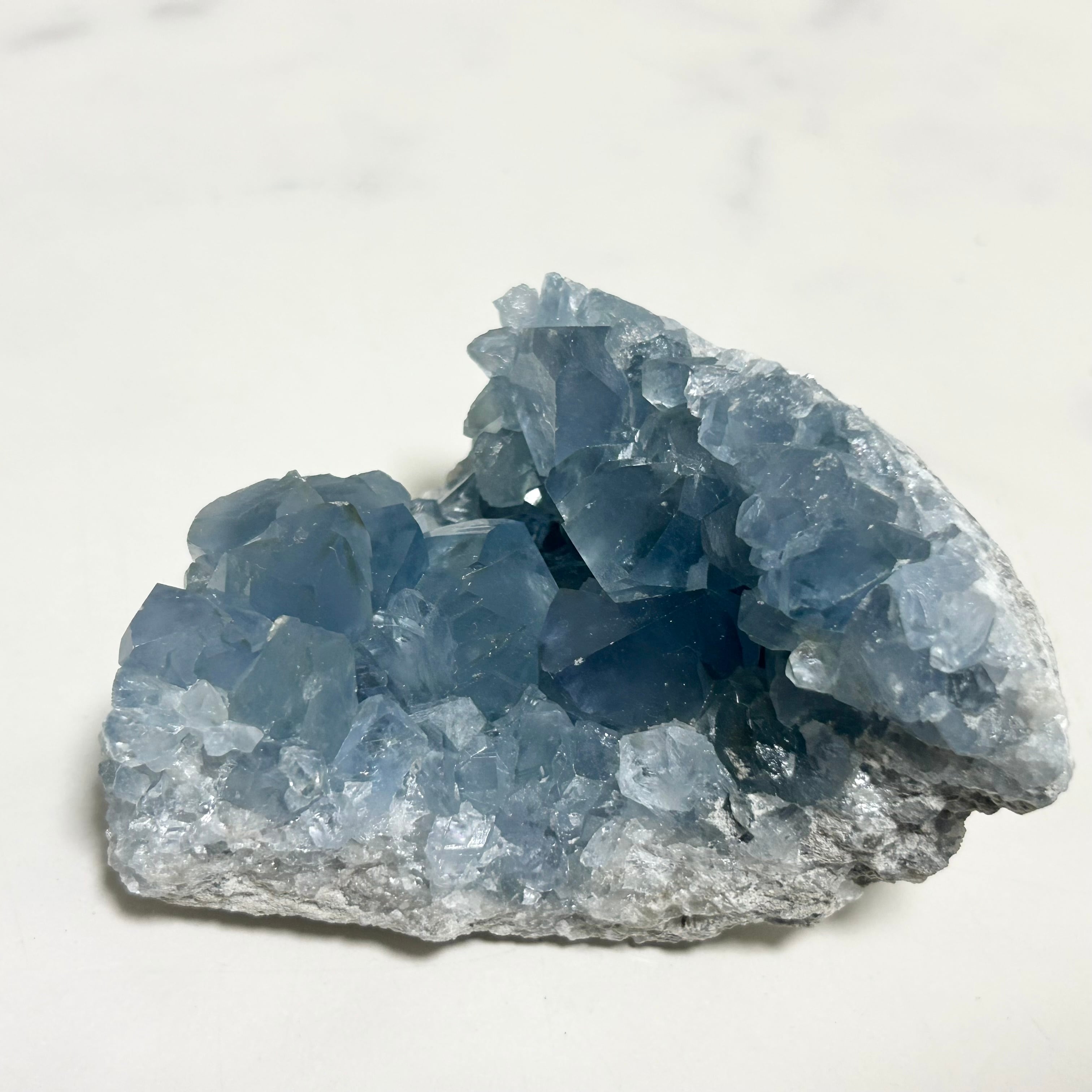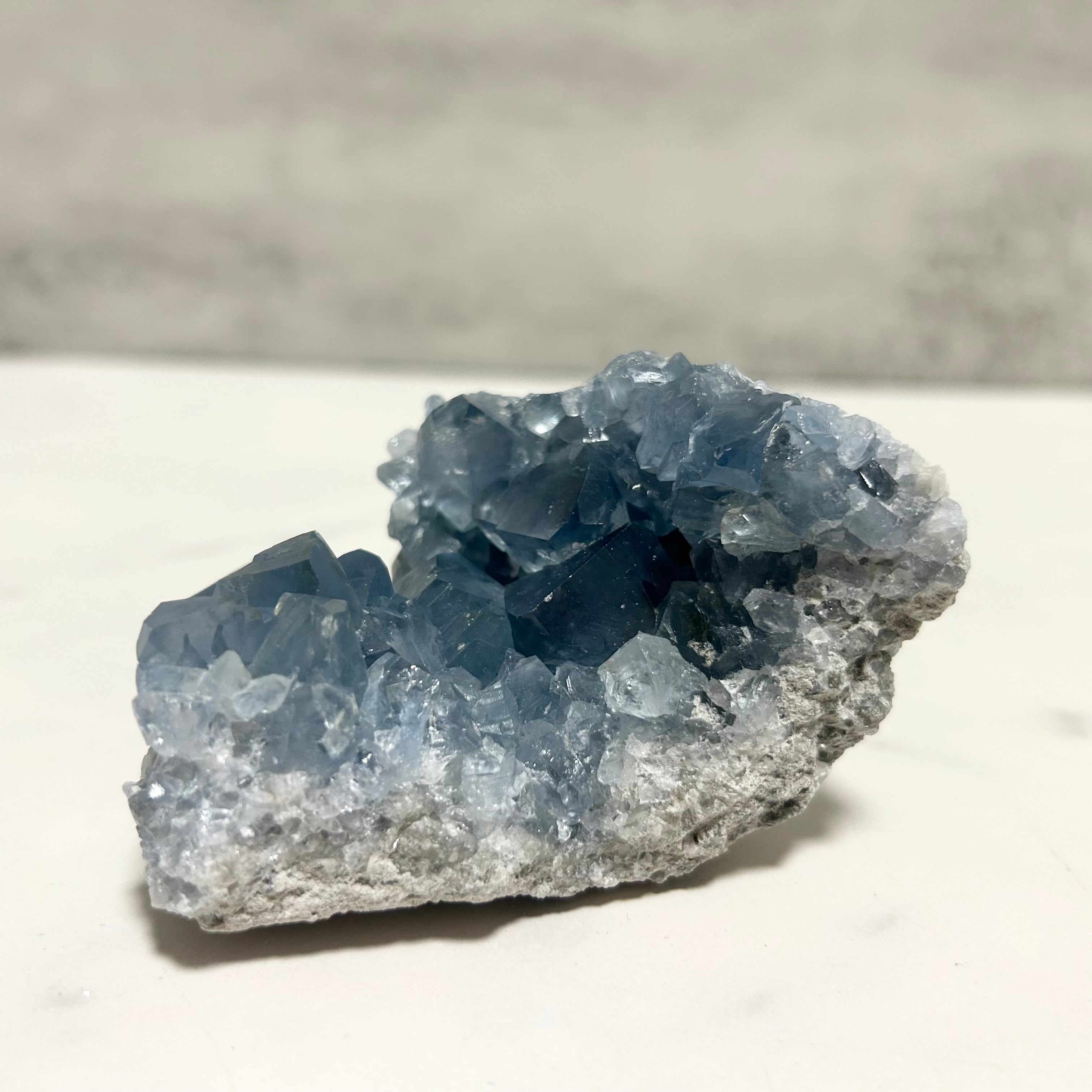 大粒でテリ艶の美しいブルーの結晶がキラキラ輝く、素敵なセレスタイトです。