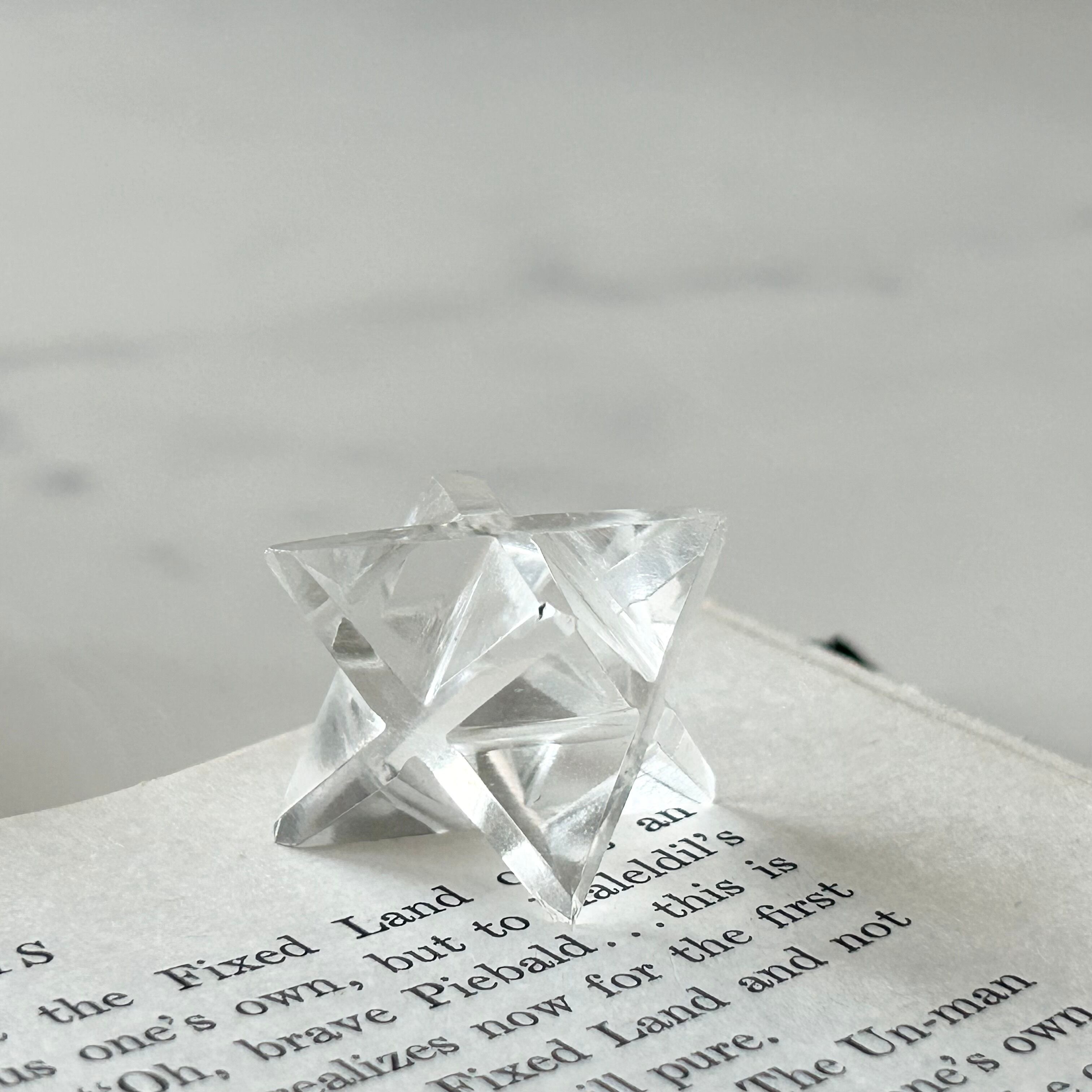 2つのピラミッド(正三角形と逆三角形)を組み合わせた六芒星(ヘキサグラム)の立体形状です。最強の守護力やエネルギーの調和・増幅をもたらす神聖幾何学のシンボルです。