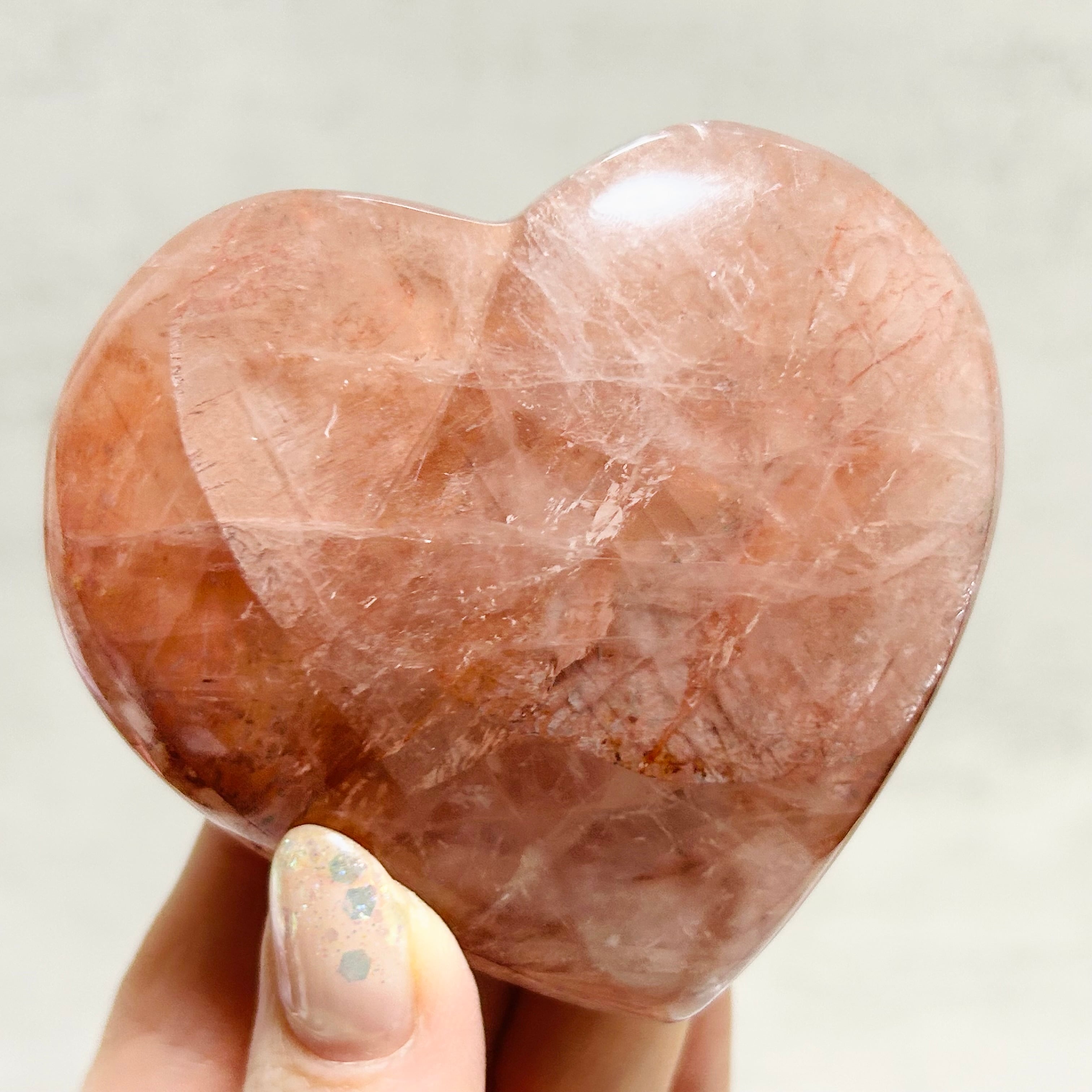 ファイヤークォーツのハート型パームストーン。厚みがある大きめサイズです。