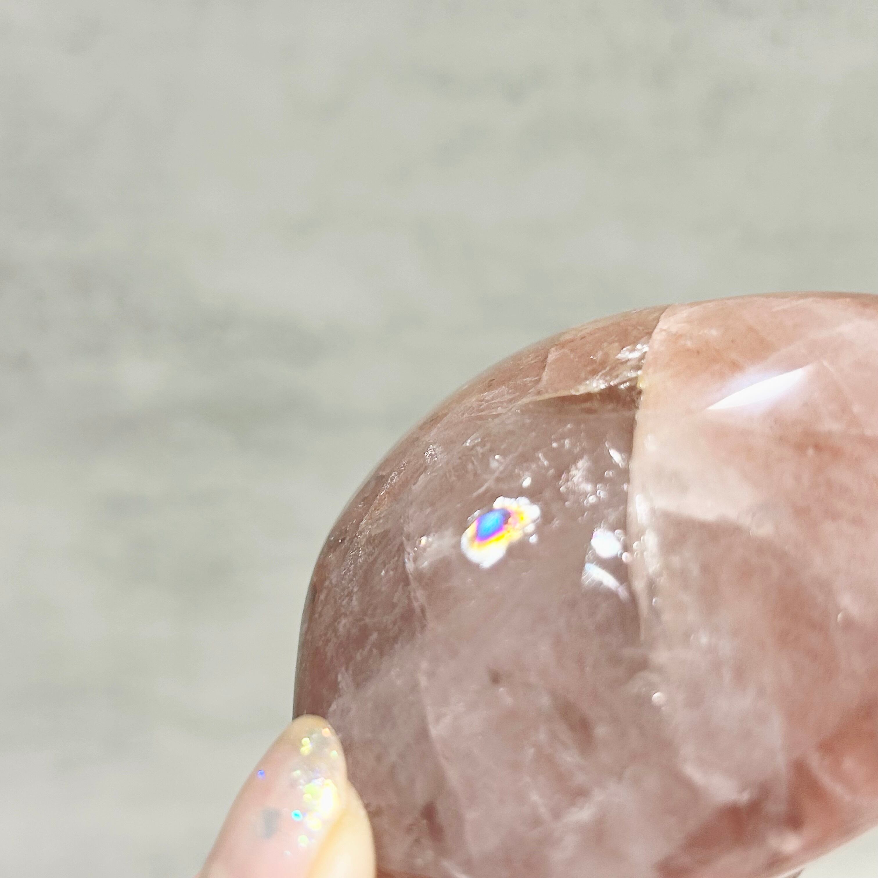 ファイヤークォーツとは流通名で、正式な鉱物名は「レピドクロサイトインクォーツ(Lepidocrocite in Quartz)」と呼びます。