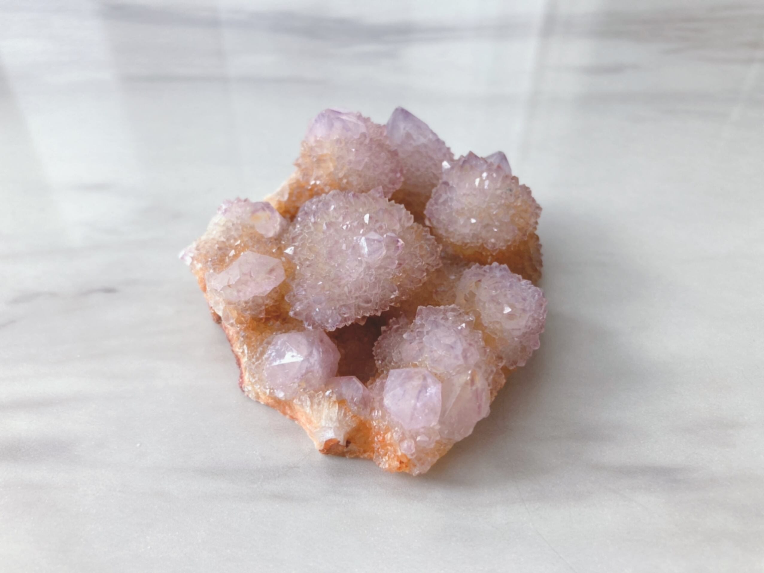 スピリットクォーツは、ユニークな外見をしていることで知られる水晶。アメジストの変種です。結晶柱の周りに細かな結晶が生えており、それがサボテンのトゲのようにも見えることから、サボテン水晶、カクタスクォーツなどと呼ばれることもあります。
