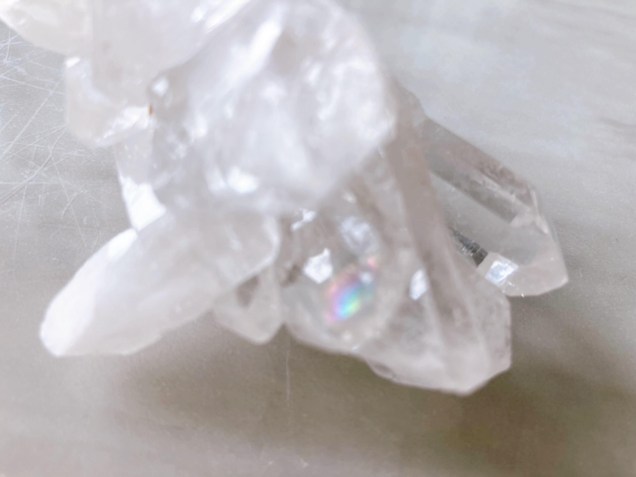 こちらの水晶は、願いを叶える力が強力だと言われるレインボーも見られます。