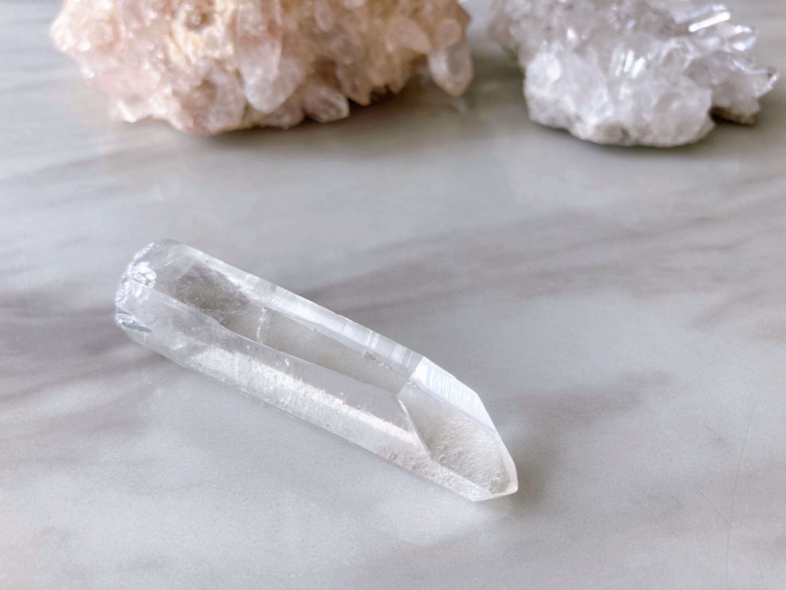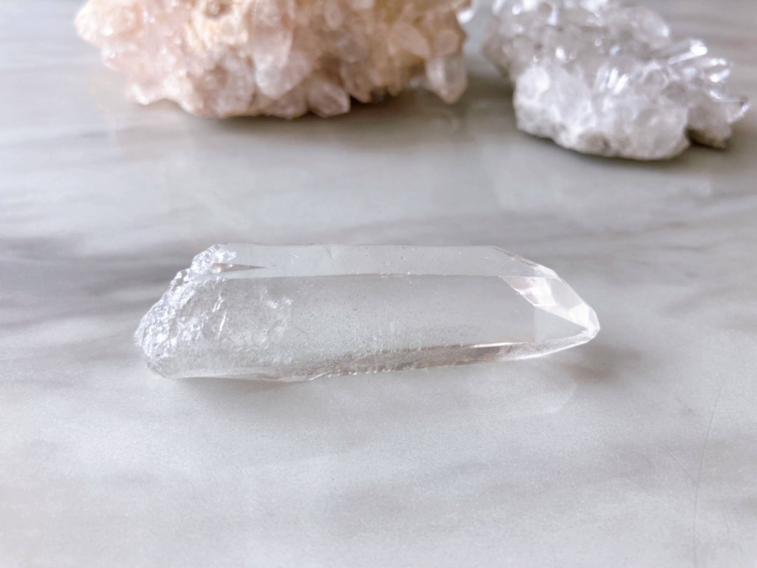 ヴィジョンクォーツは、氷のような透明感、煌めき、柱面に刻まれる無数の模様や条線が特徴のとても神秘的な水晶です。トマスゴンサガ産水晶、コロンビア産レムリアンシードに匹敵するほどの美しさです。