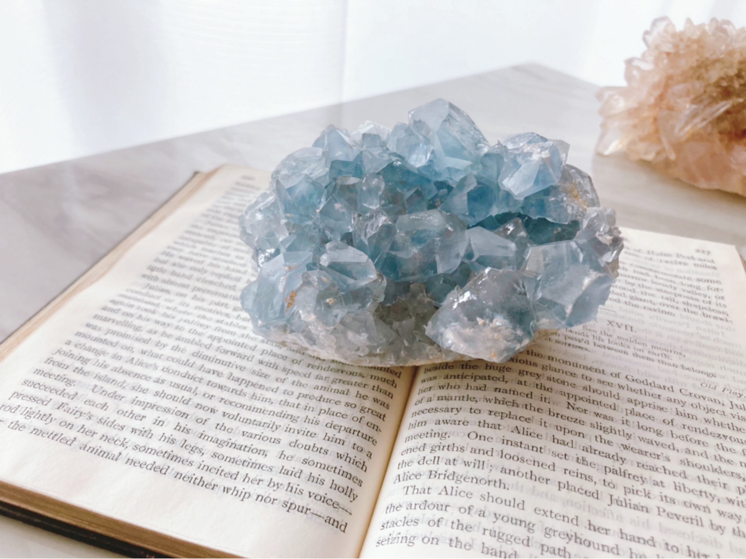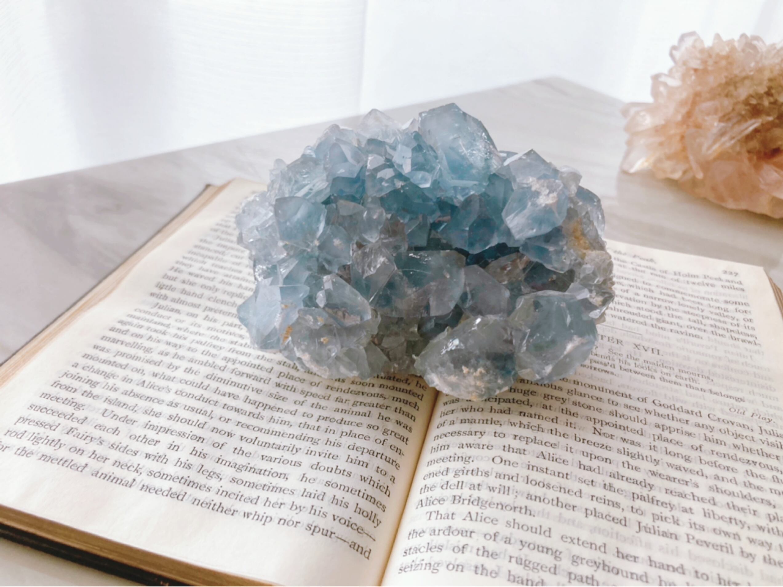 天青石という、青く晴れた空を連想させる和名を持つ、美しいスカイブルーのセレスタイト。ラテン語で「天国のような」という意味も持っています。
