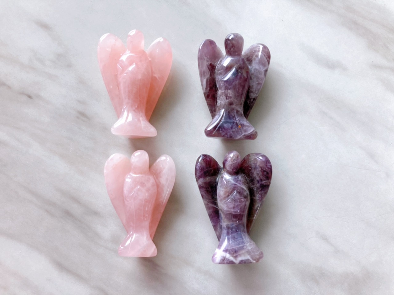 ローズクォーツとアメジストの可愛い天使のオブジェ2点セットです。ランダムになりますので、どの天使が届くかお楽しみに♪