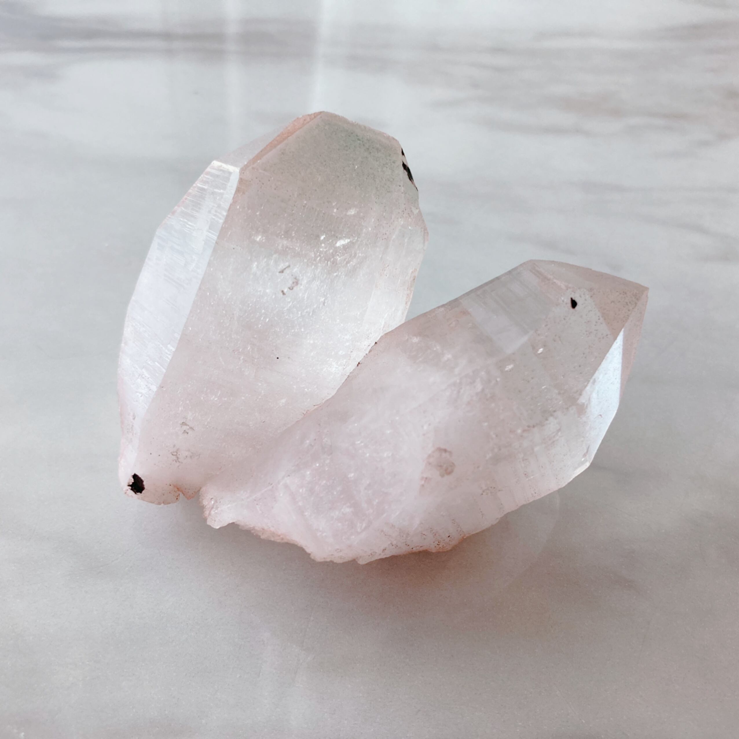 こちらのクリスタルは、1つの結晶の根元から2つのポイントが密接して形成された「ツインソウル」と呼ばれる形状が特徴です。