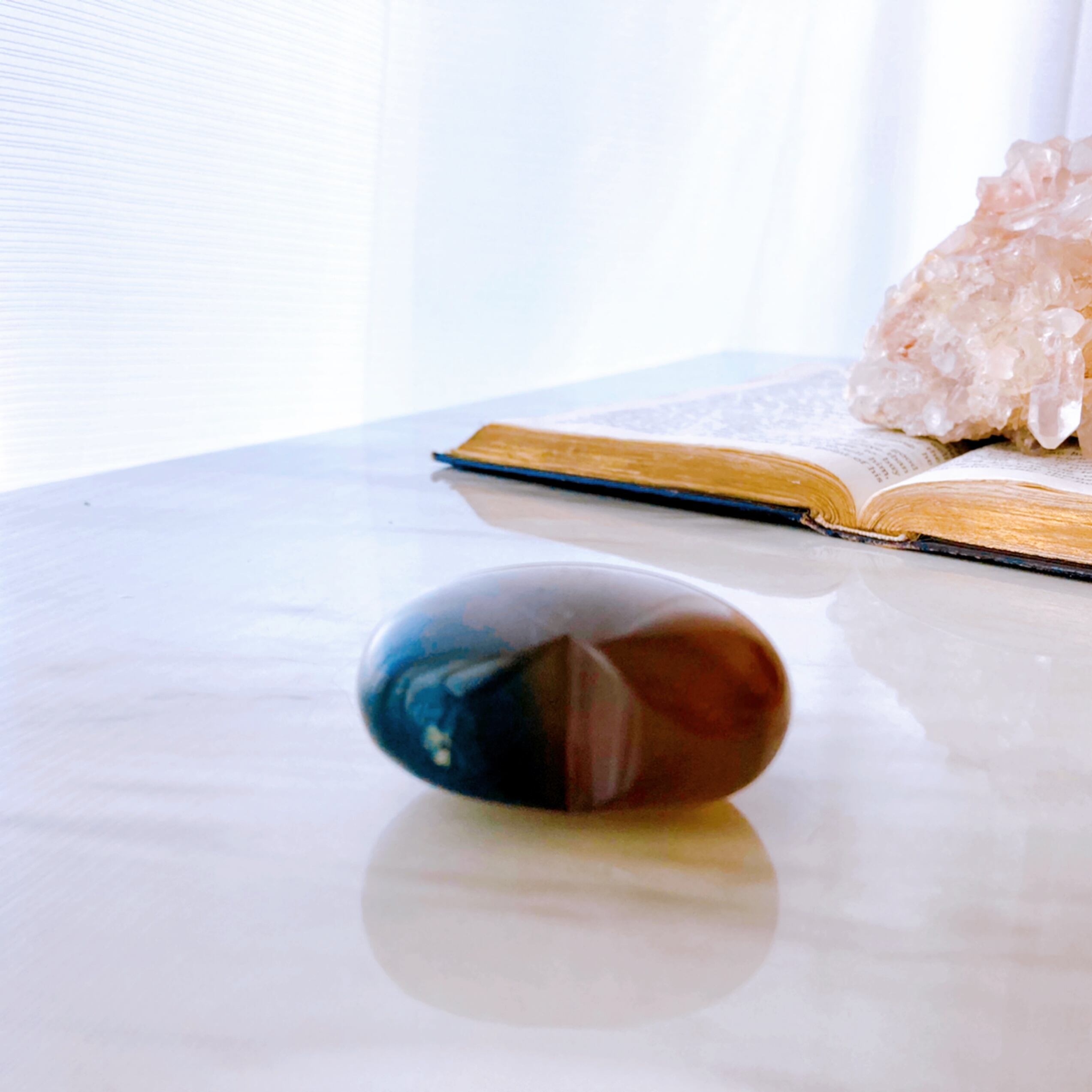 イエロー、パープル、グリーンのグラデーションが美しい、アンバーのようなカラーのクリスタルです。