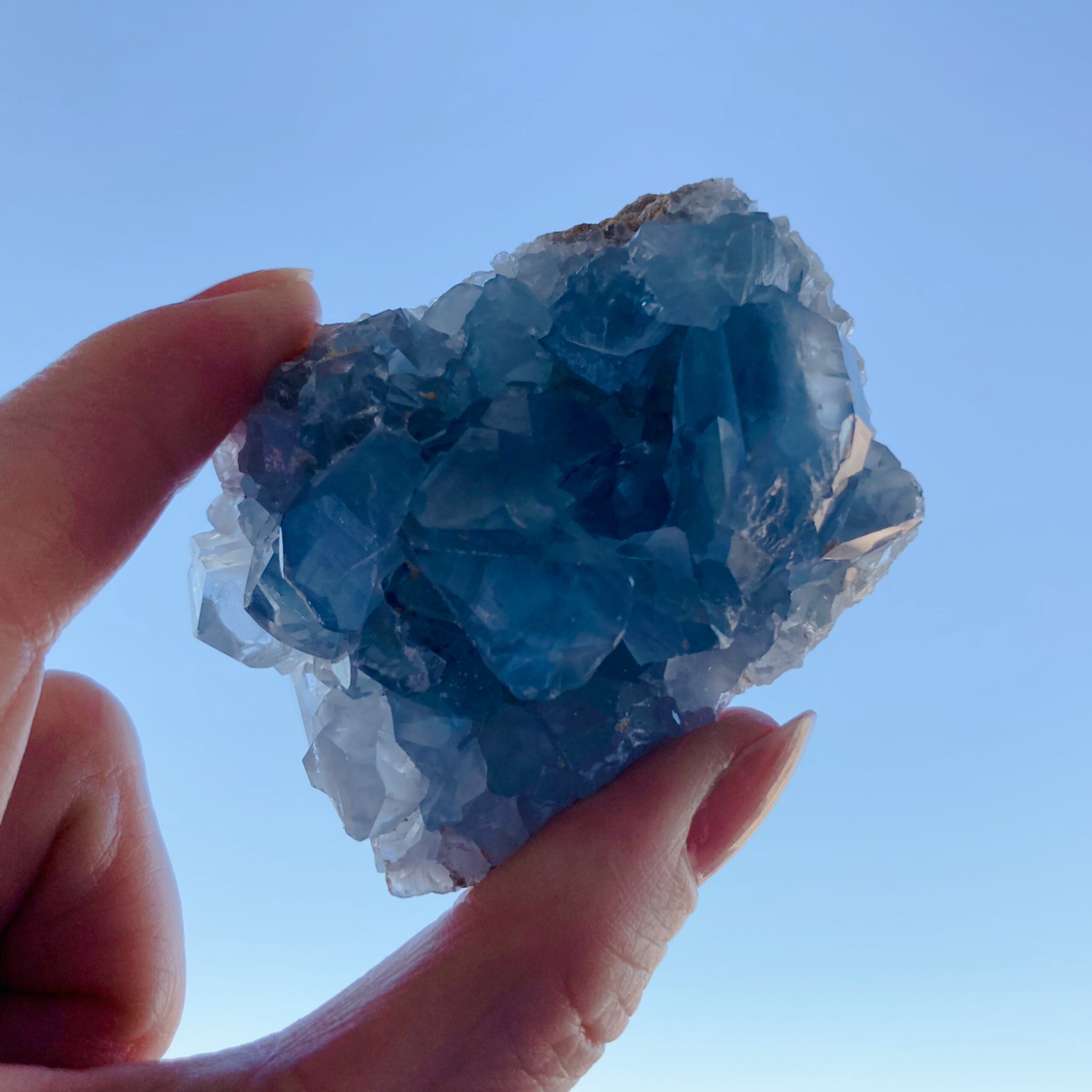 天青石という、青く晴れた空を連想させる和名を持つ、美しいスカイブルーのセレスタイト。ラテン語で「天国のような」という意味も持っています。