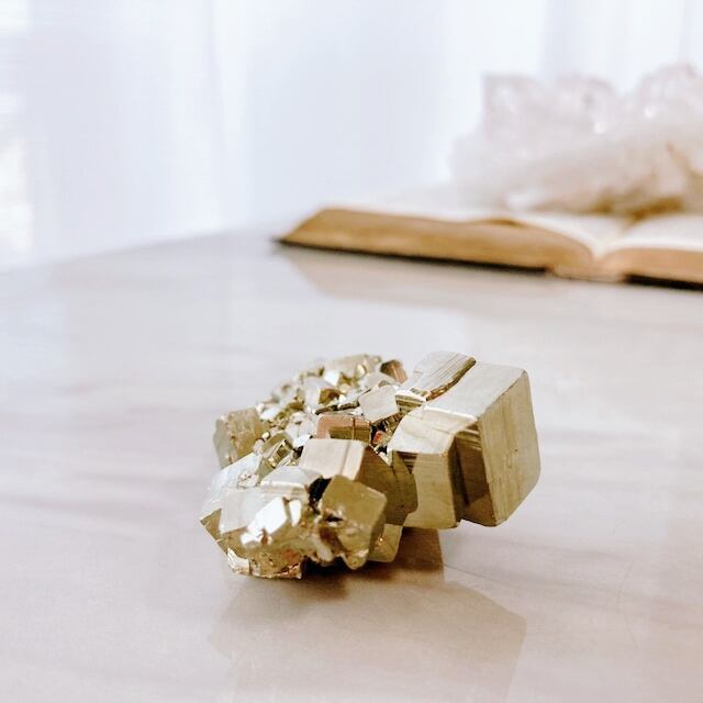 パイライトは、火山活動によって生成されたことから、大地のエネルギーを吸収し、上昇のエネルギーを持つパワフルな石です。持ち主に安定したパワーを与え、意思を強くし、行動力を高めるパワーがあります。チャンスを運び、ポジティブな方向に物事を進めます。