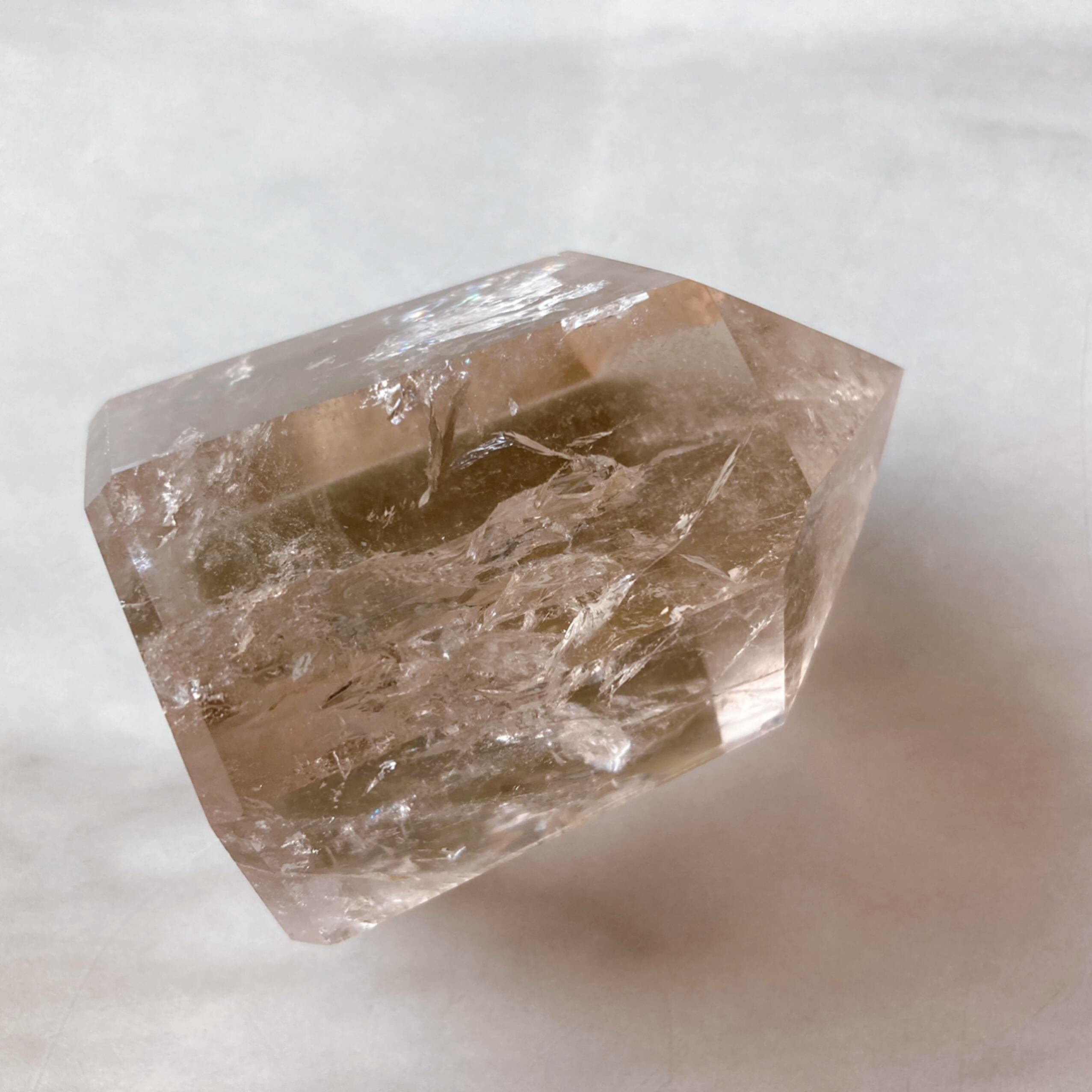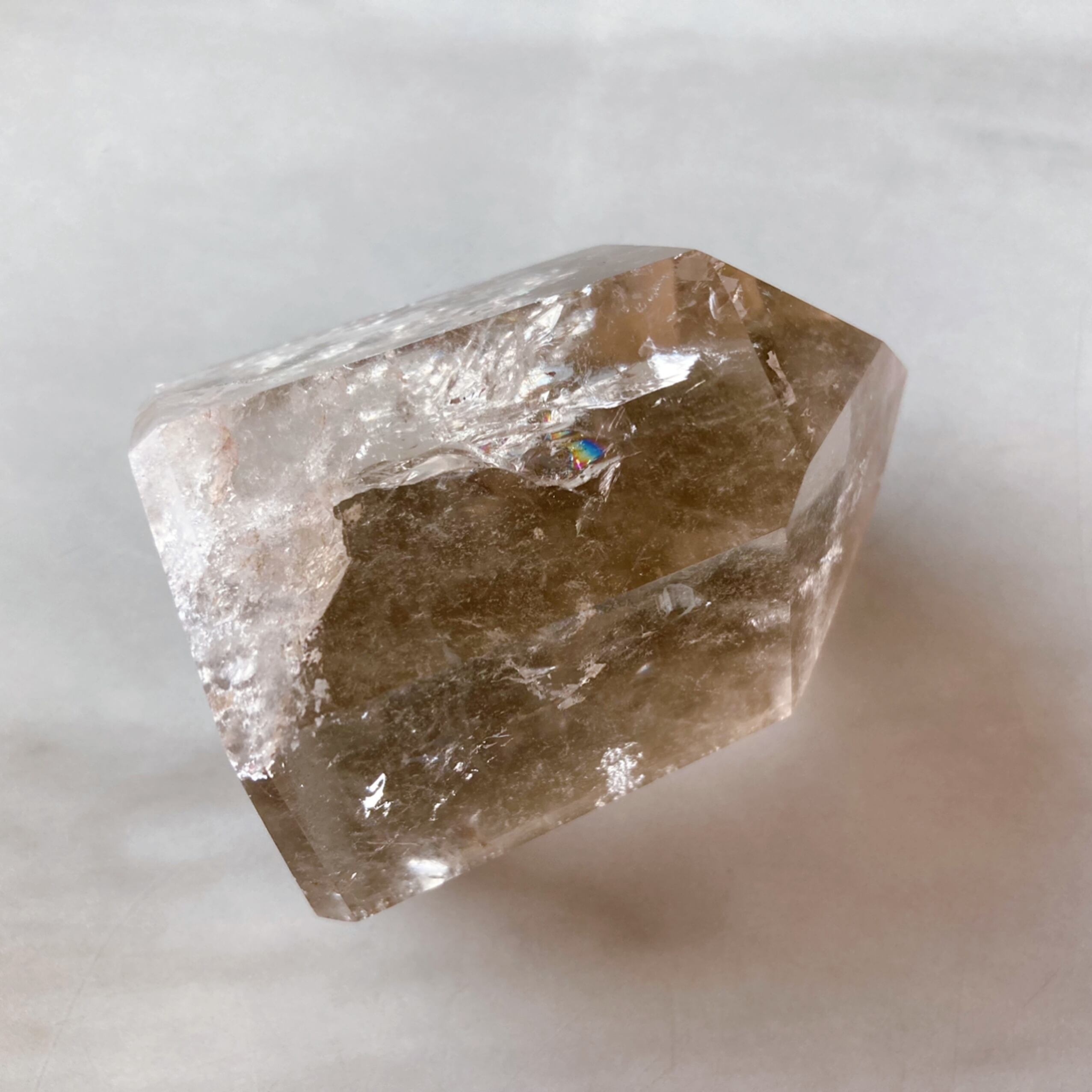 アイリスクォーツとは、水晶が成長過程で起きる亀裂に光が反射し、虹ができるものを言います。レインボーは、願いを叶える力が強いとされています。