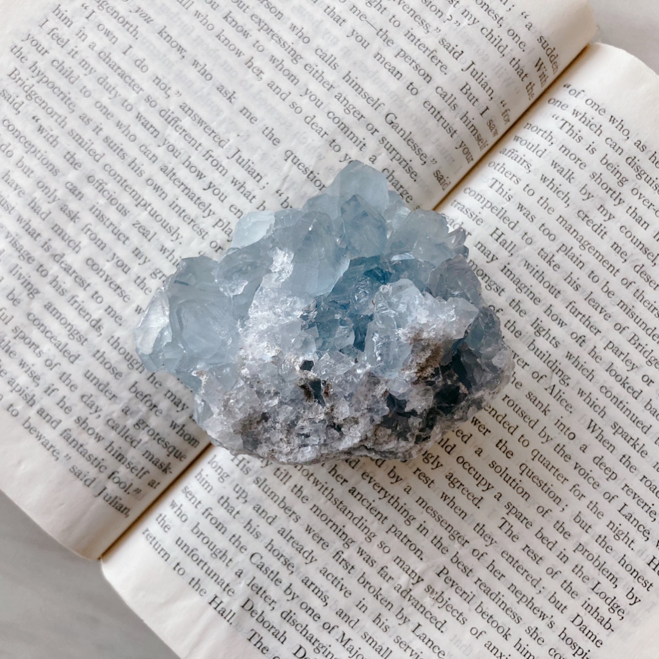 天青石という、青く晴れた空を連想させる和名を持つ、美しいスカイブルーのセレスタイト。ラテン語で「天国のような」という意味も持っています。