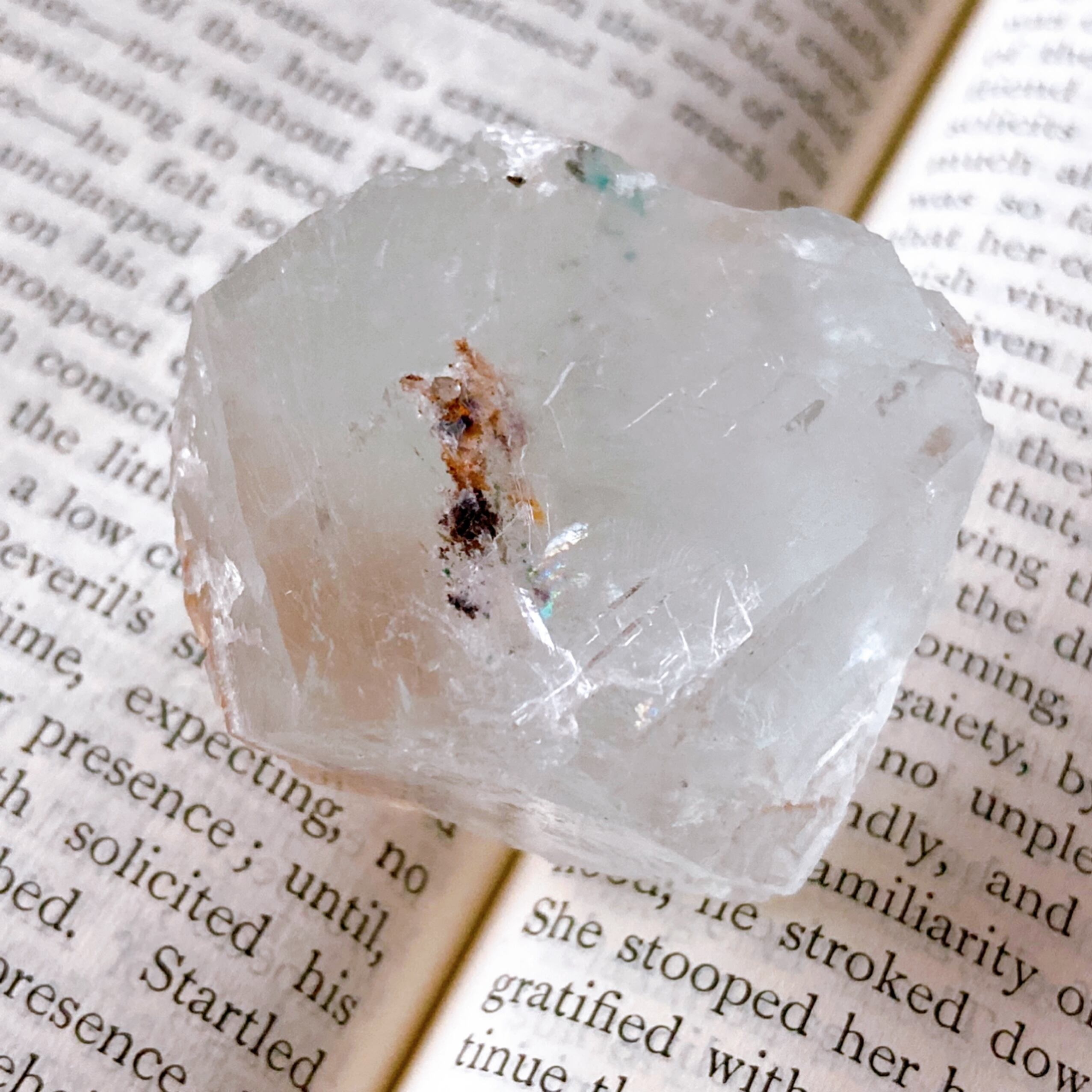 虹がキレイに見られるフローライトの原石です。クリア、クリアに近い淡いブルー、淡いグリーン。それぞれに個性があって美しい子たちです。
