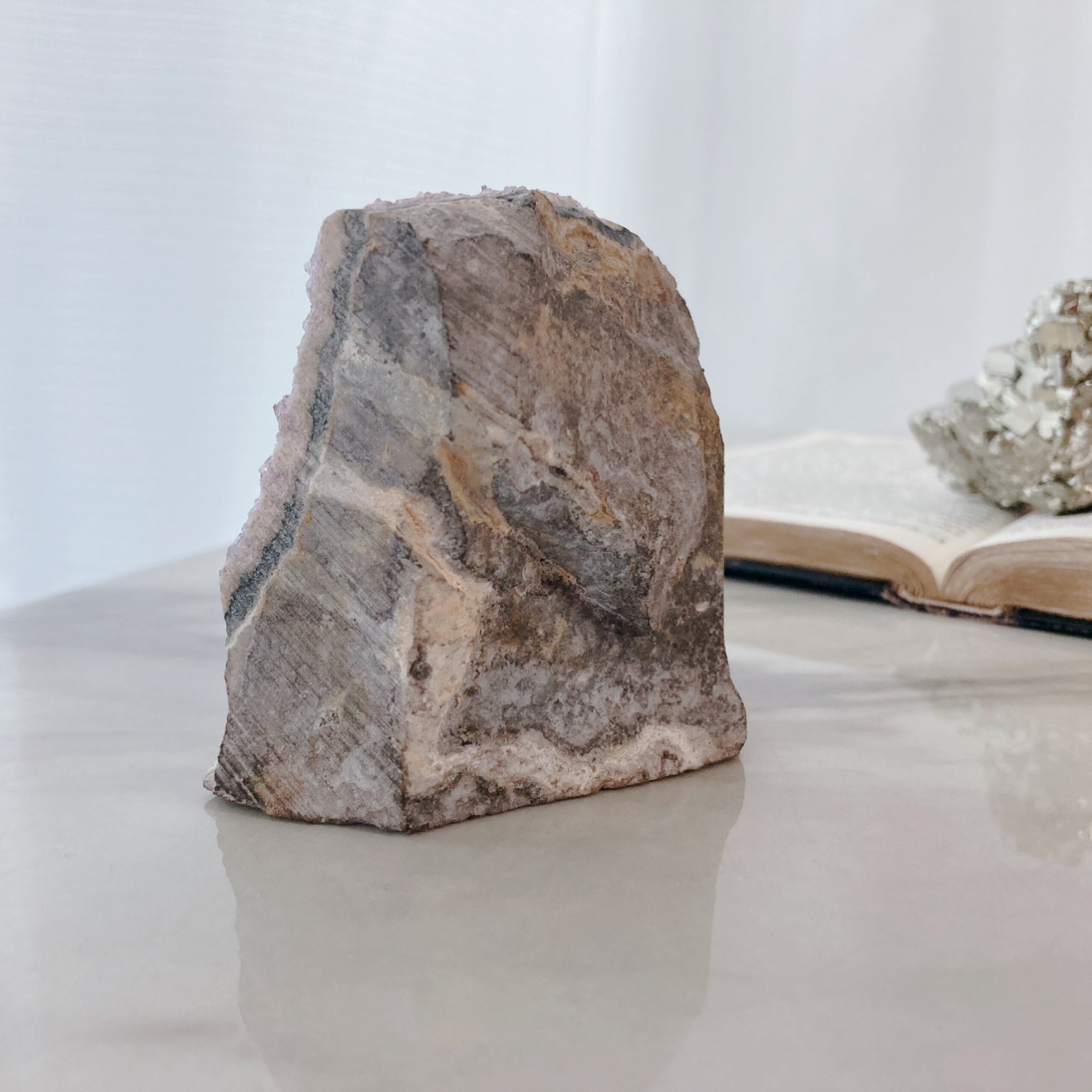 玄関やお部屋のインテリアにピッタリの置き型です。淡いラベンダーカラーの小さな結晶が集まったドゥルージーがキラキラと輝きます。