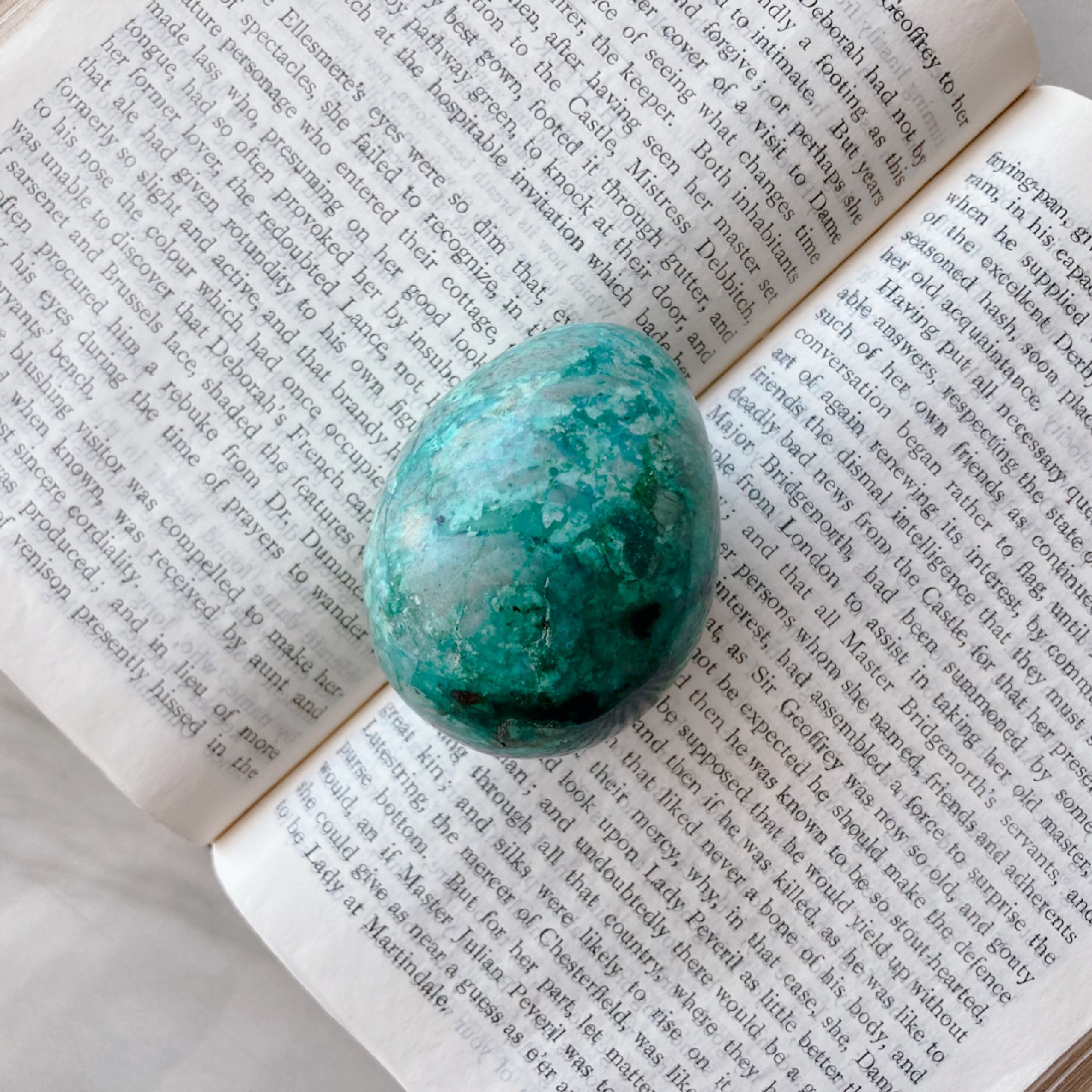クリソコラは、調和や平和の波動を持ち、持ち主に幸福や繁栄をもらたして成功へと導くと言われます。地球のエネルギーと深い繋がりを持つ素晴らしいヒーリングストーンです。情緒を安定させ、心身の調和を整え、魂と大地との結びつきを強めて、地に足が付いたような深い安心感をもたらしてくれるでしょう。
