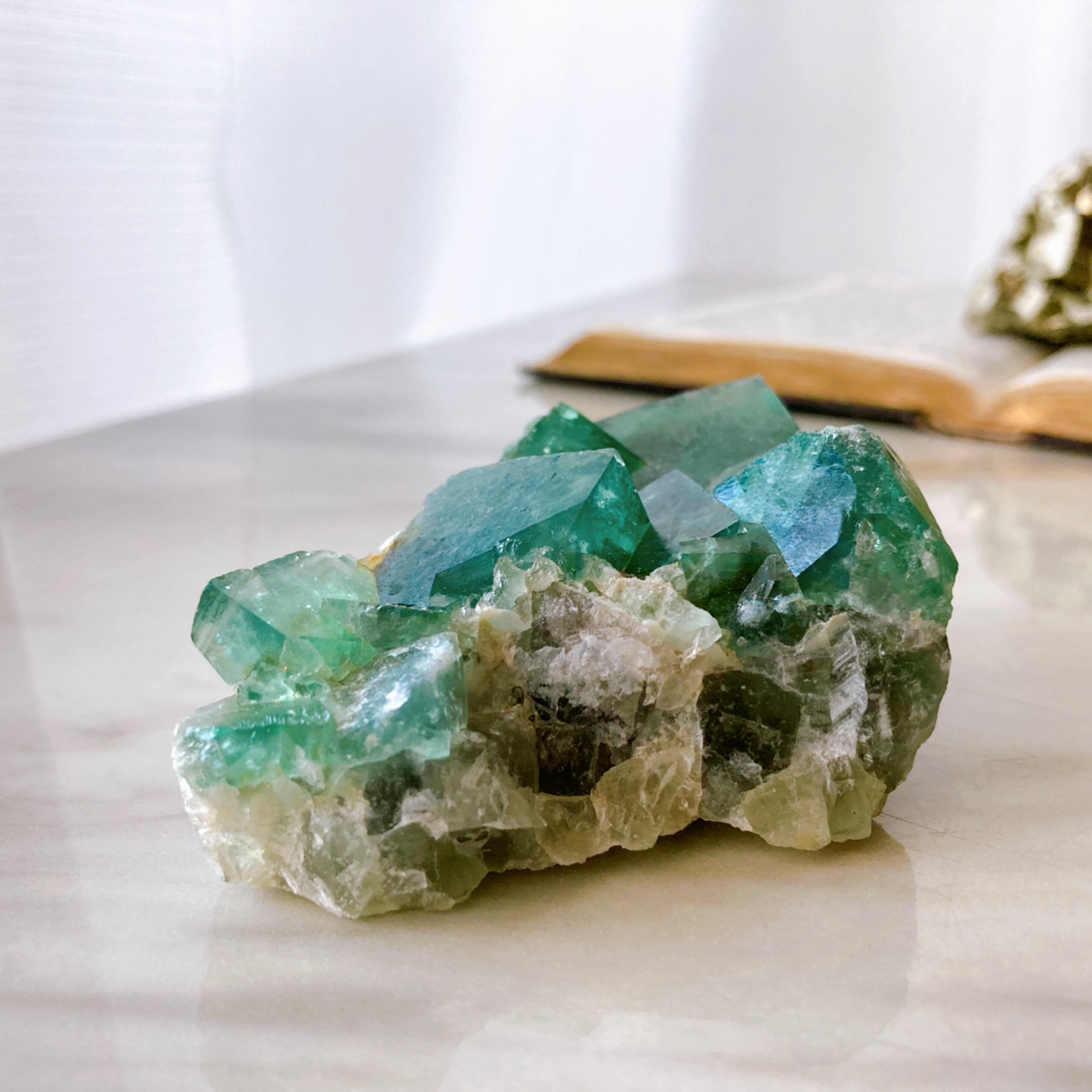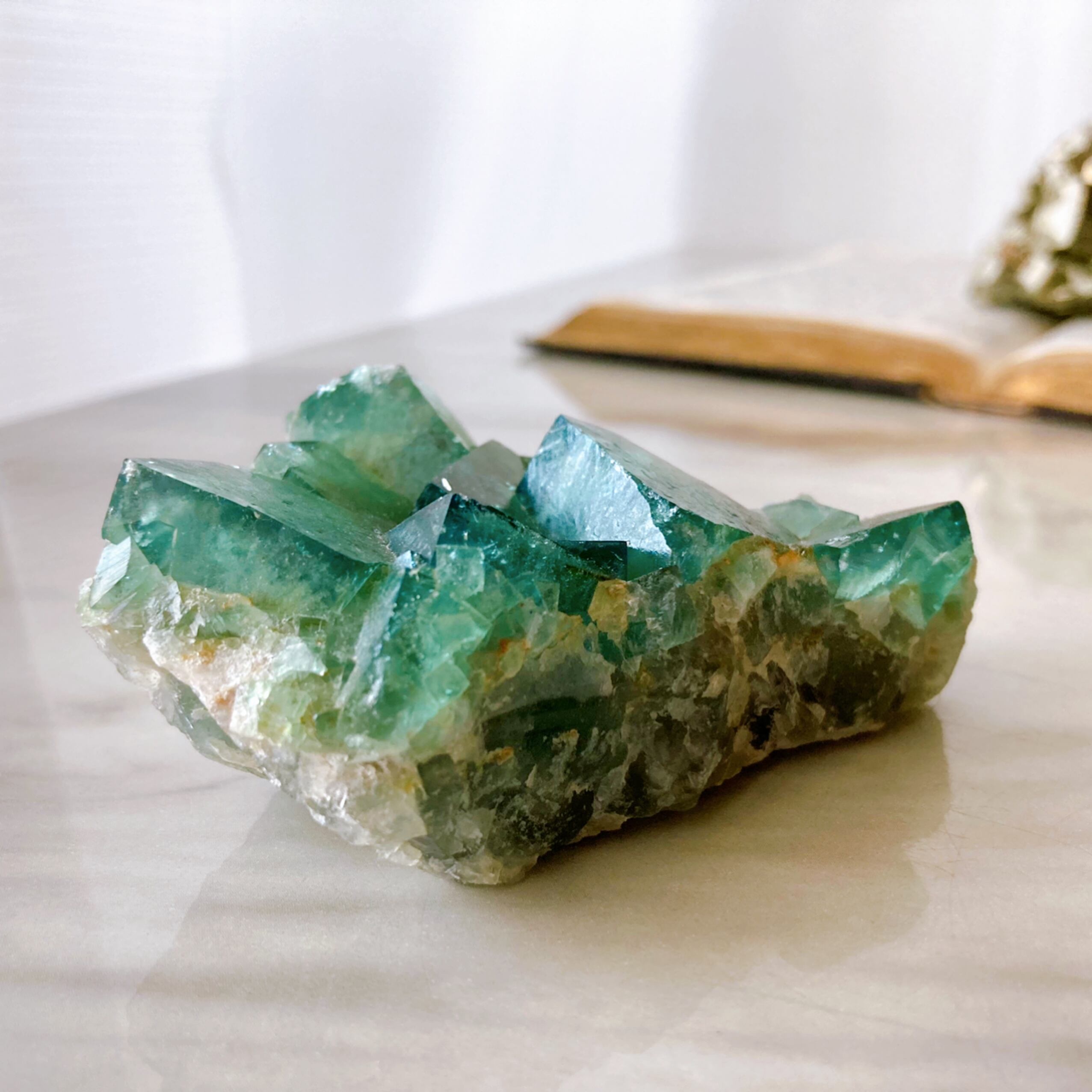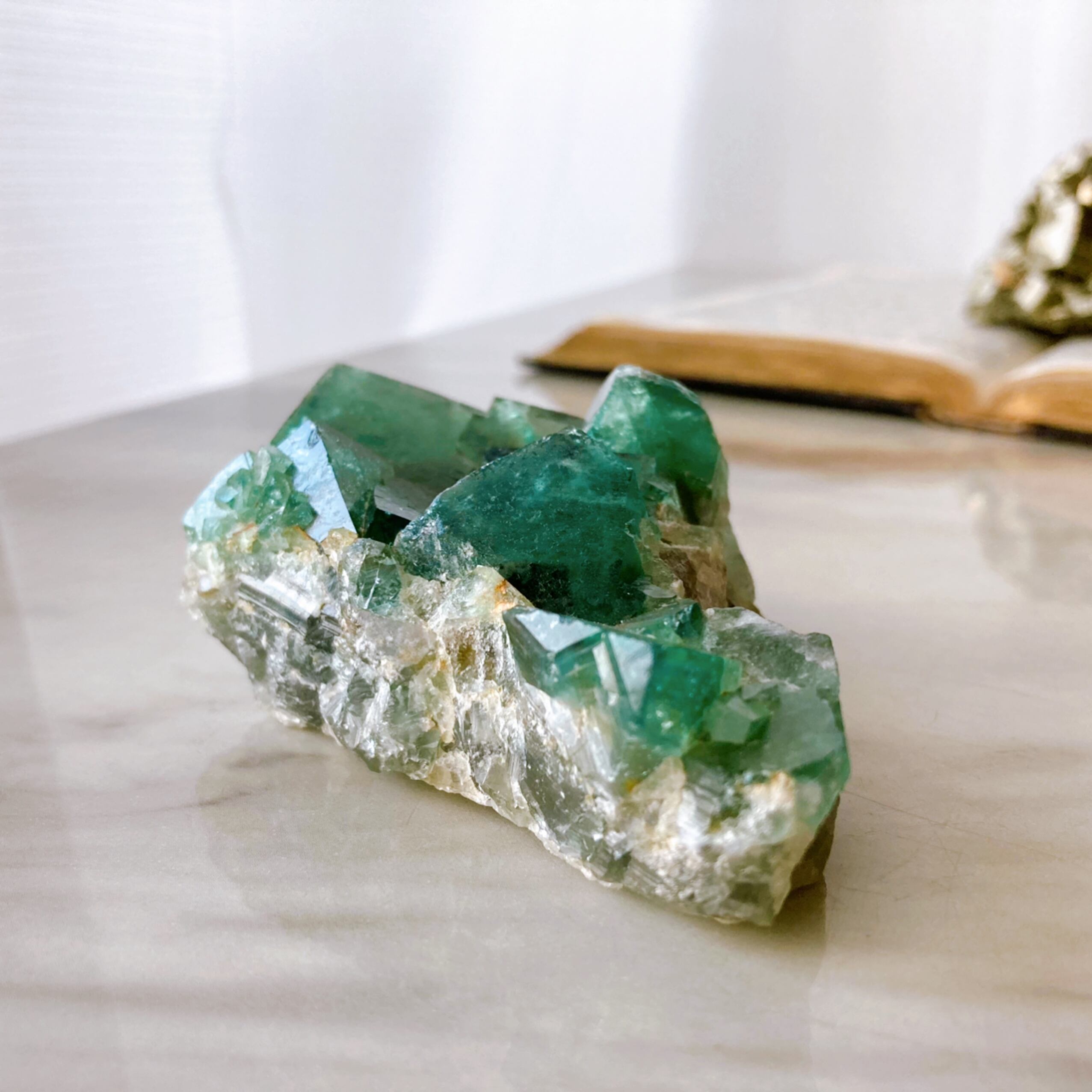 深いグリーンが美しいマダガスカル産のグリーンフローライト原石です。UVライトを当てるとブルーに蛍光します。