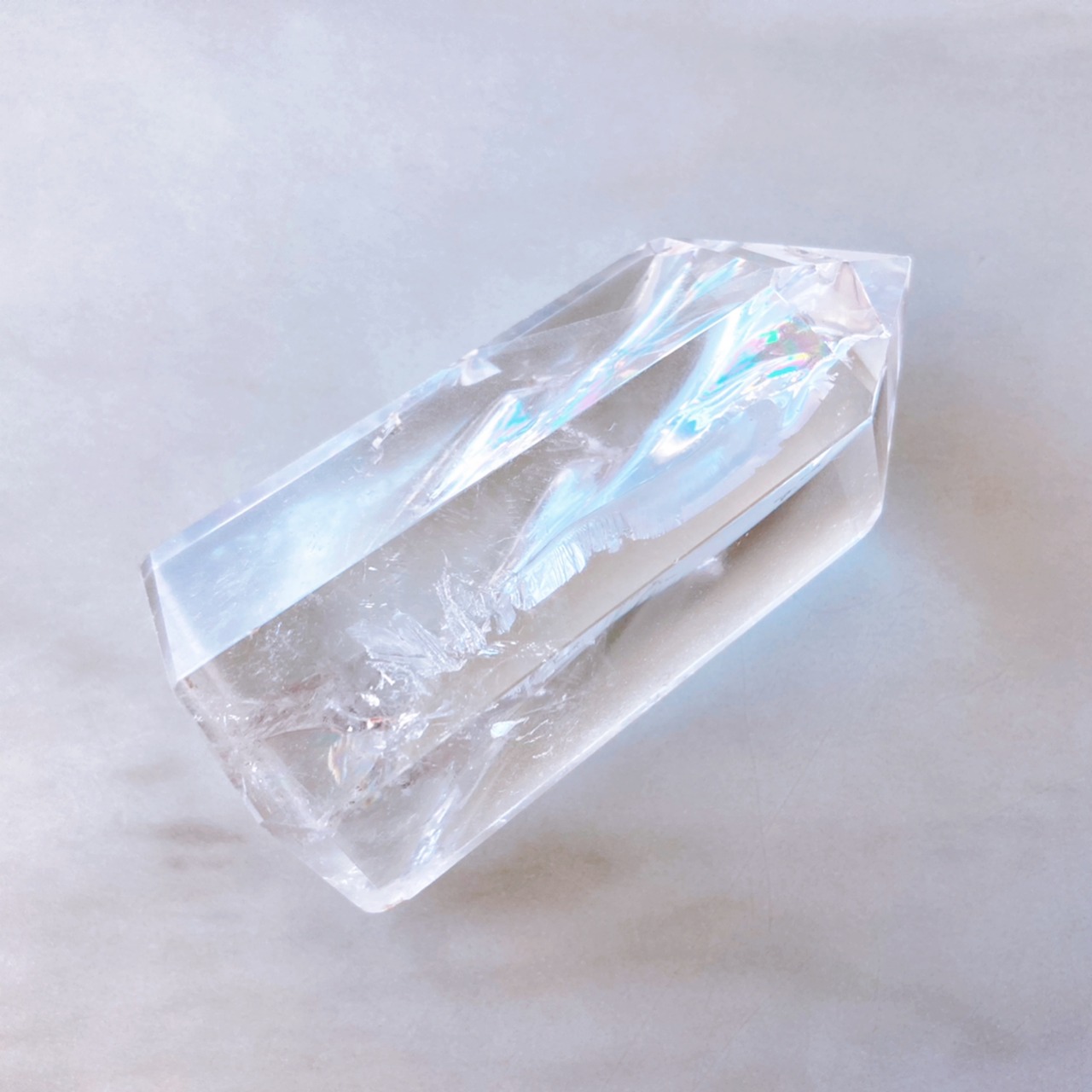 アイリスクォーツとは、水晶が成長過程で起きる亀裂に光が反射し、虹ができるものを言います。