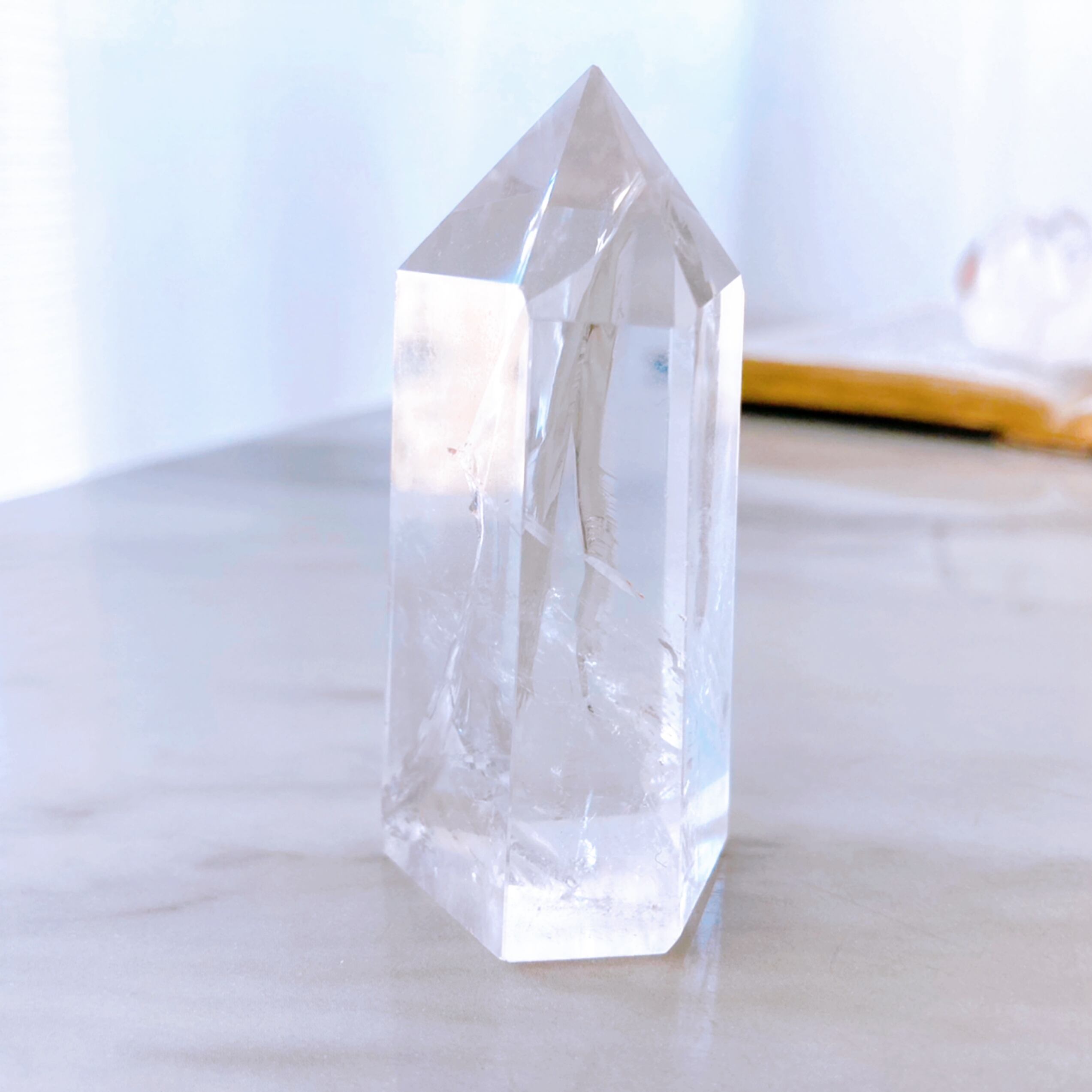 水を閉じ込めたような透明感の高い水晶ポイントです。