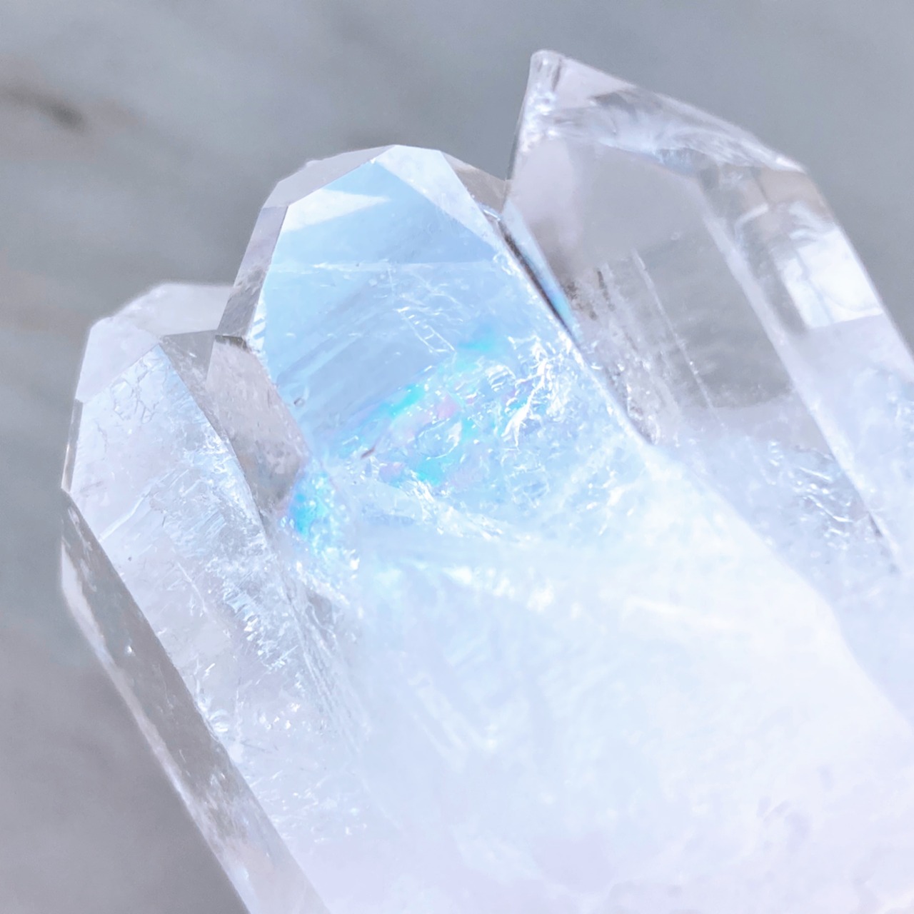 こちらのクリスタルは願いが叶いやすいとされるレインボーと未来からのメッセージを受け取れると言われるフューチャータイムリンクが見られます。