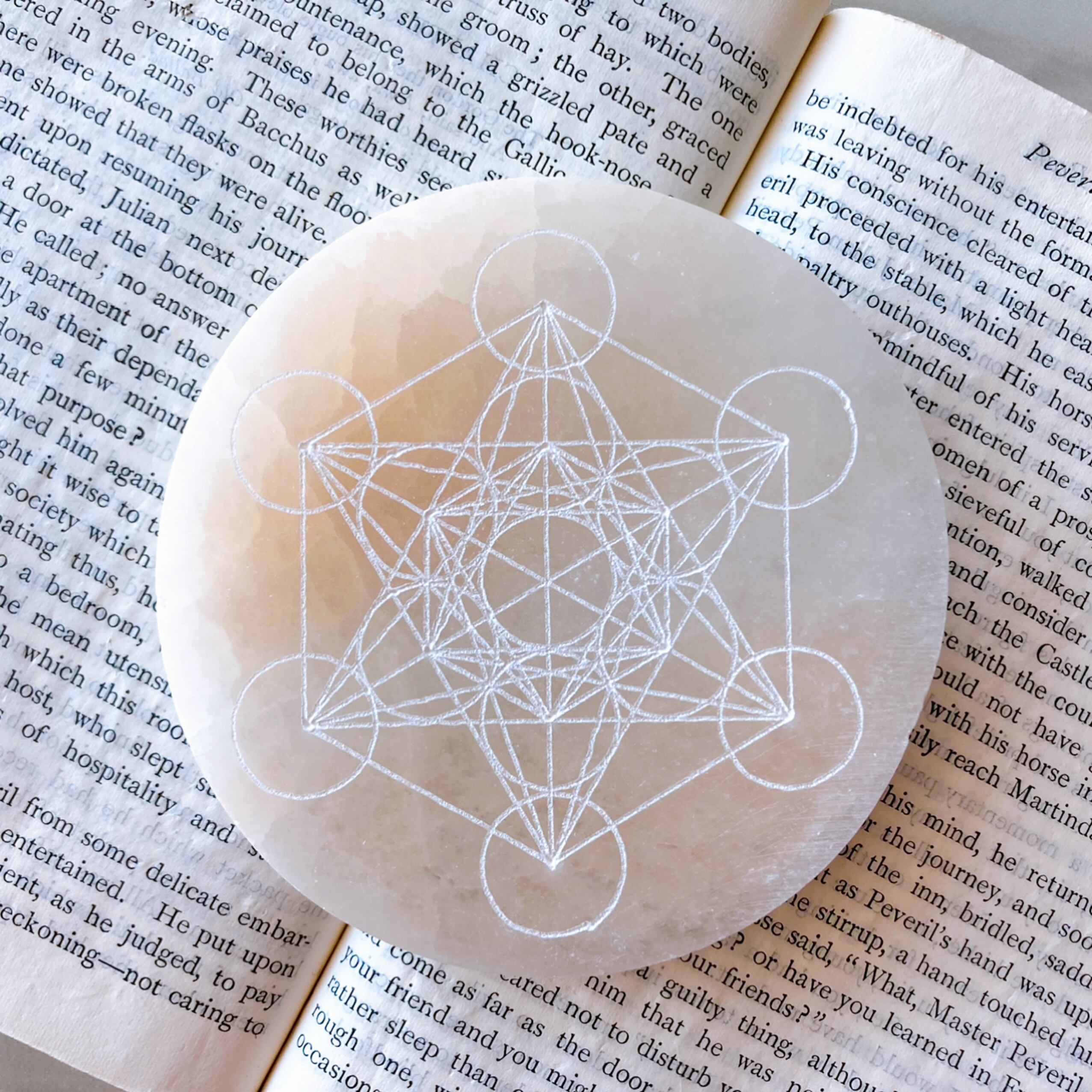 セレナイトの神聖幾何学プレートです。クリスタルグリッドや、天然石のディスプレイなど、自由な発想でお使いください。こちらは、全体的にオレンジの色味がかかっているオレンジセレナイトです。底面にややあたりがありますので、よくご確認の上、ご購入をお願いします。