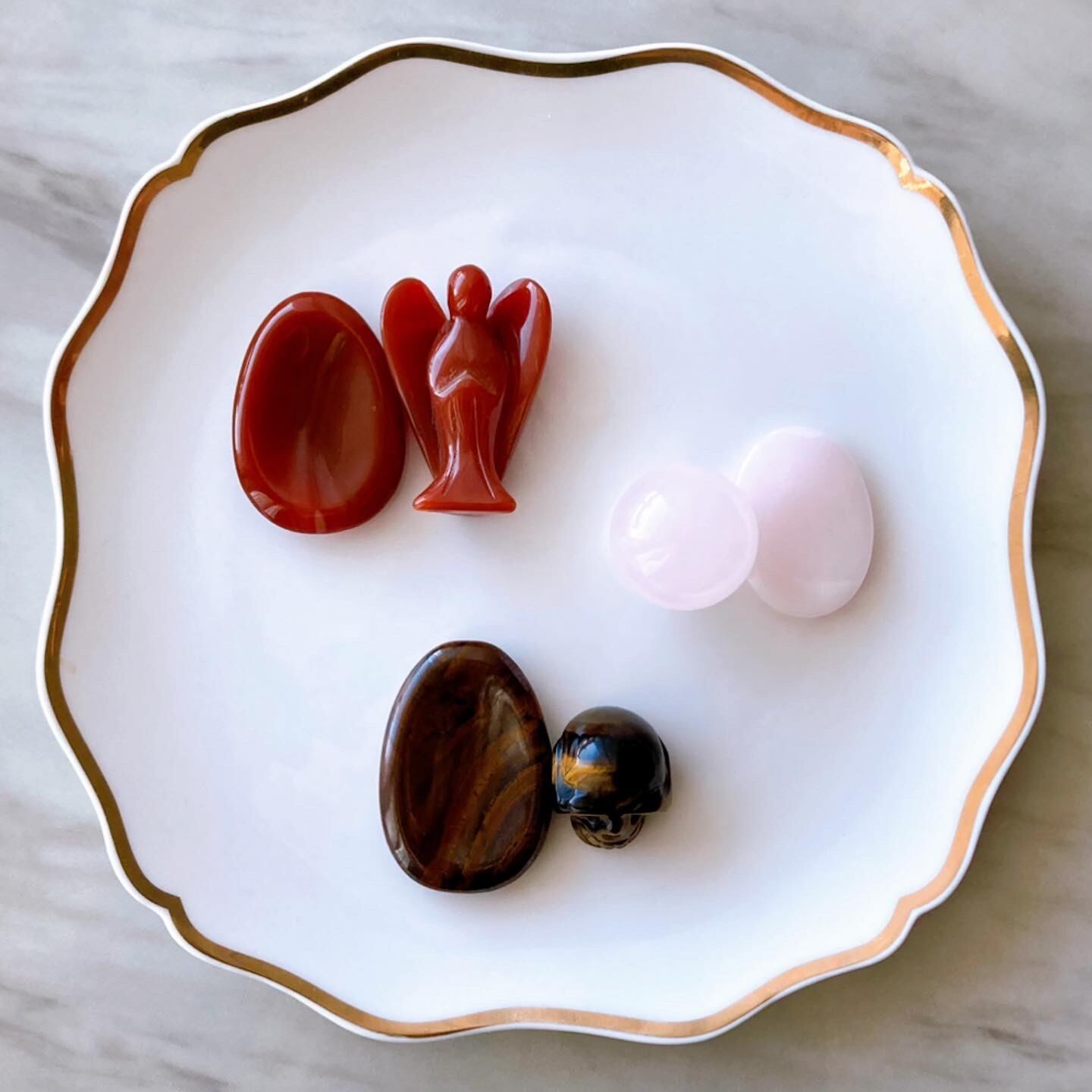 寅年のお守りとしても人気のあるタイガーアイのセット。ウォーリーストーンが鉄分の多いアイアンタイガーアイ、スカルがイエローとブラウンのタイガーアイです。アイアンタイガーアイはよりパワーが強いと言われています。