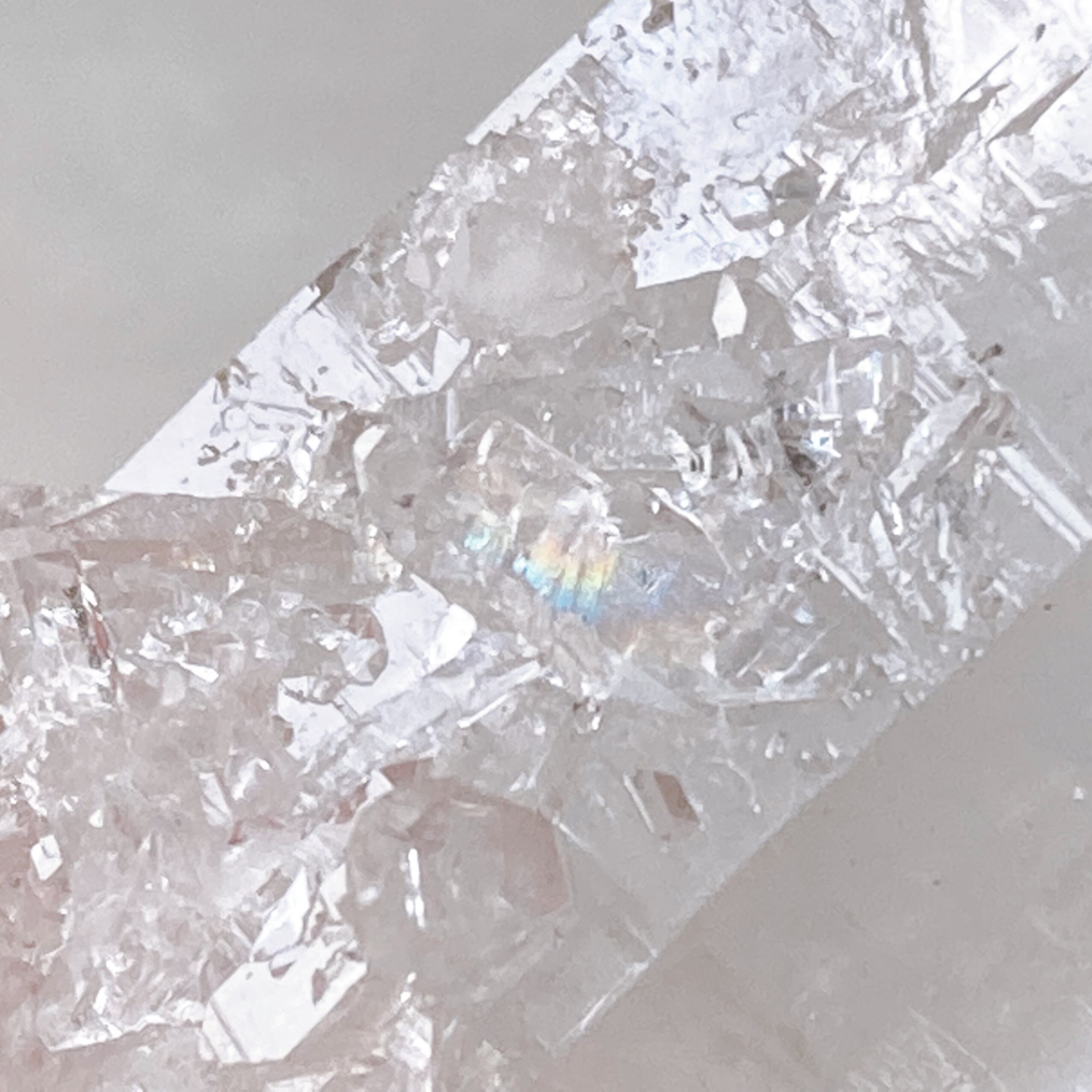 貫入(クォーツインクォーツ)、バーナクル、タイムリンク、レインボーが見られるマスタークリスタルのブラジル産 水晶ポイントです。
