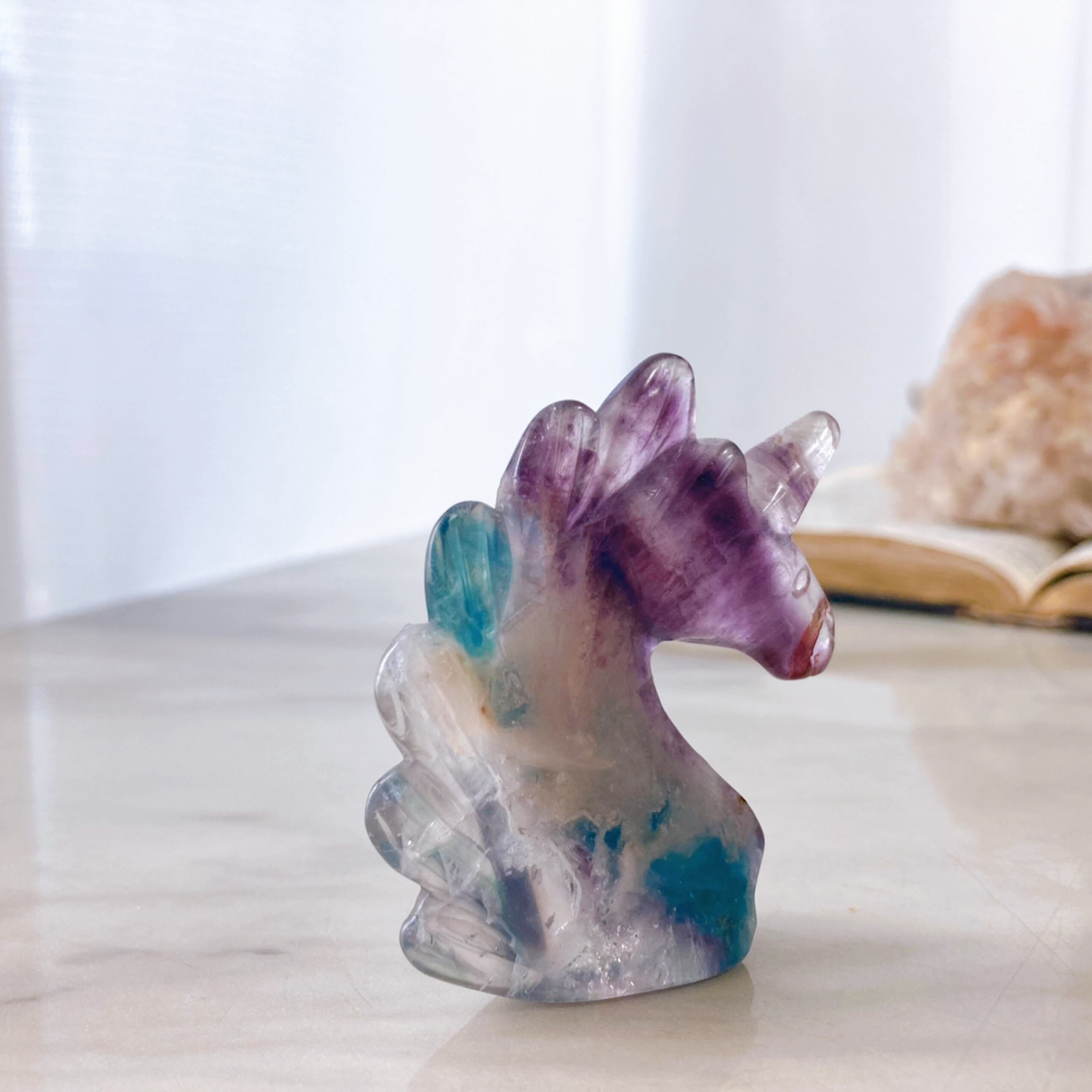 どんなものでも突き通す鋭い角と勇敢さを持つユニコーンは、魔除けの効果が期待でき、勇気が必要な時にサポートしてくれます。目が丸く、お顔はとても優しいです。