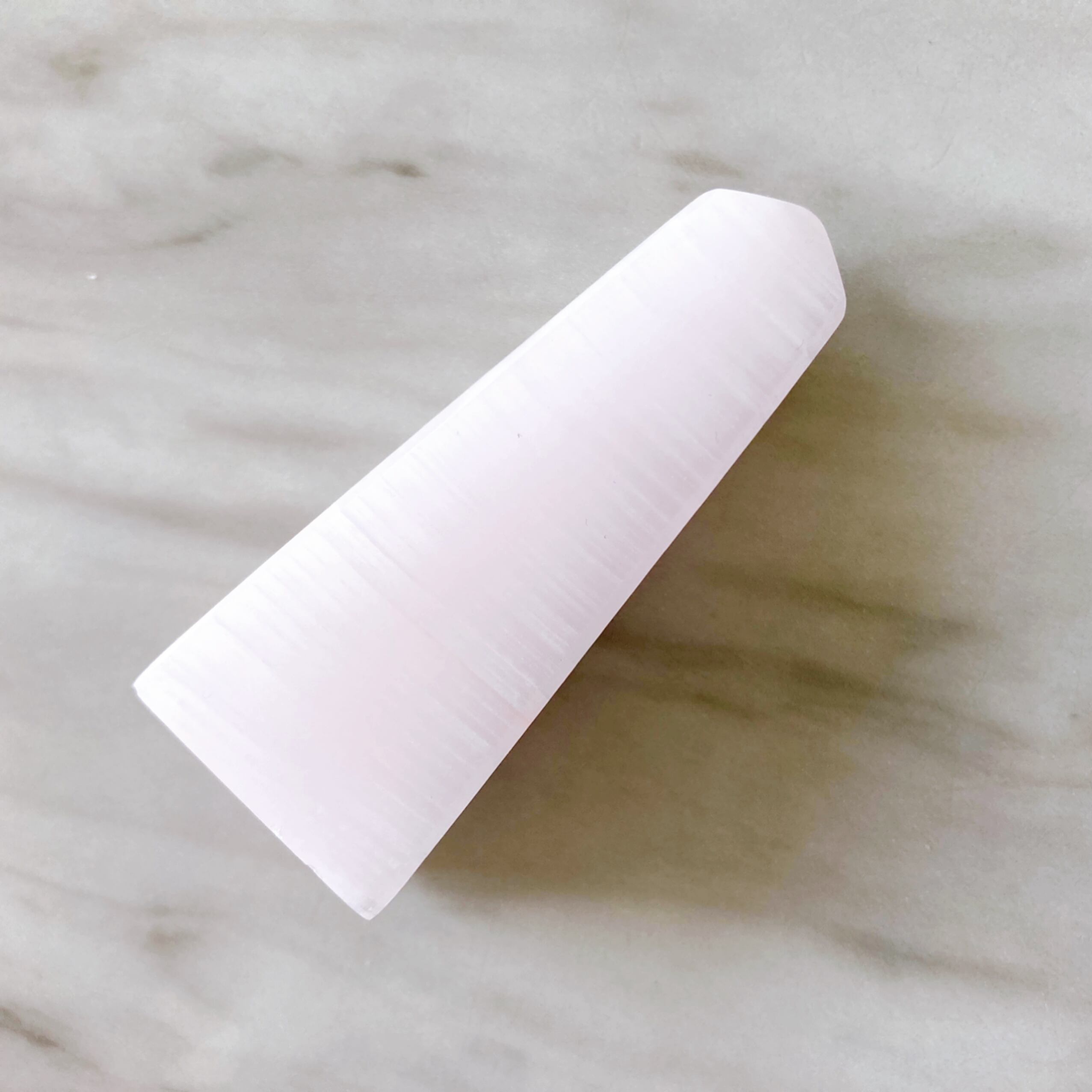ミルキーなピンクとホワイトの縞模様がキレイなピンクカルサイトのタワーです。