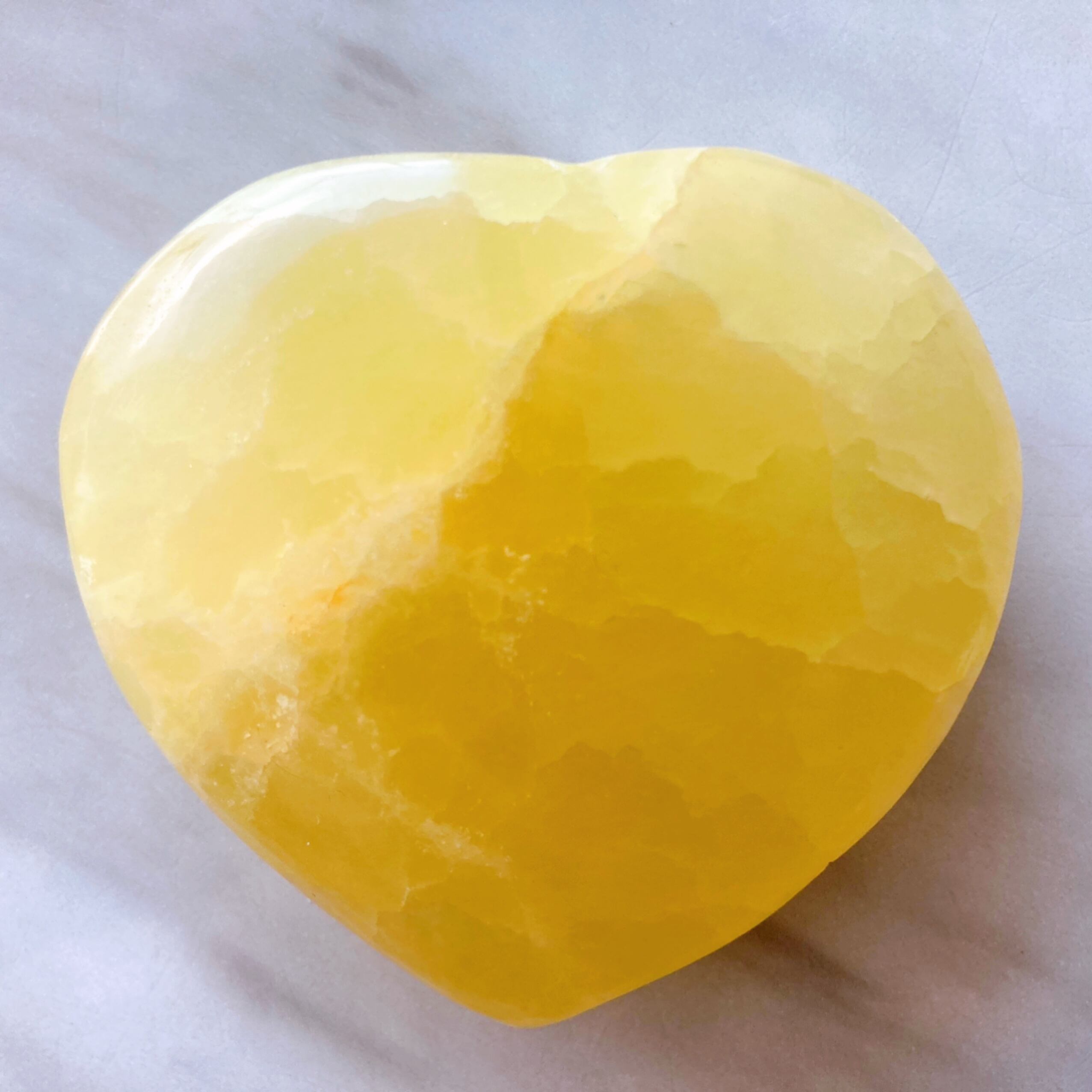 フレッシュなイエローカラーのレモンカルサイトは、心の中にあるネガティブなエネルギーを吸収し、明るく前向きな気持ちをもたらしてくれます。