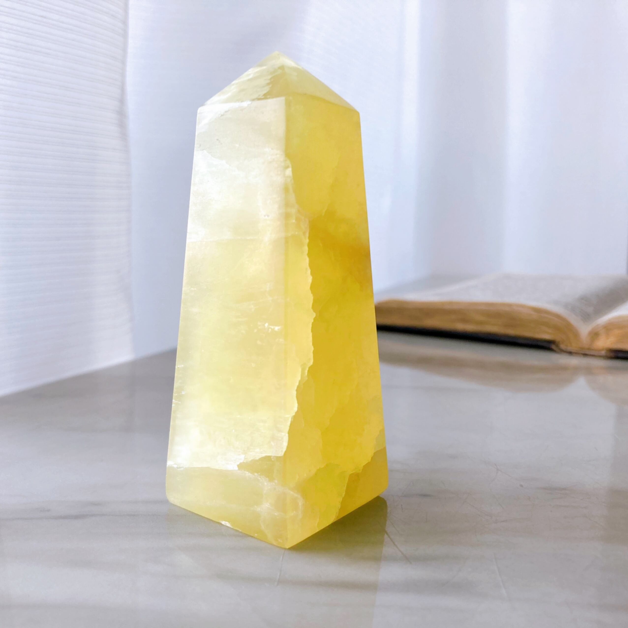フレッシュなイエローカラーのレモンカルサイトは、心の中にあるネガティブなエネルギーを吸収し、明るく前向きな気持ちをもたらしてくれます。