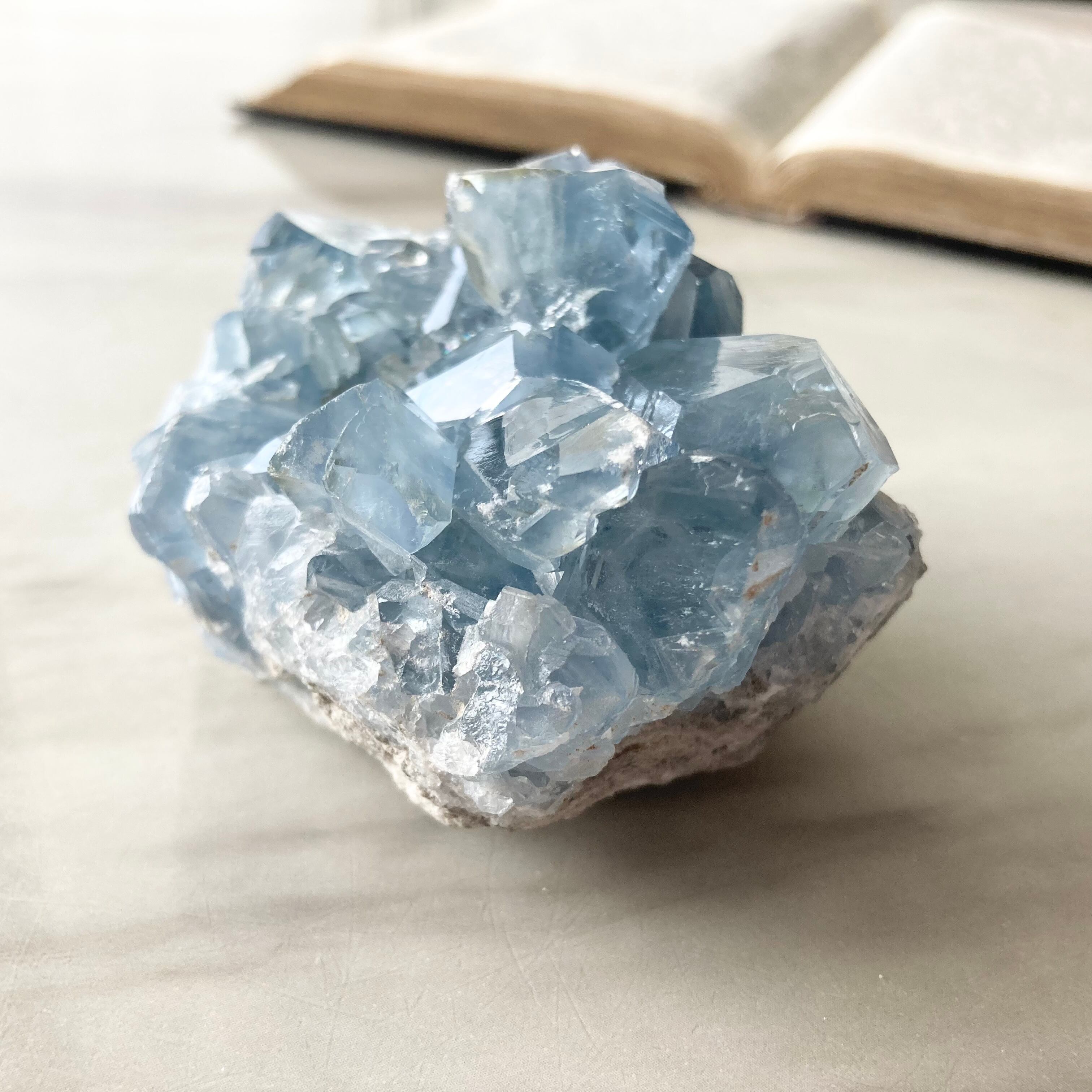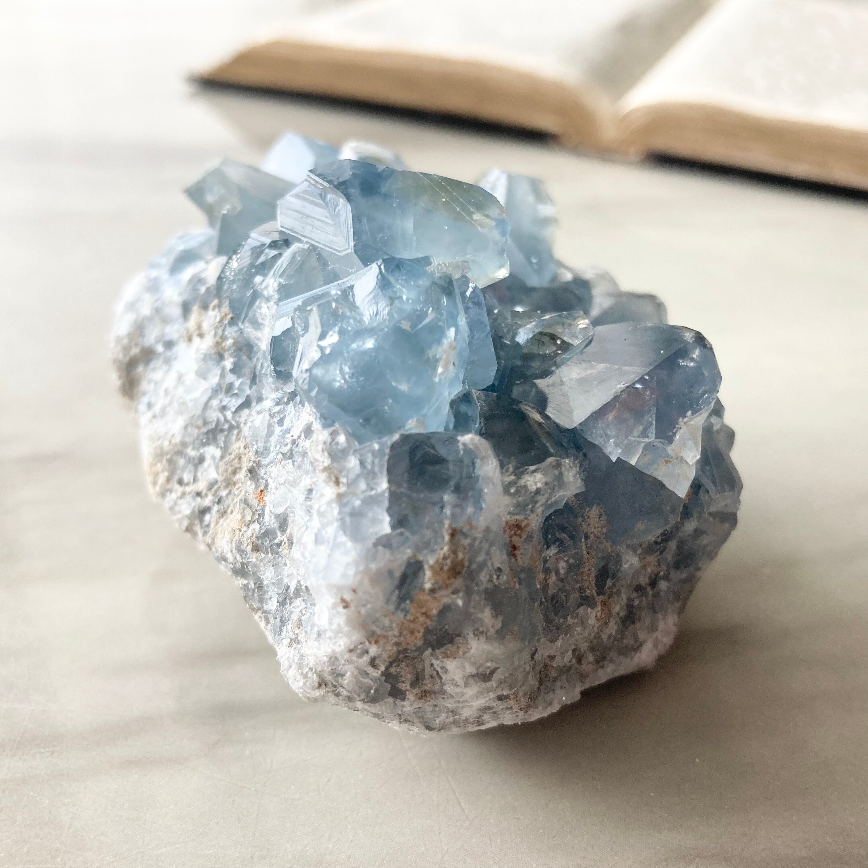 天青石という、青く晴れた空を連想させる和名を持つ、美しいスカイブルーのセレスタイト。ラテン語で「天国のような」という意味も持っています。