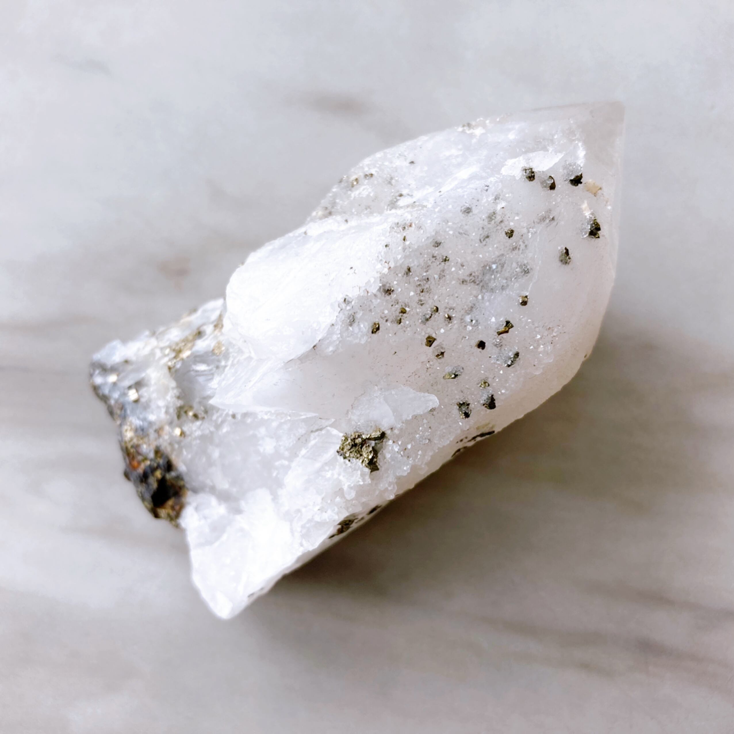 ルーマニア産 パイライト共生水晶ポイント/パイライトインクォーツ